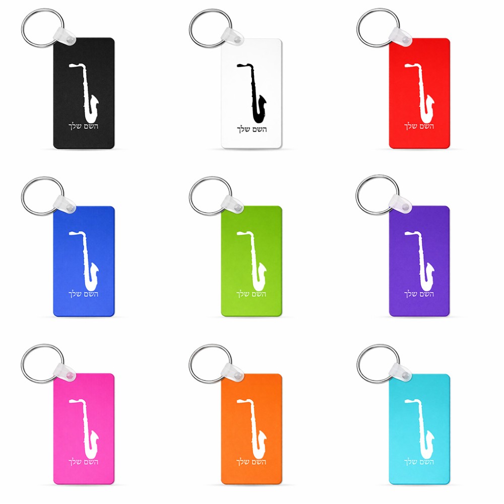 מחזיק מפתחות בצורת מלבן בעיצוב אישי עם השם שלך בעיצוב סקסופון גודל המחזיק 6 × 4 ס"מ