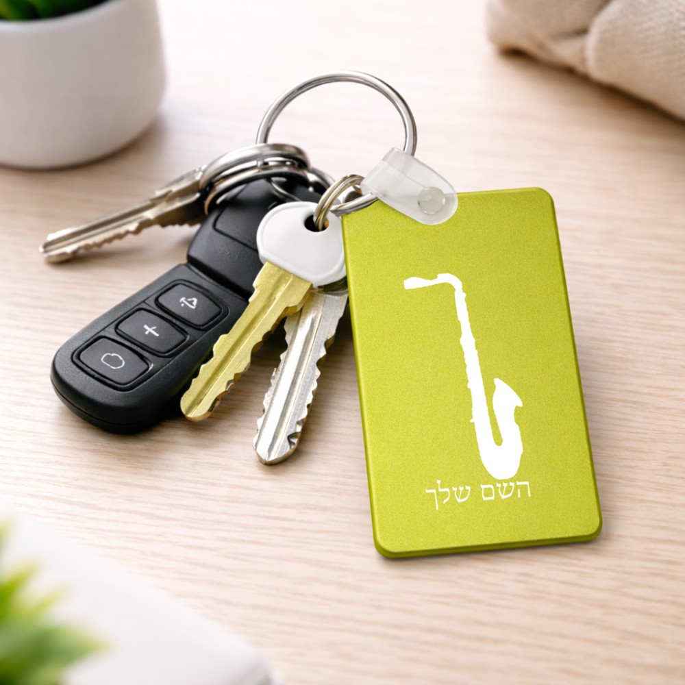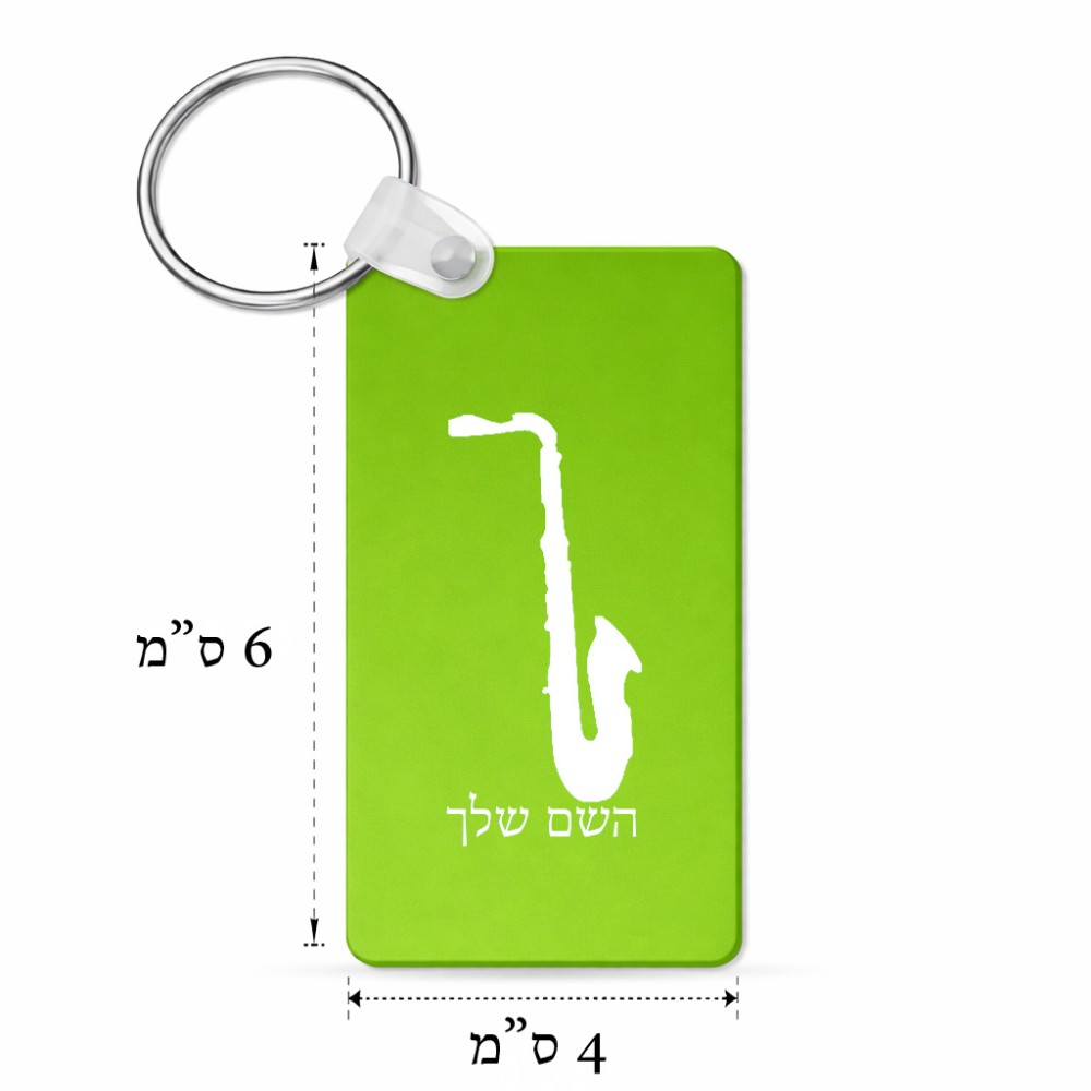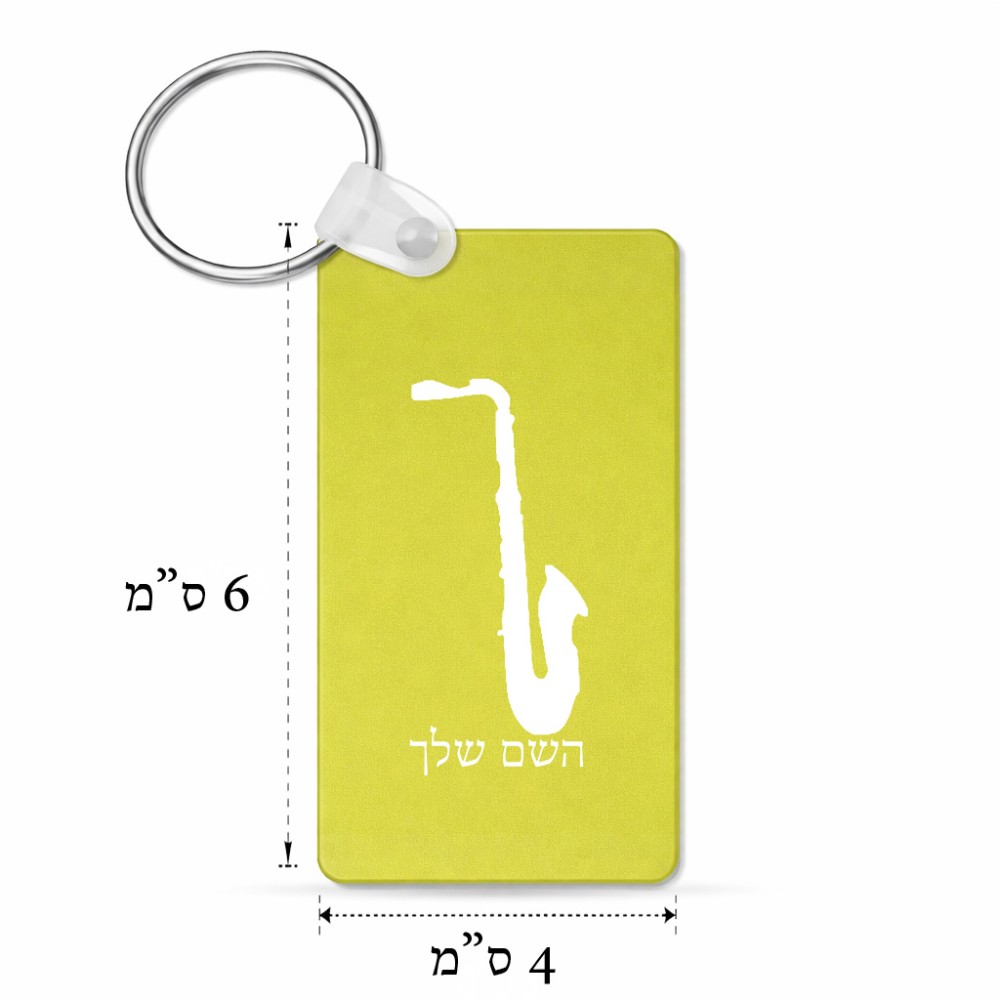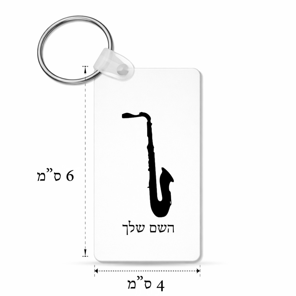 מחזיק מפתחות בצורת מלבן בעיצוב אישי עם השם שלך בעיצוב סקסופון גודל המחזיק 6 × 4 ס"מ. את השם המבוקש ניתן לציין בהזמנה, אם לא צויין אנחנו ניצור קשר לבירור.