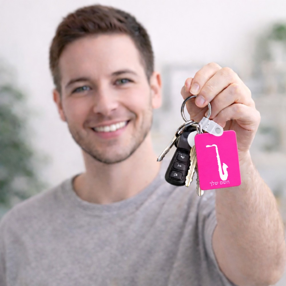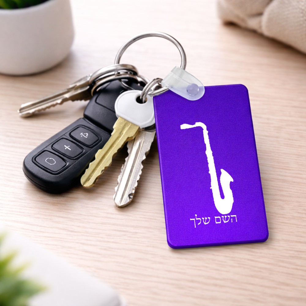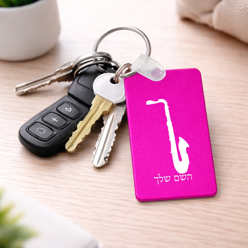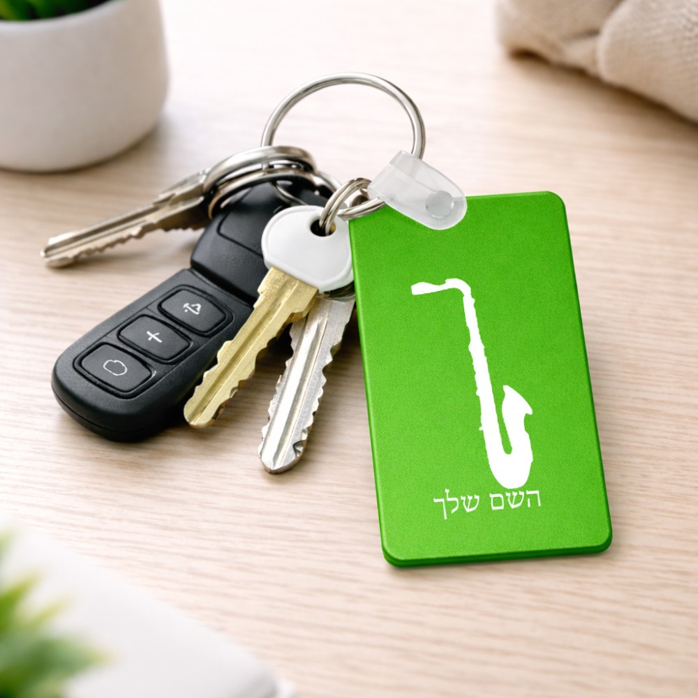 מחזיק מפתחות בצורת מלבן בעיצוב אישי עם השם שלך בעיצוב סקסופון גודל המחזיק 6 × 4 ס"מ. את השם המבוקש ניתן לציין בהזמנה, אם לא צויין אנחנו ניצור קשר לבירור.