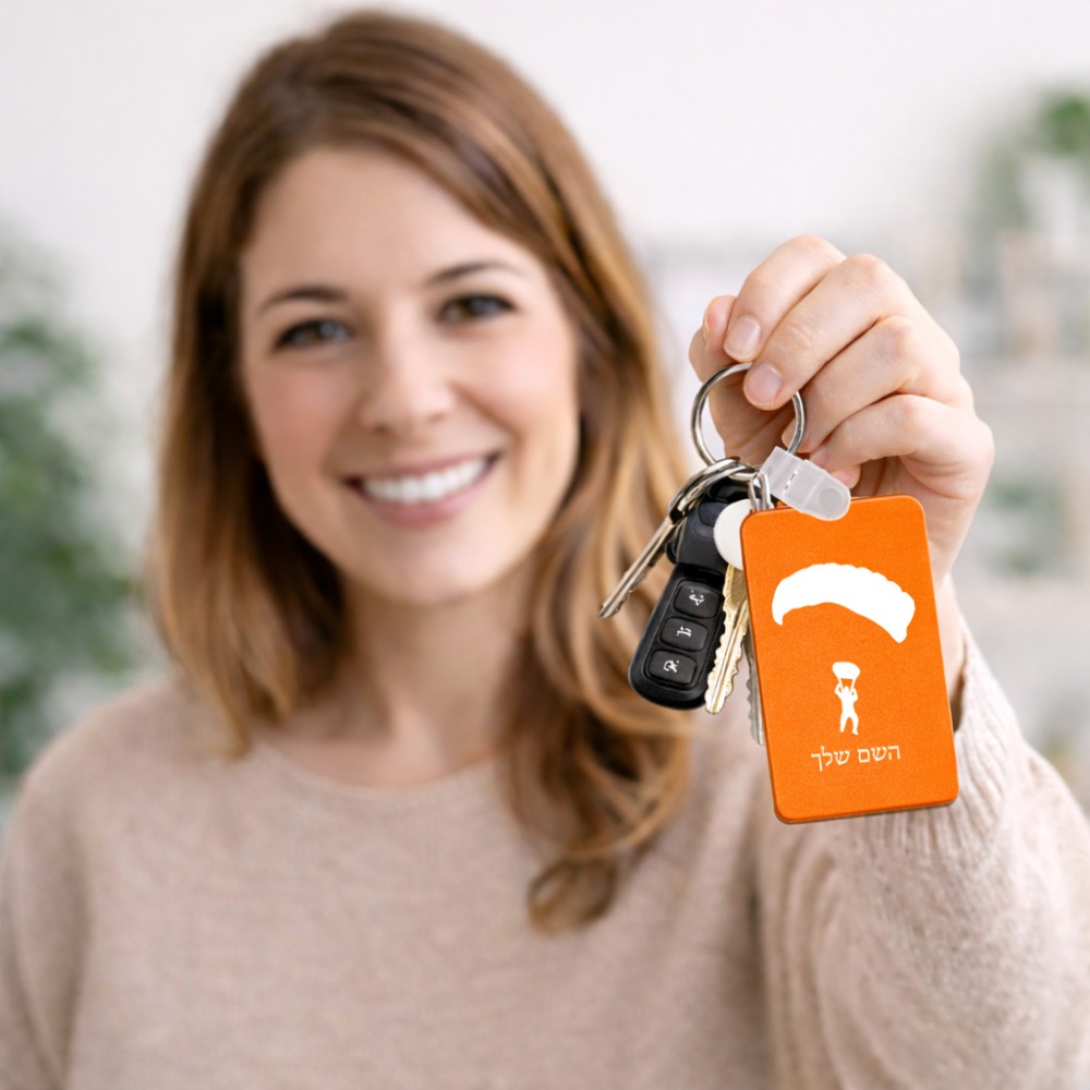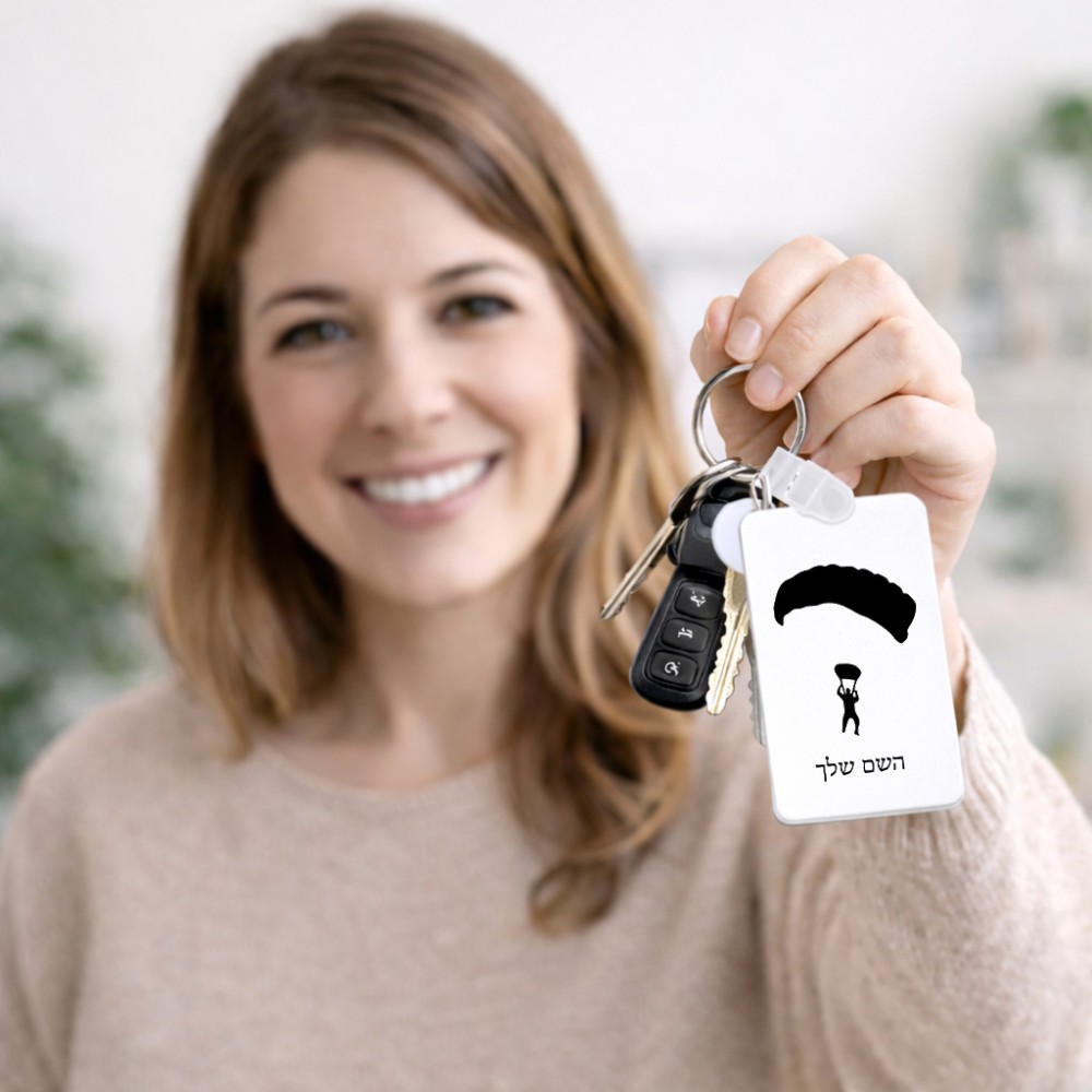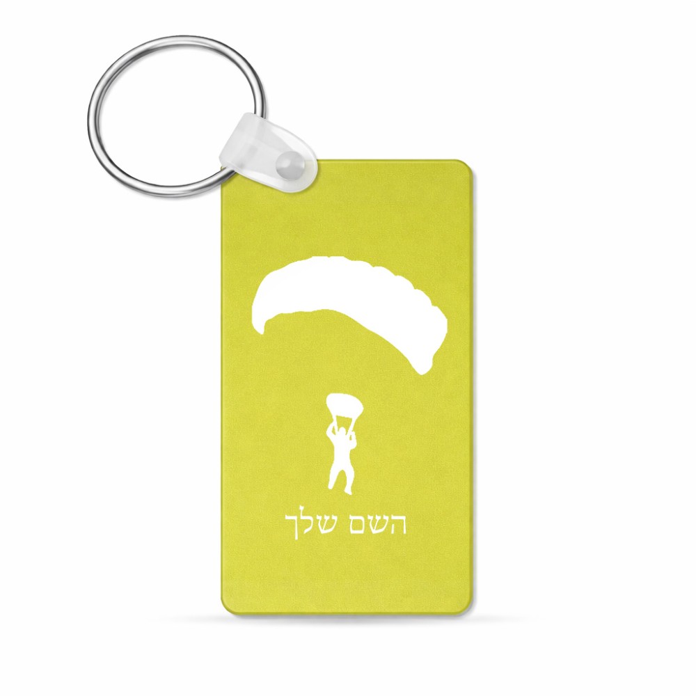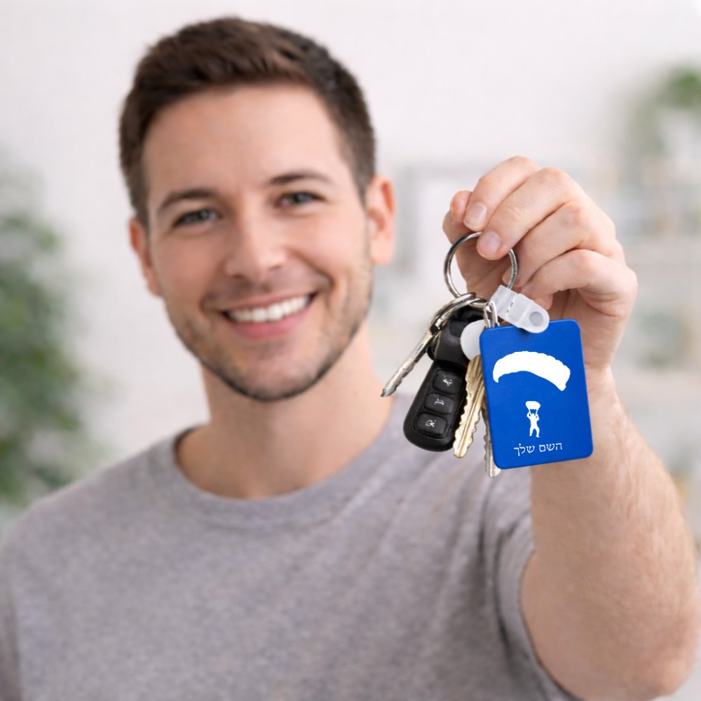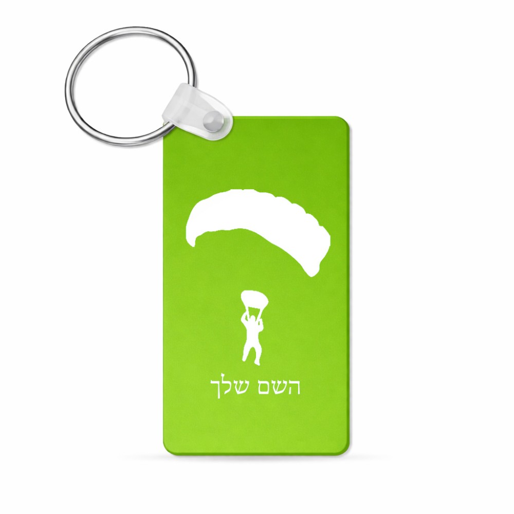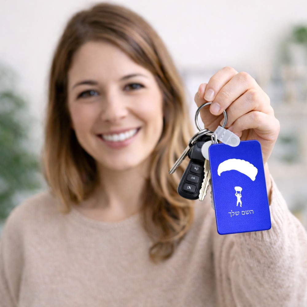 מחזיק מפתחות בצורת מלבן בעיצוב אישי עם השם שלך בעיצוב צניחה חופשית גודל המחזיק 6 × 4 ס"מ. את השם המבוקש ניתן לציין בהזמנה, אם לא צויין אנחנו ניצור קשר לבירור.