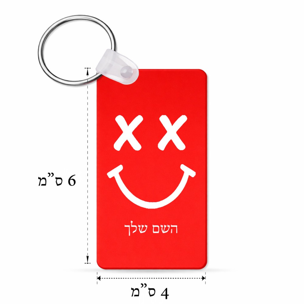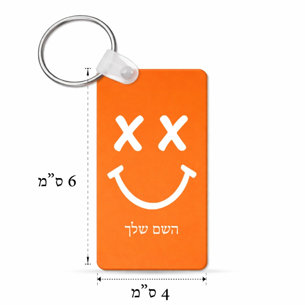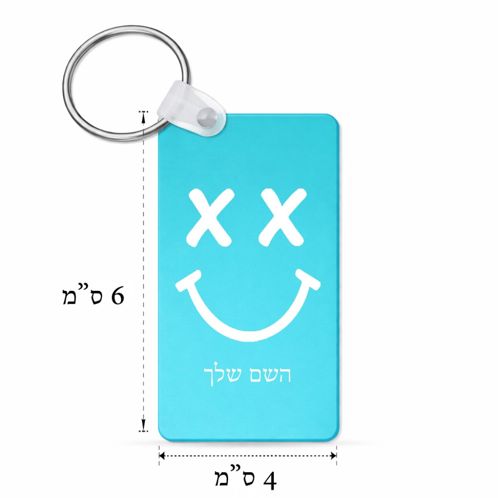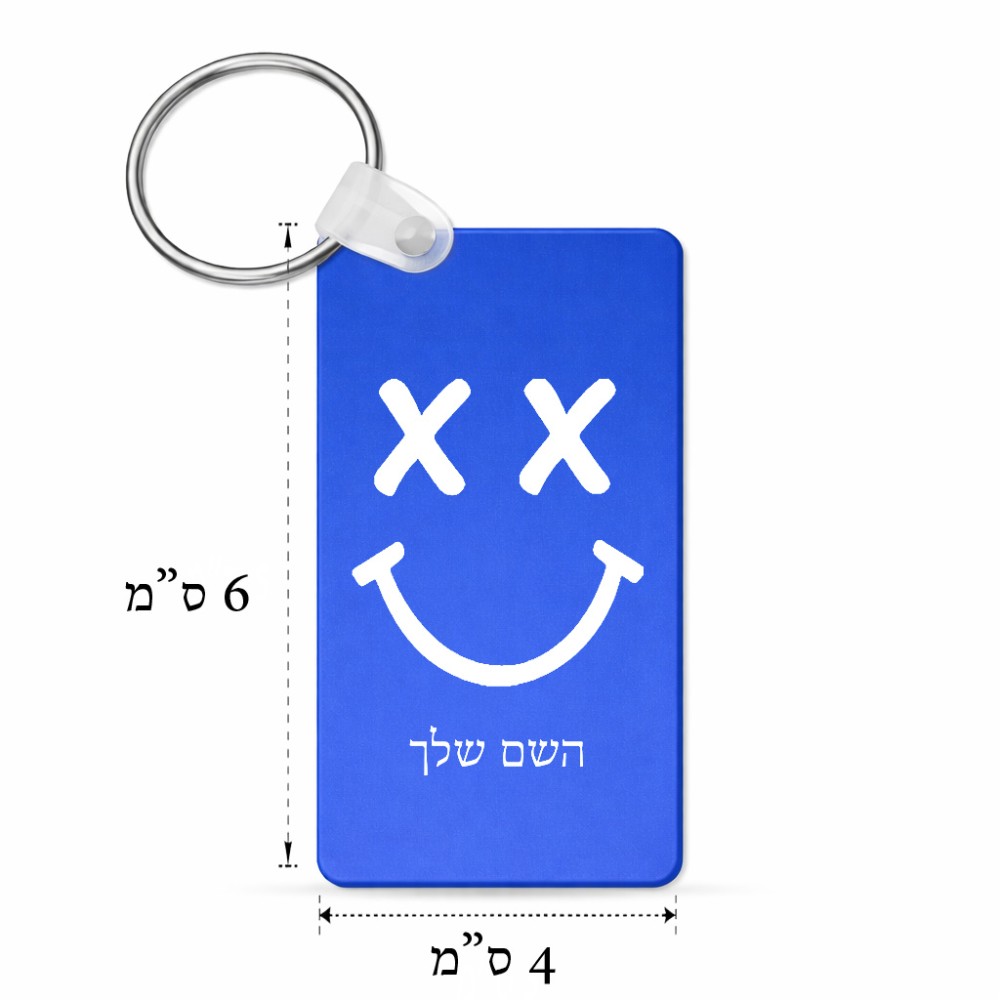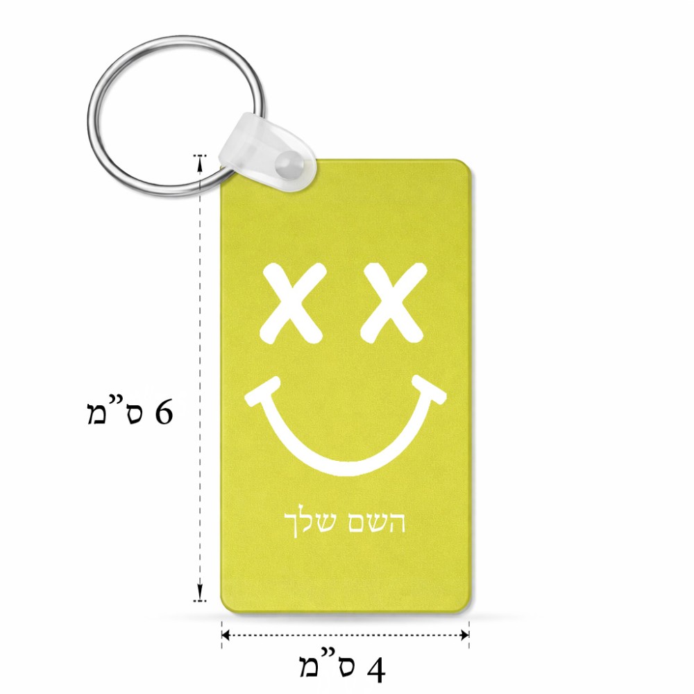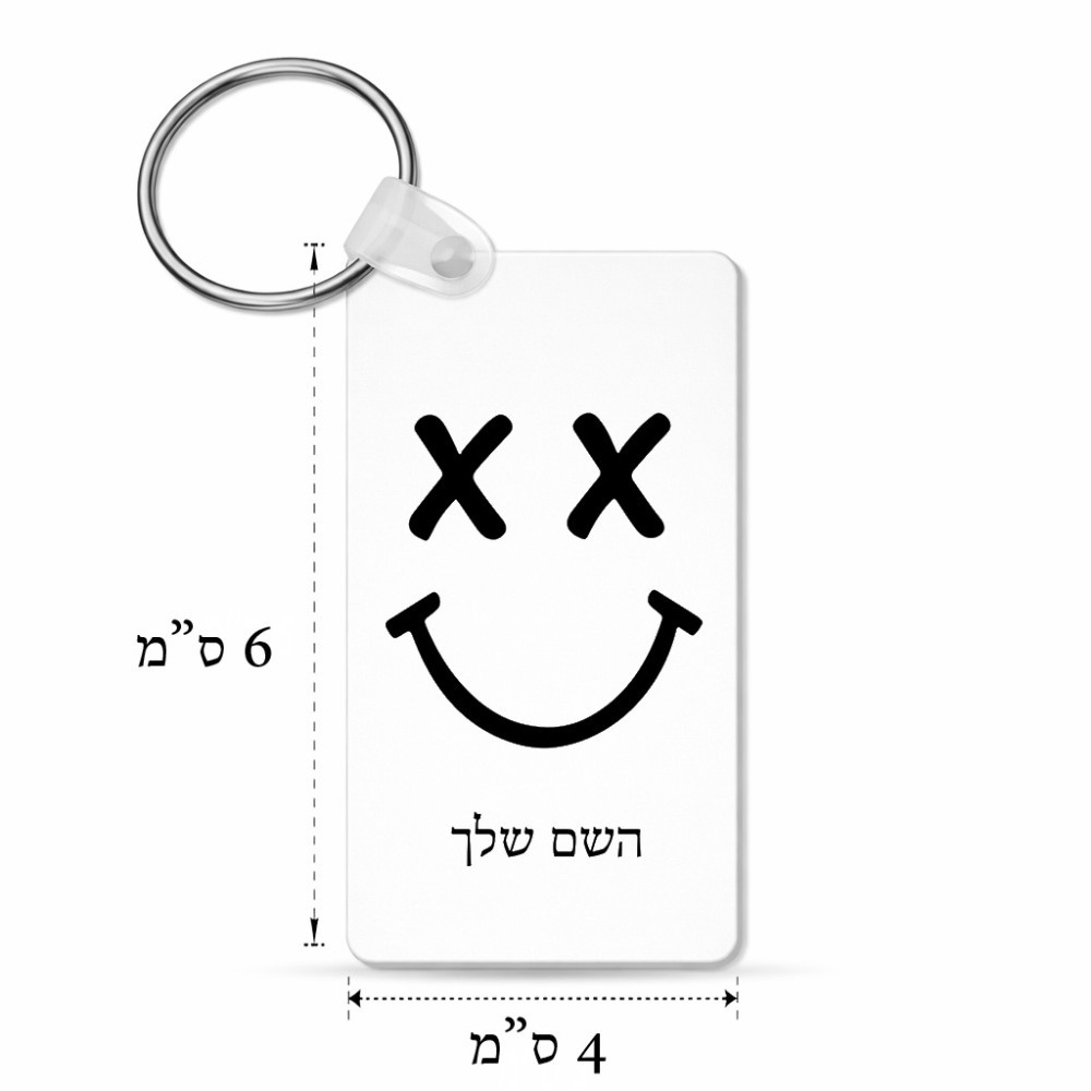מחזיק מפתחות בצורת מלבן בעיצוב אישי עם השם שלך בעיצוב סמיילי גודל המחזיק 6 × 4 ס"מ. את השם המבוקש ניתן לציין בהזמנה, אם לא צויין אנחנו ניצור קשר לבירור.