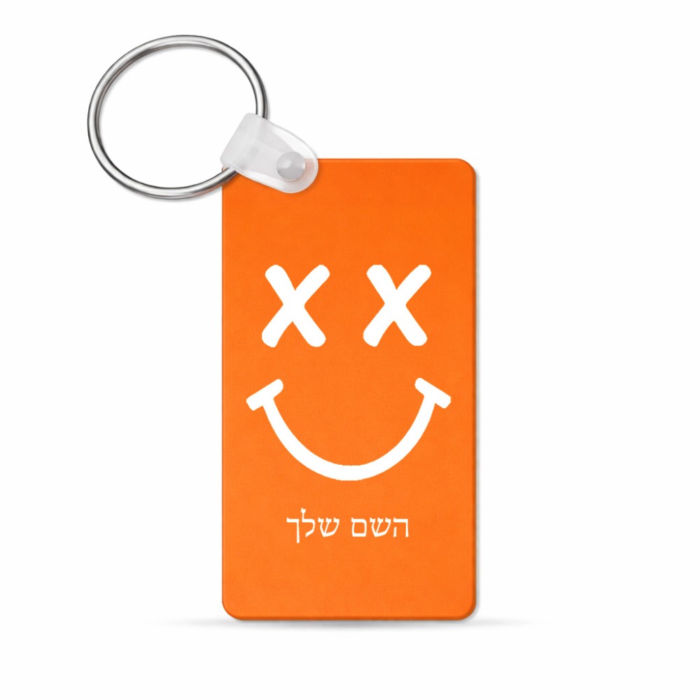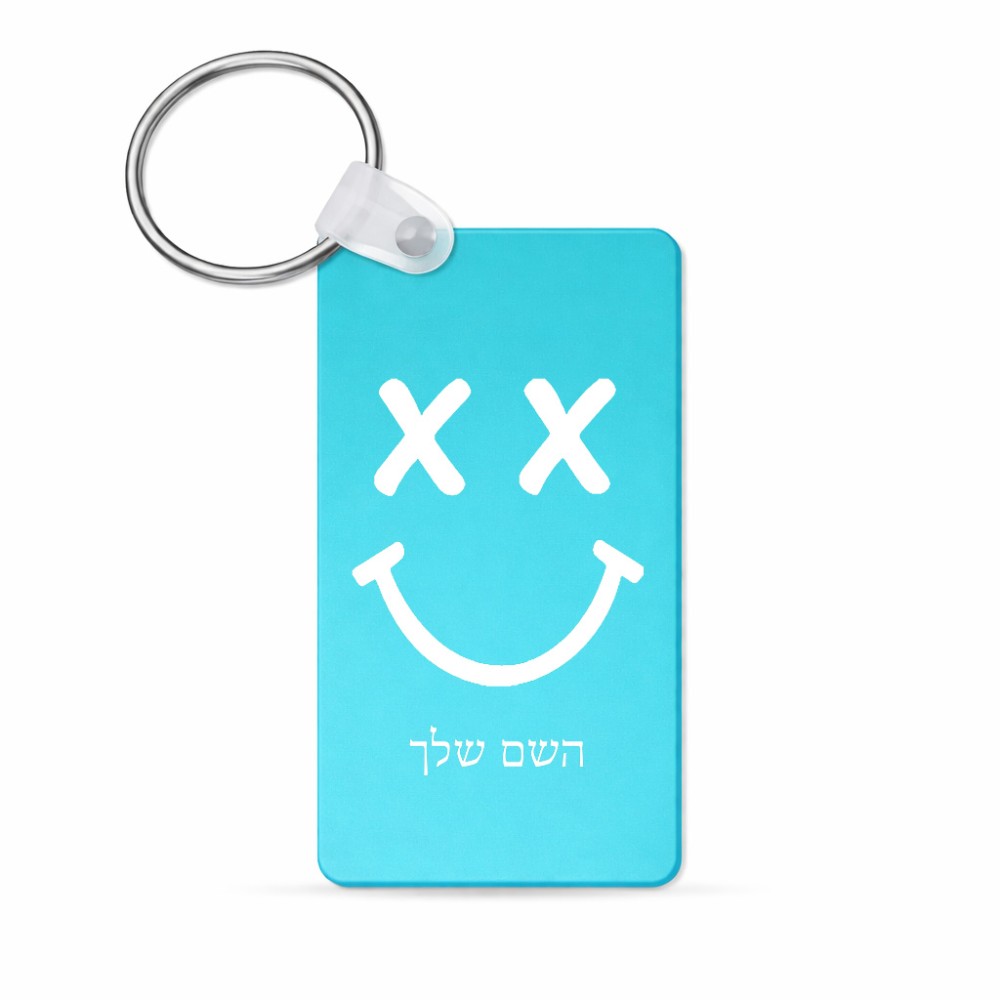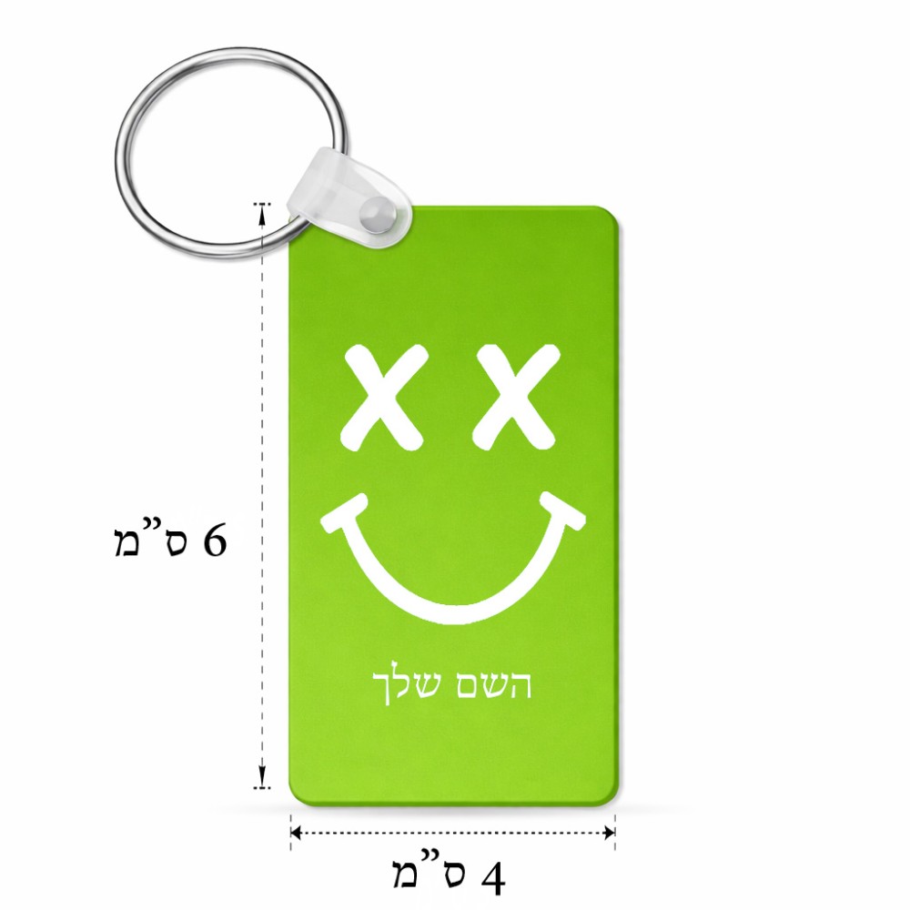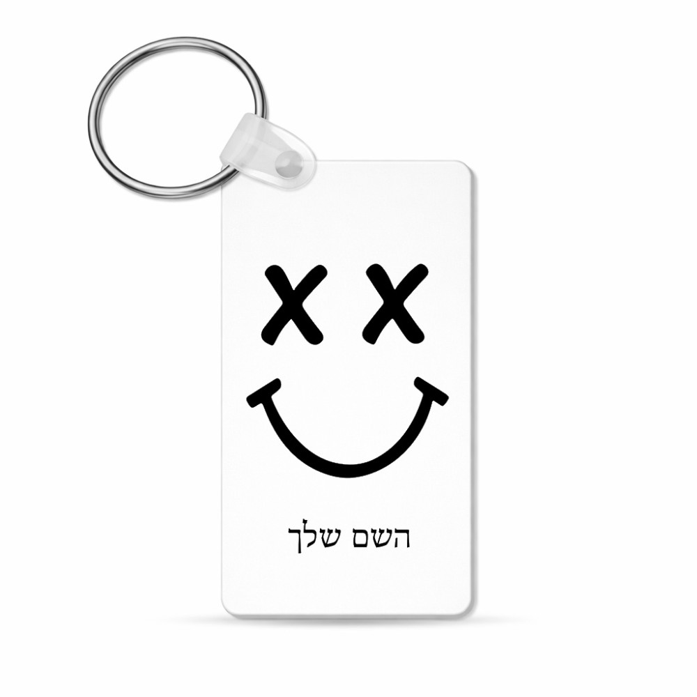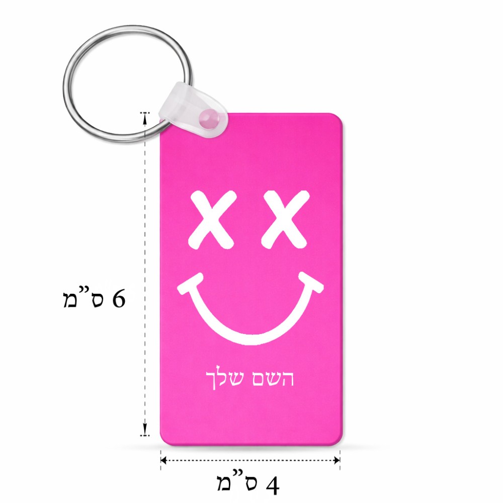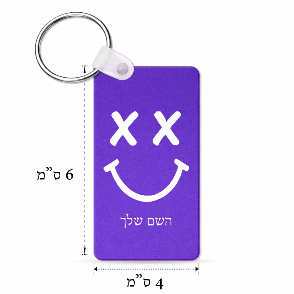 מחזיק מפתחות בצורת מלבן בעיצוב אישי עם השם שלך בעיצוב סמיילי גודל המחזיק 6 × 4 ס"מ. את השם המבוקש ניתן לציין בהזמנה, אם לא צויין אנחנו ניצור קשר לבירור.