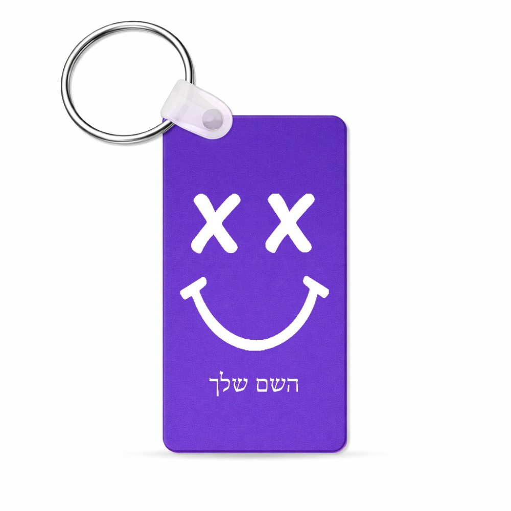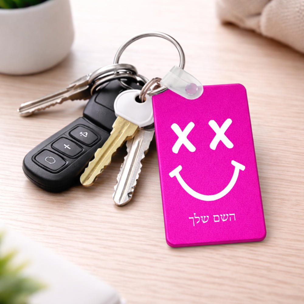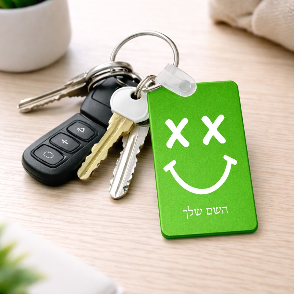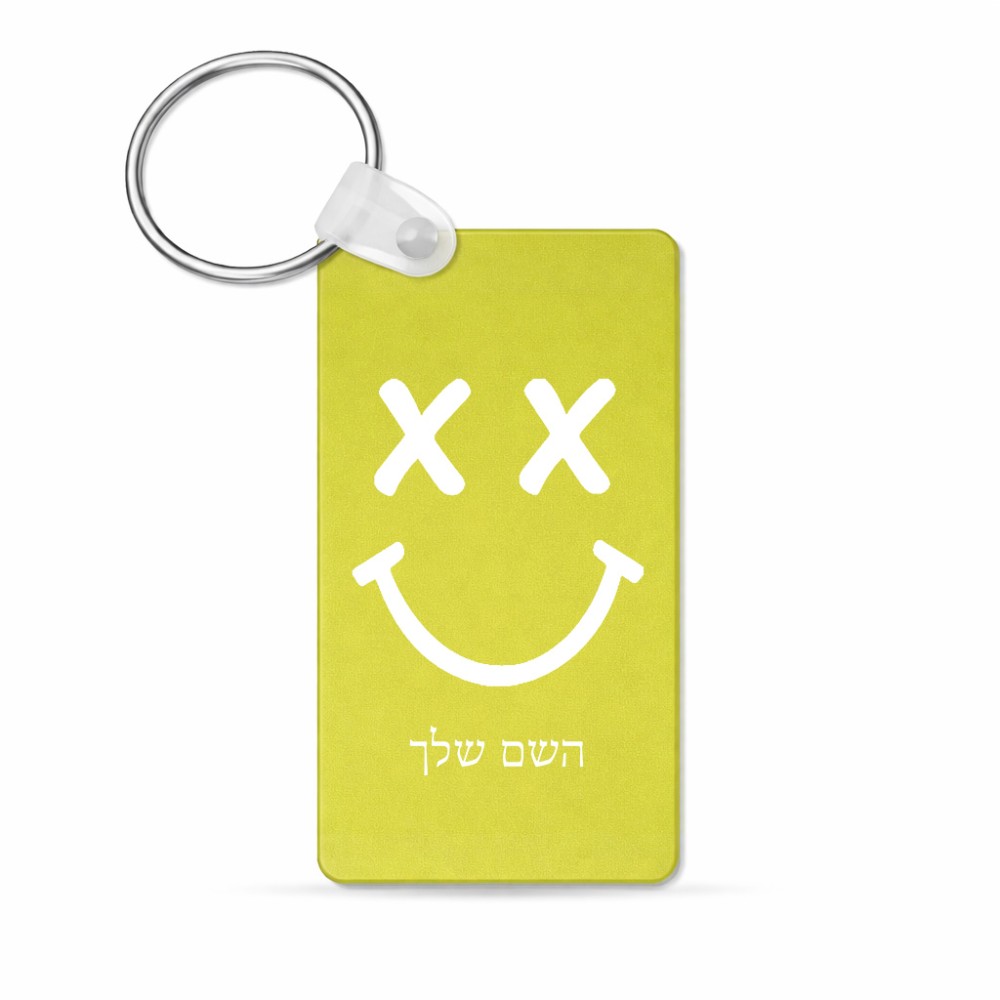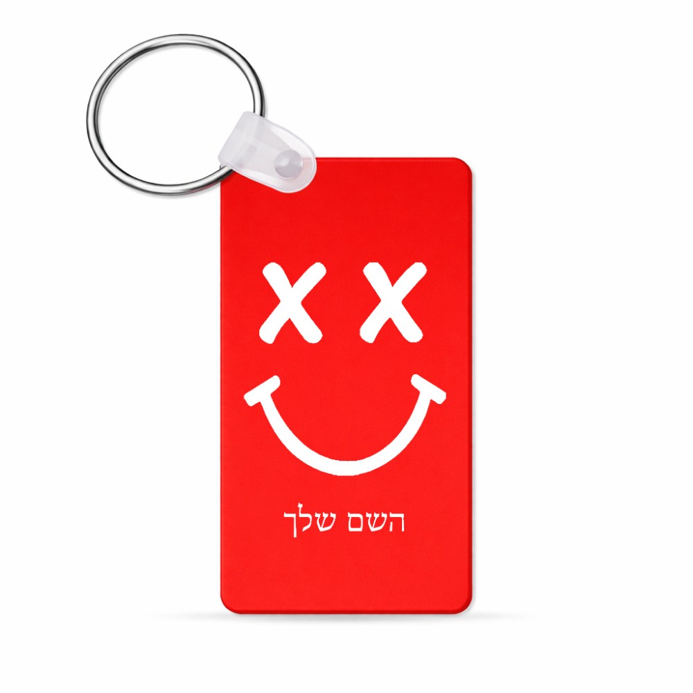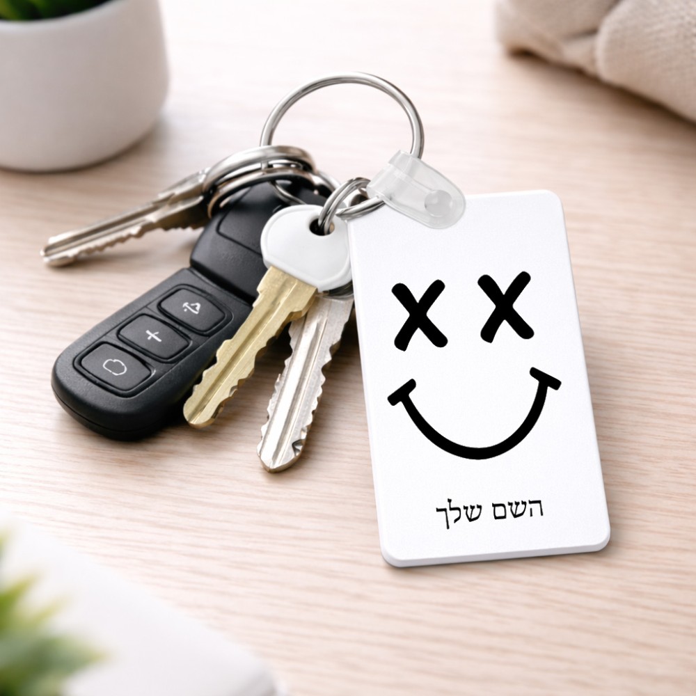 מחזיק מפתחות בצורת מלבן בעיצוב אישי עם השם שלך בעיצוב סמיילי גודל המחזיק 6 × 4 ס"מ. את השם המבוקש ניתן לציין בהזמנה, אם לא צויין אנחנו ניצור קשר לבירור.