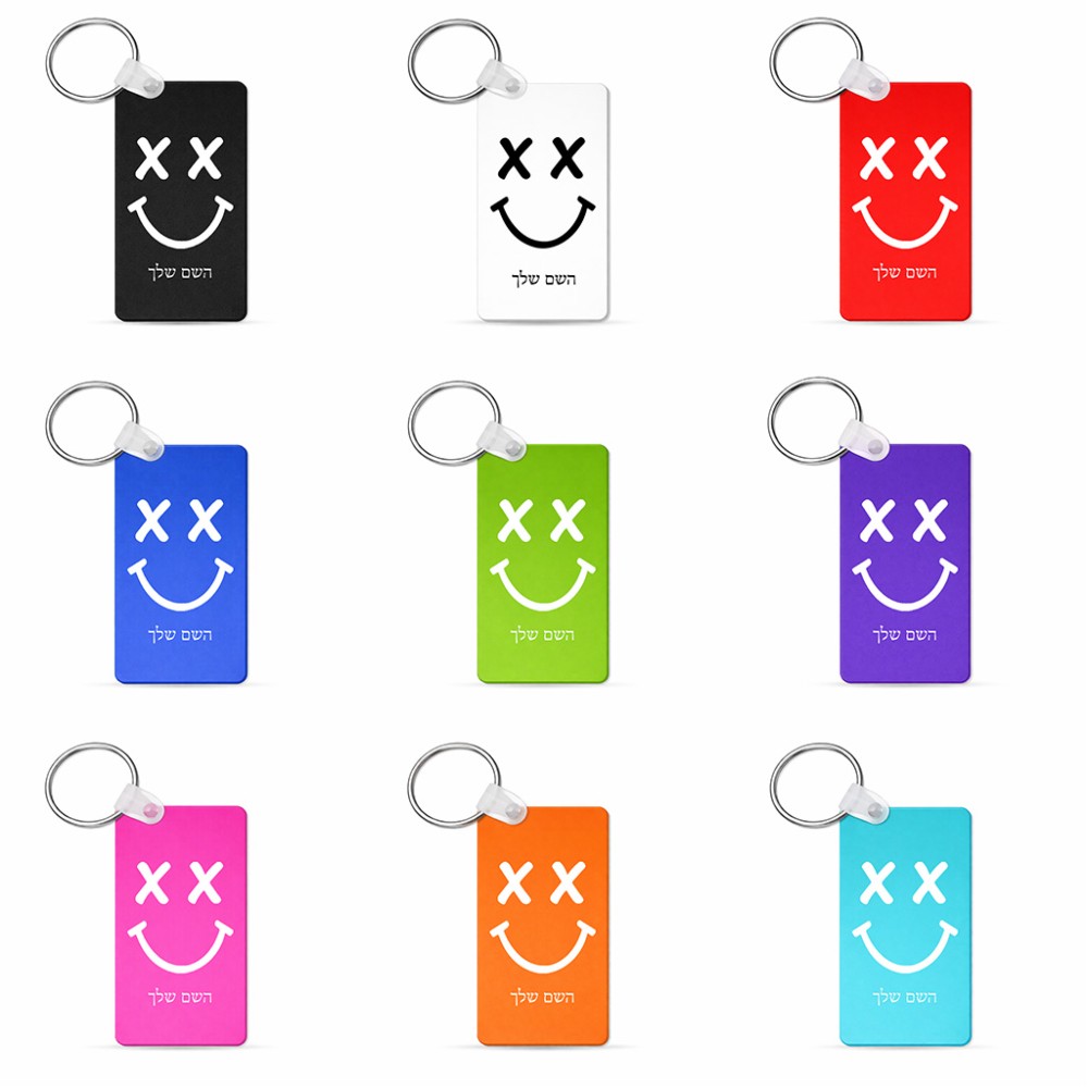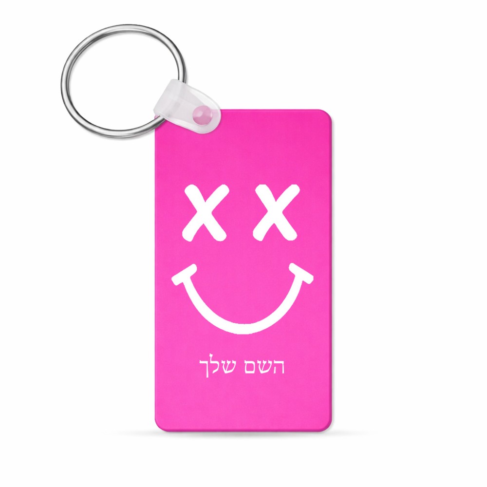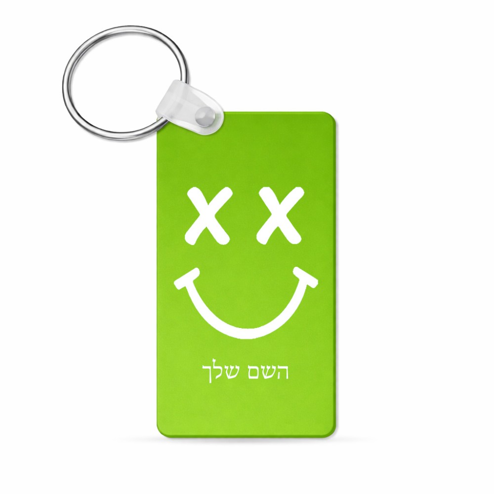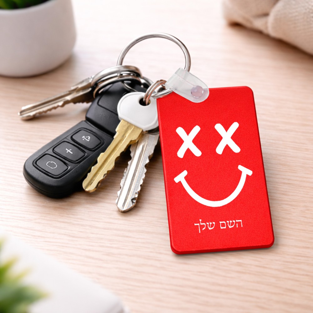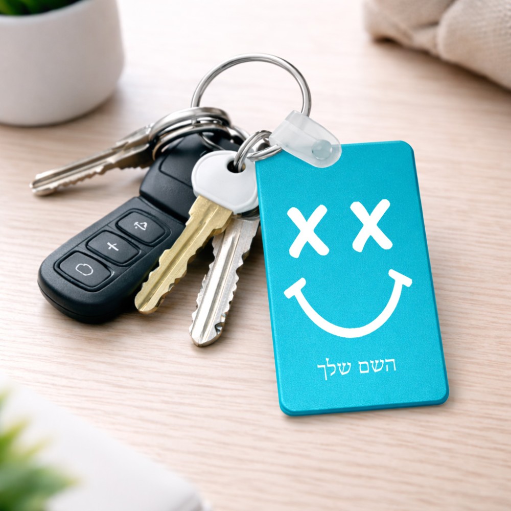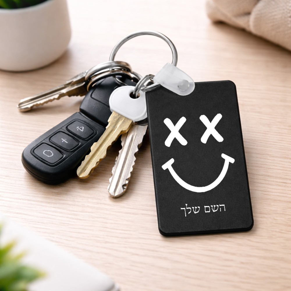 מחזיק מפתחות בצורת מלבן בעיצוב אישי עם השם שלך בעיצוב סמיילי גודל המחזיק 6 × 4 ס"מ. את השם המבוקש ניתן לציין בהזמנה, אם לא צויין אנחנו ניצור קשר לבירור.