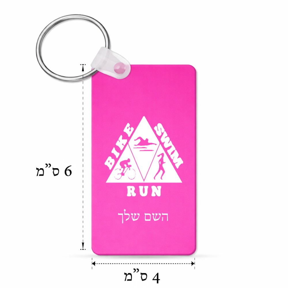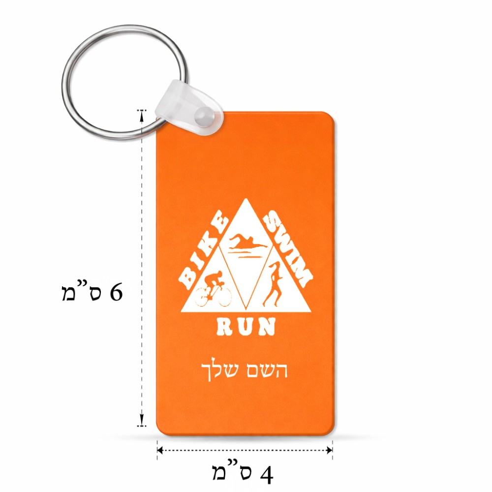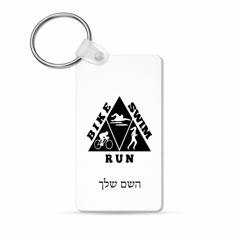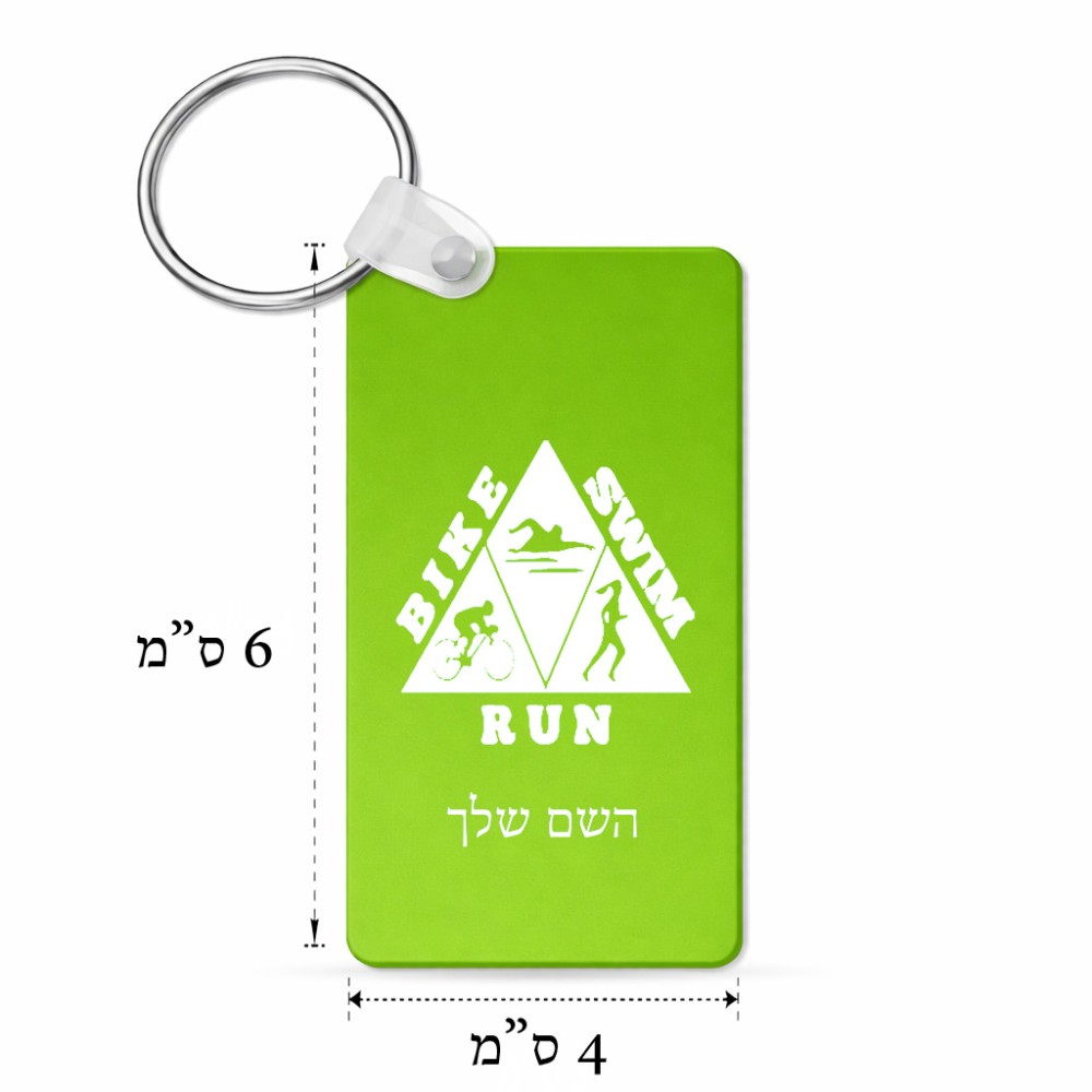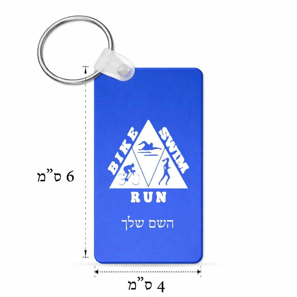 מחזיק מפתחות בצורת מלבן בעיצוב אישי עם השם שלך בעיצוב טריאתלון גודל המחזיק 6 × 4 ס"מ. את השם המבוקש ניתן לציין בהזמנה, אם לא צויין אנחנו ניצור קשר לבירור.
