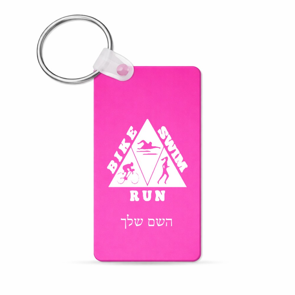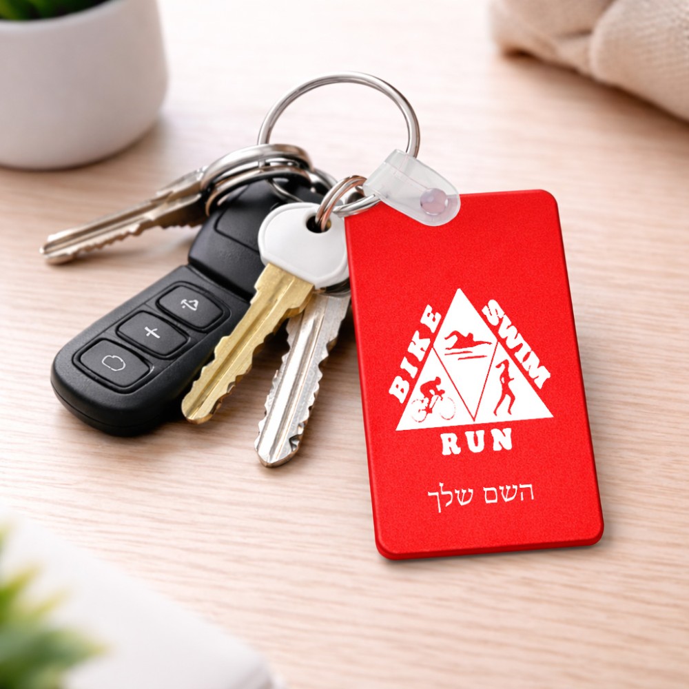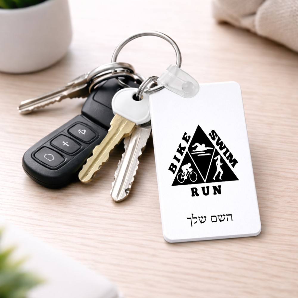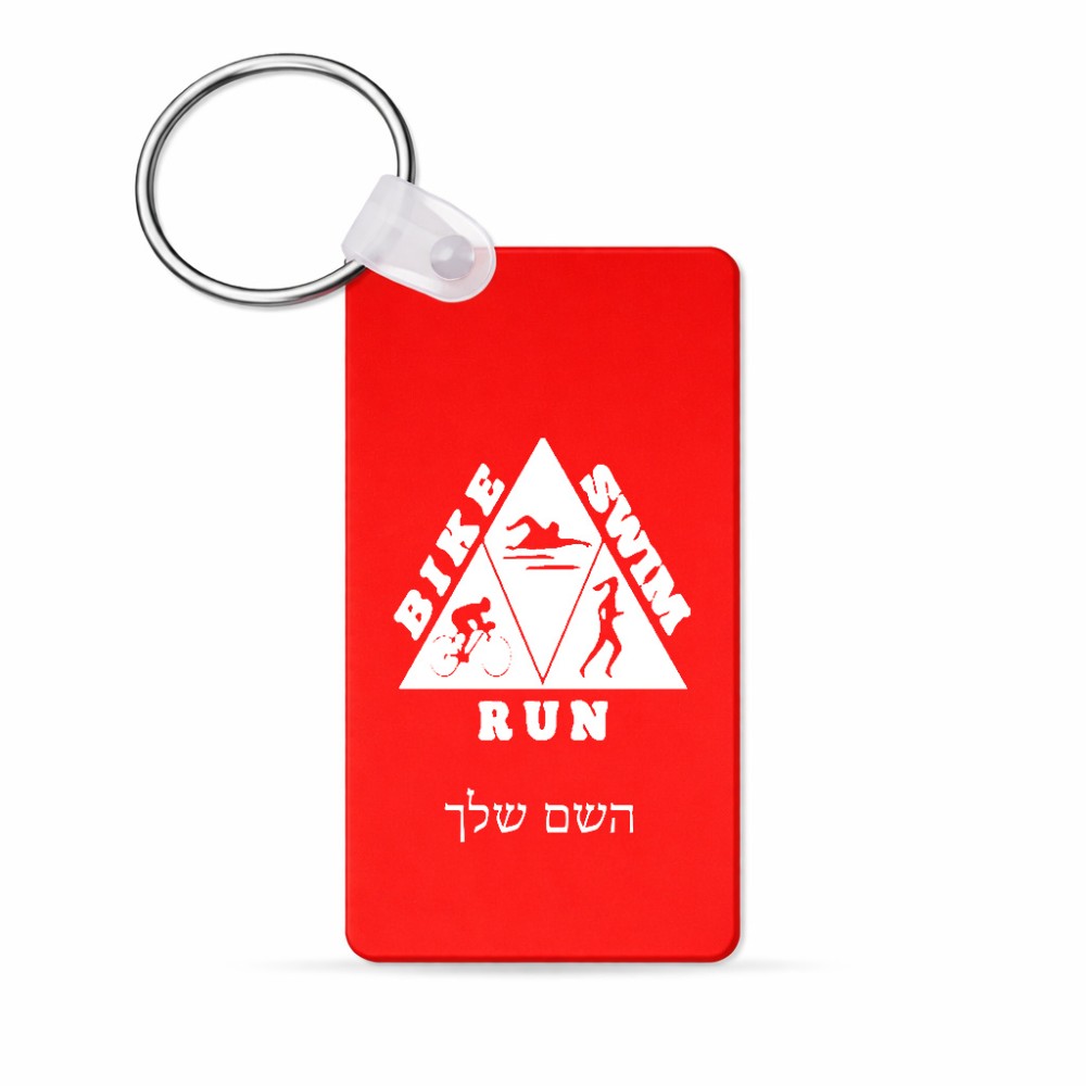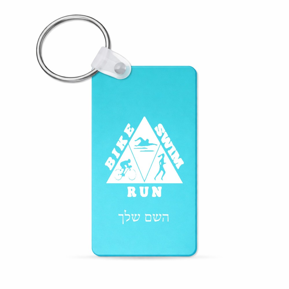 מחזיק מפתחות בצורת מלבן בעיצוב אישי עם השם שלך בעיצוב טריאתלון גודל המחזיק 6 × 4 ס"מ. את השם המבוקש ניתן לציין בהזמנה, אם לא צויין אנחנו ניצור קשר לבירור.