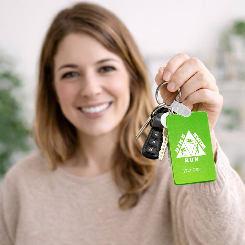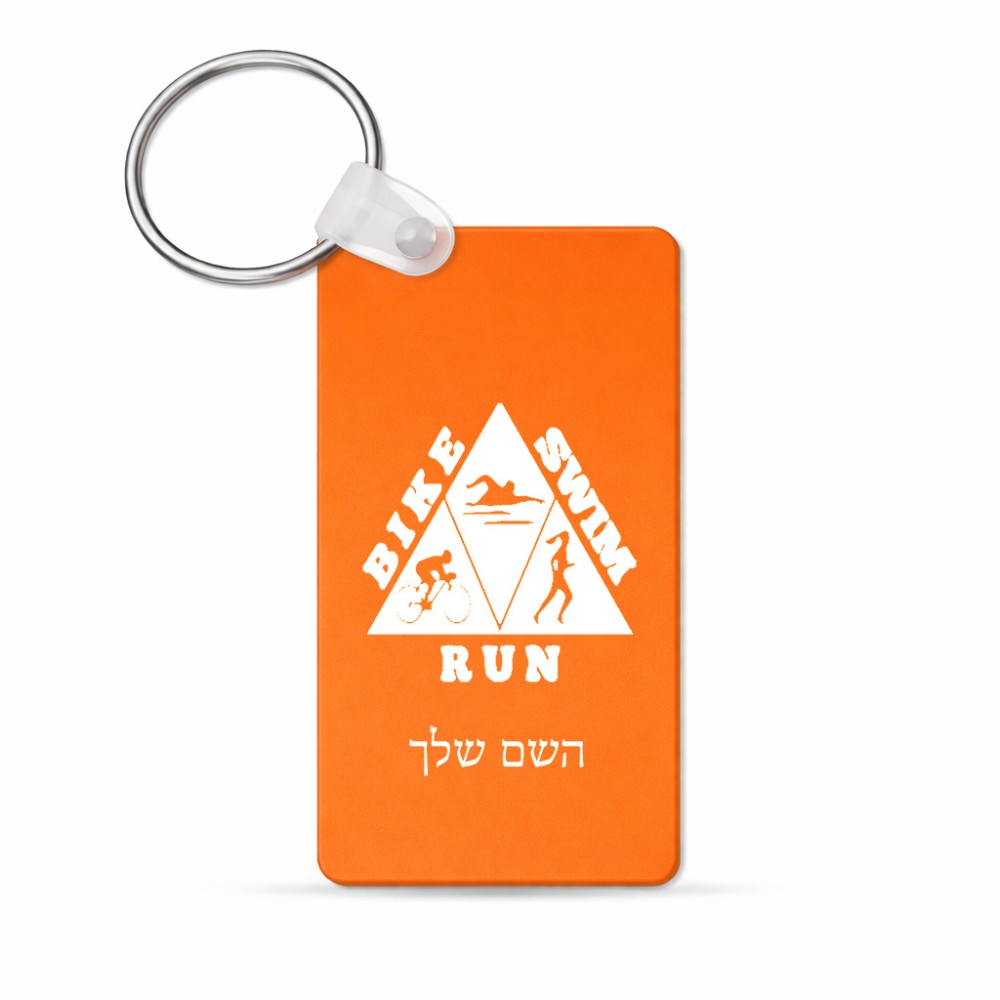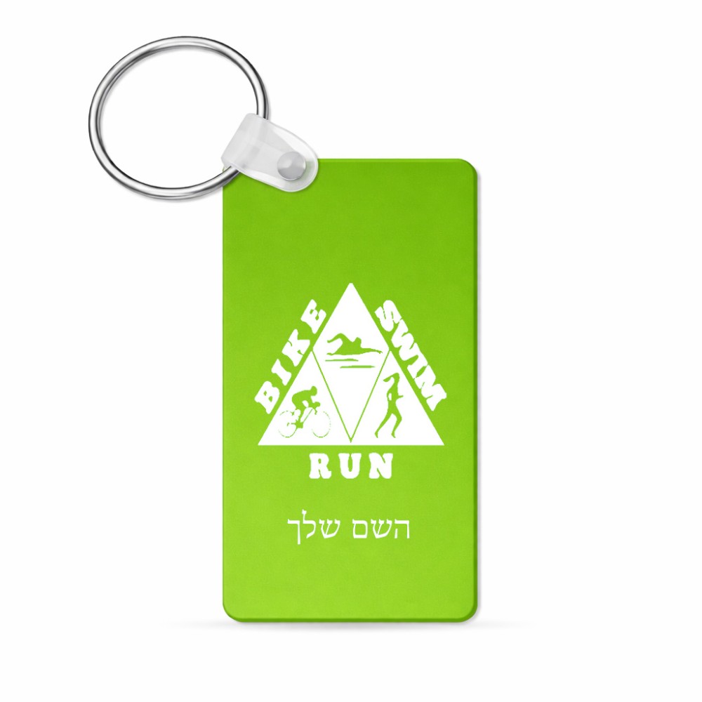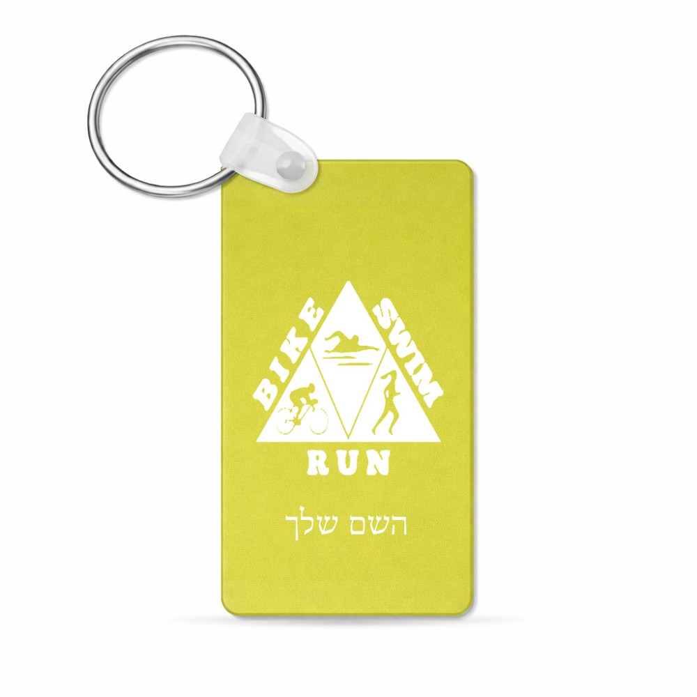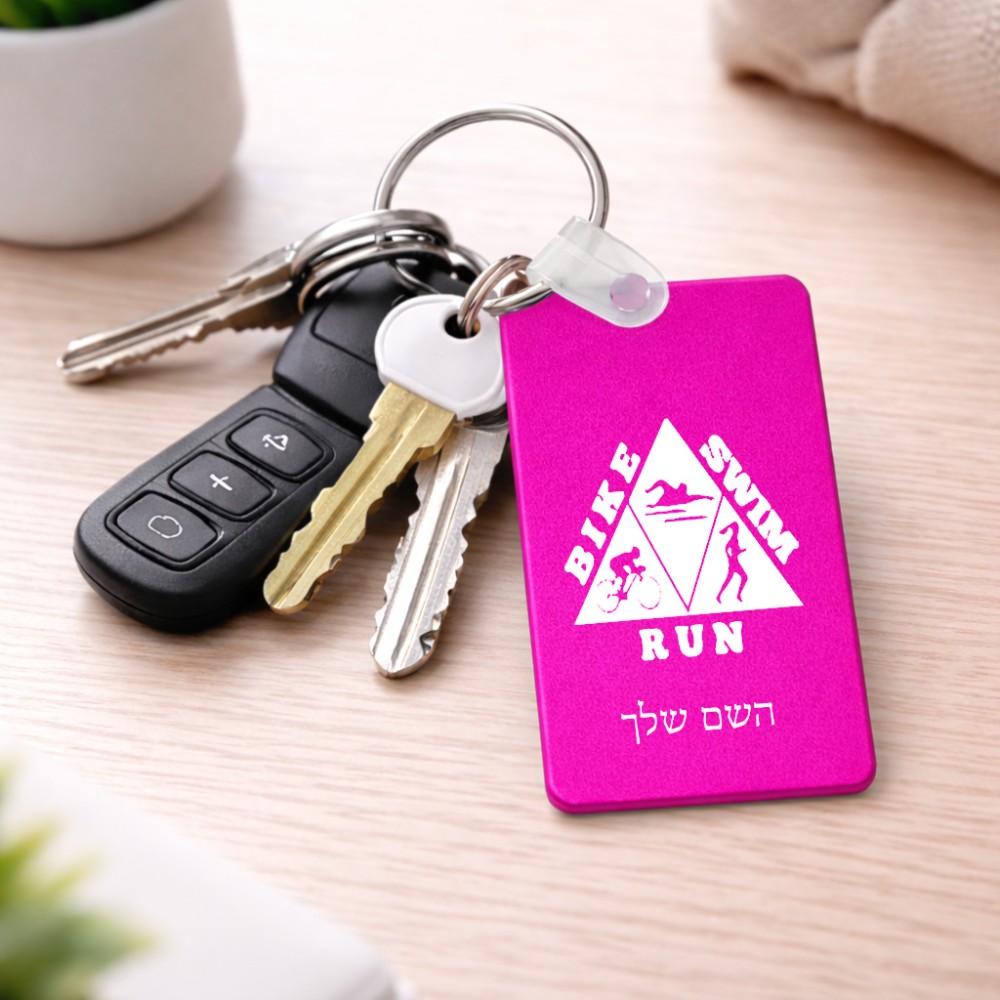 מחזיק מפתחות בצורת מלבן בעיצוב אישי עם השם שלך בעיצוב טריאתלון גודל המחזיק 6 × 4 ס"מ. את השם המבוקש ניתן לציין בהזמנה, אם לא צויין אנחנו ניצור קשר לבירור.