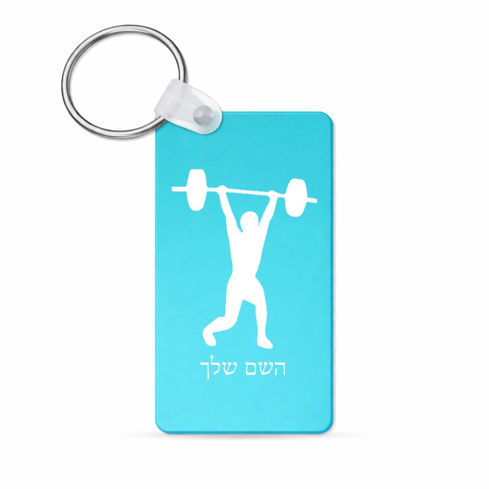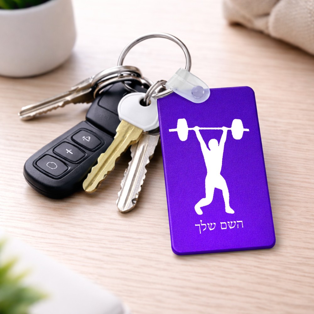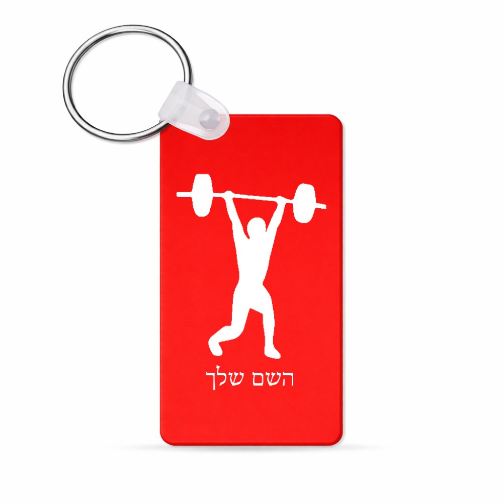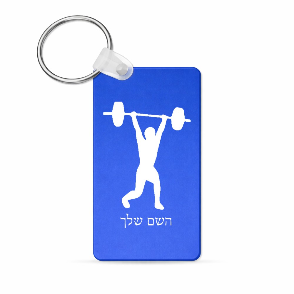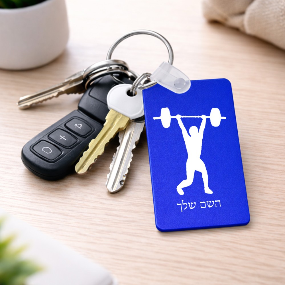 מחזיק מפתחות בצורת מלבן בעיצוב אישי עם השם שלך בעיצוב הרמת משקולות גודל המחזיק 6 × 4 ס"מ. את השם המבוקש ניתן לציין בהזמנה, אם לא צויין אנחנו ניצור קשר לבירור.