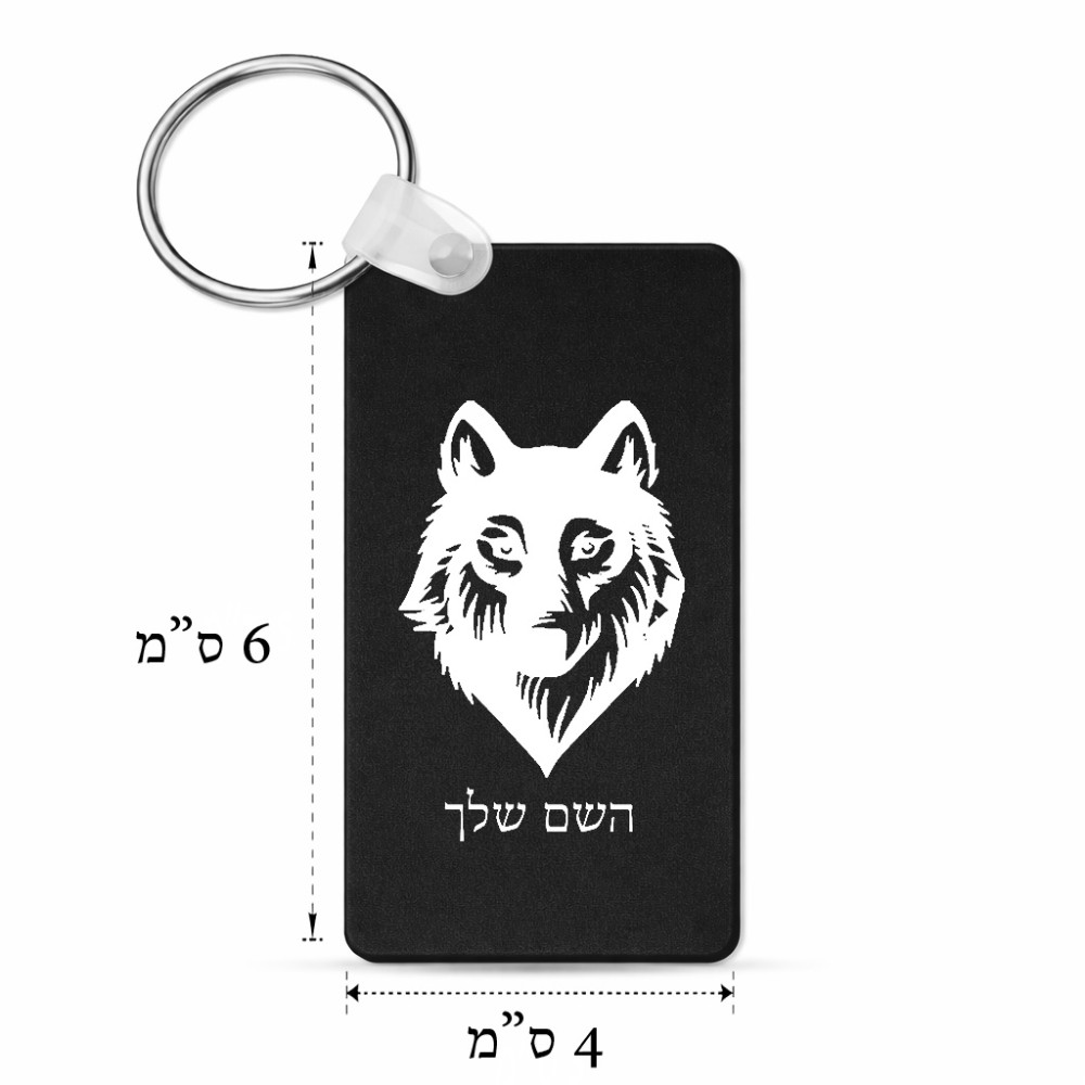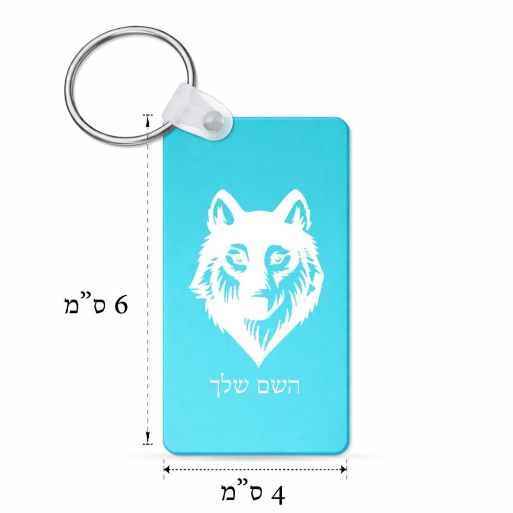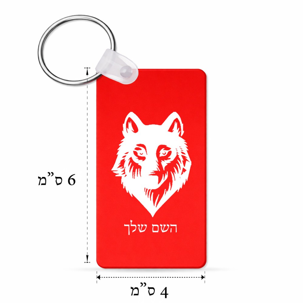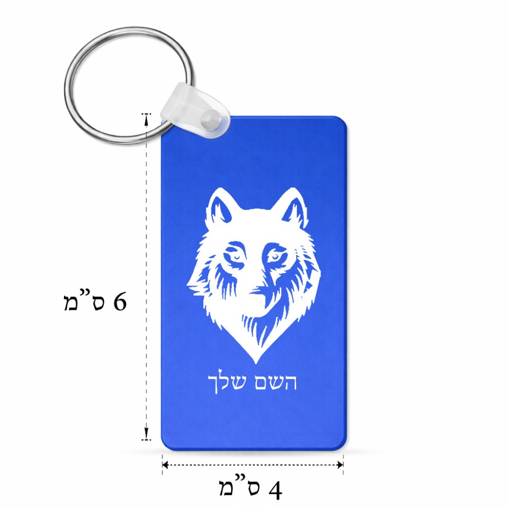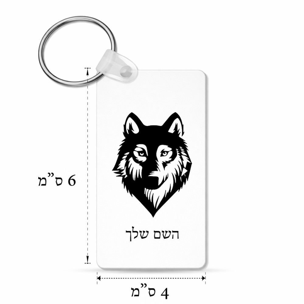 מחזיק מפתחות בצורת מלבן בעיצוב אישי עם השם שלך בעיצוב זאב גודל המחזיק 6 × 4 ס"מ. את השם המבוקש ניתן לציין בהזמנה, אם לא צויין אנחנו ניצור קשר לבירור.