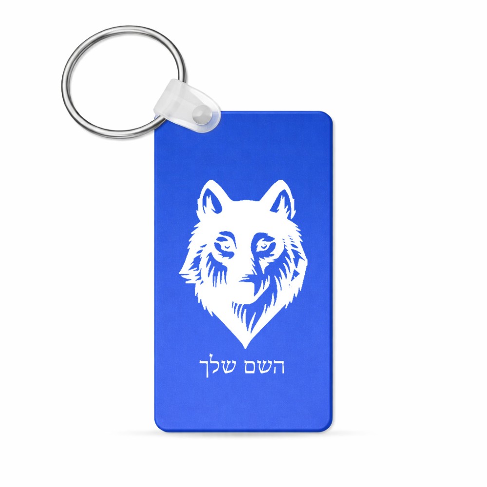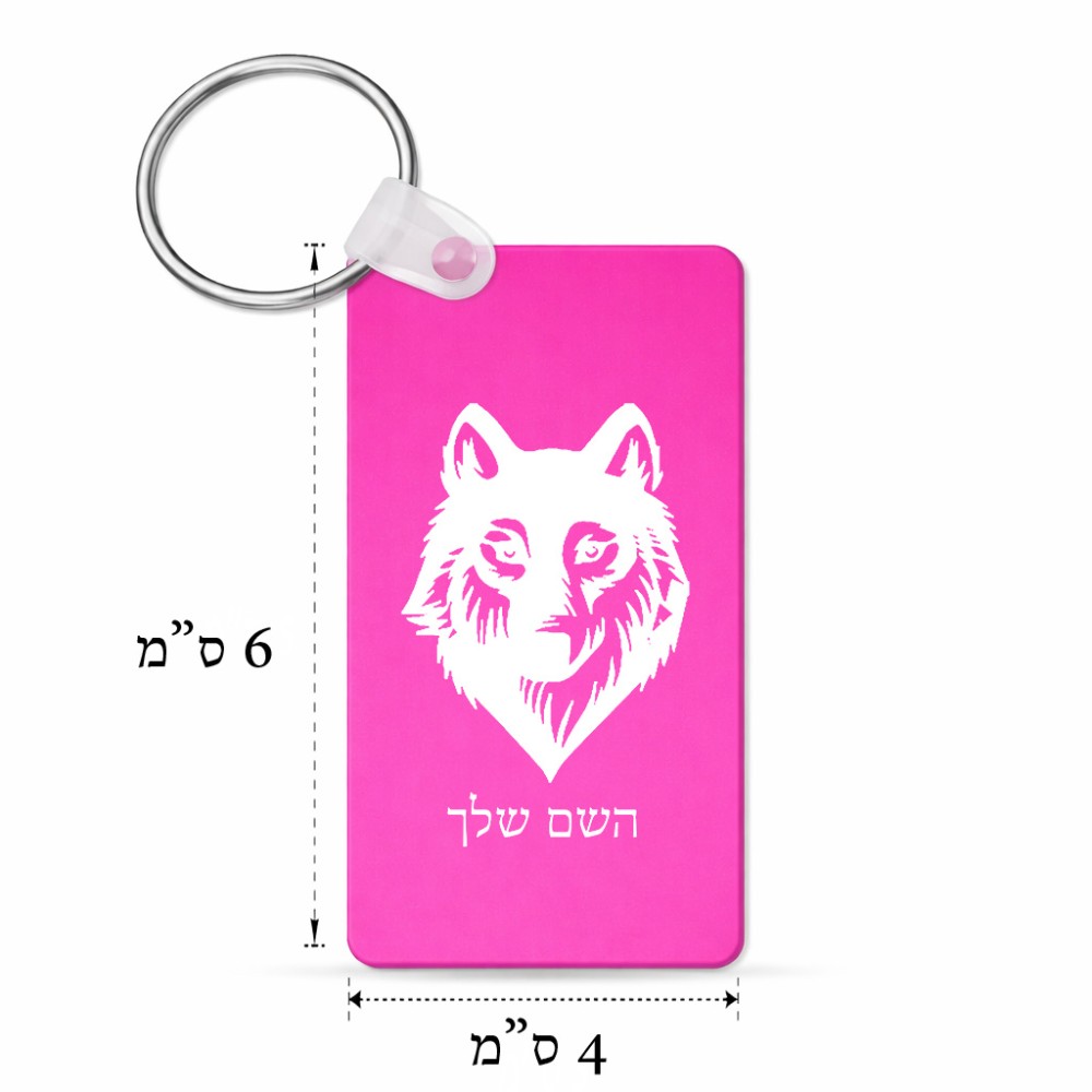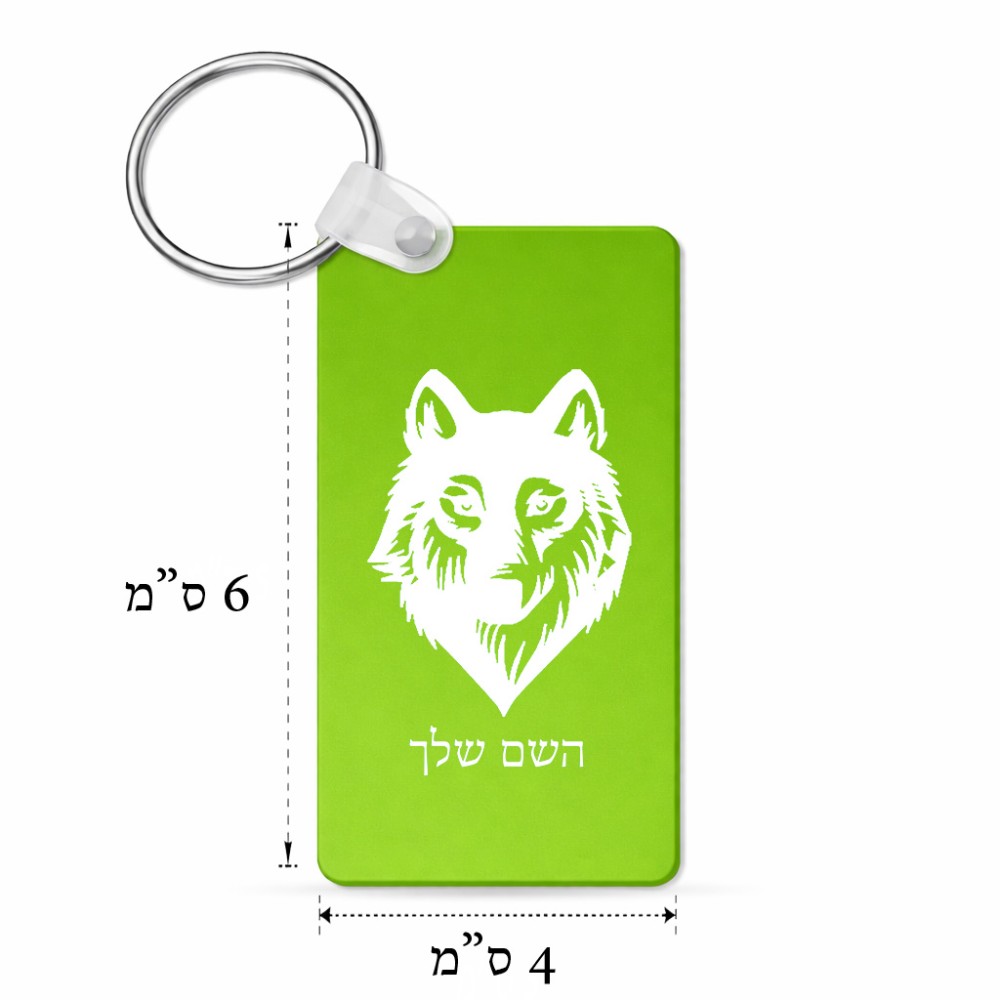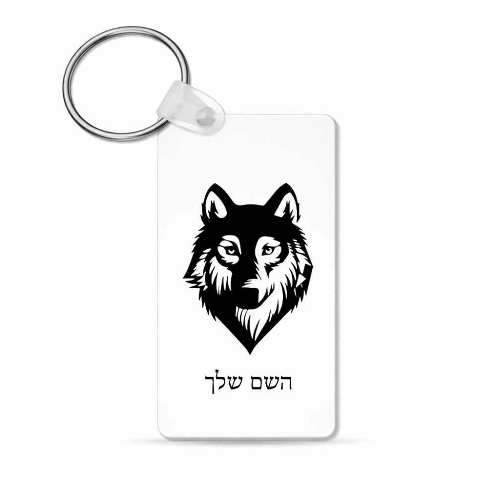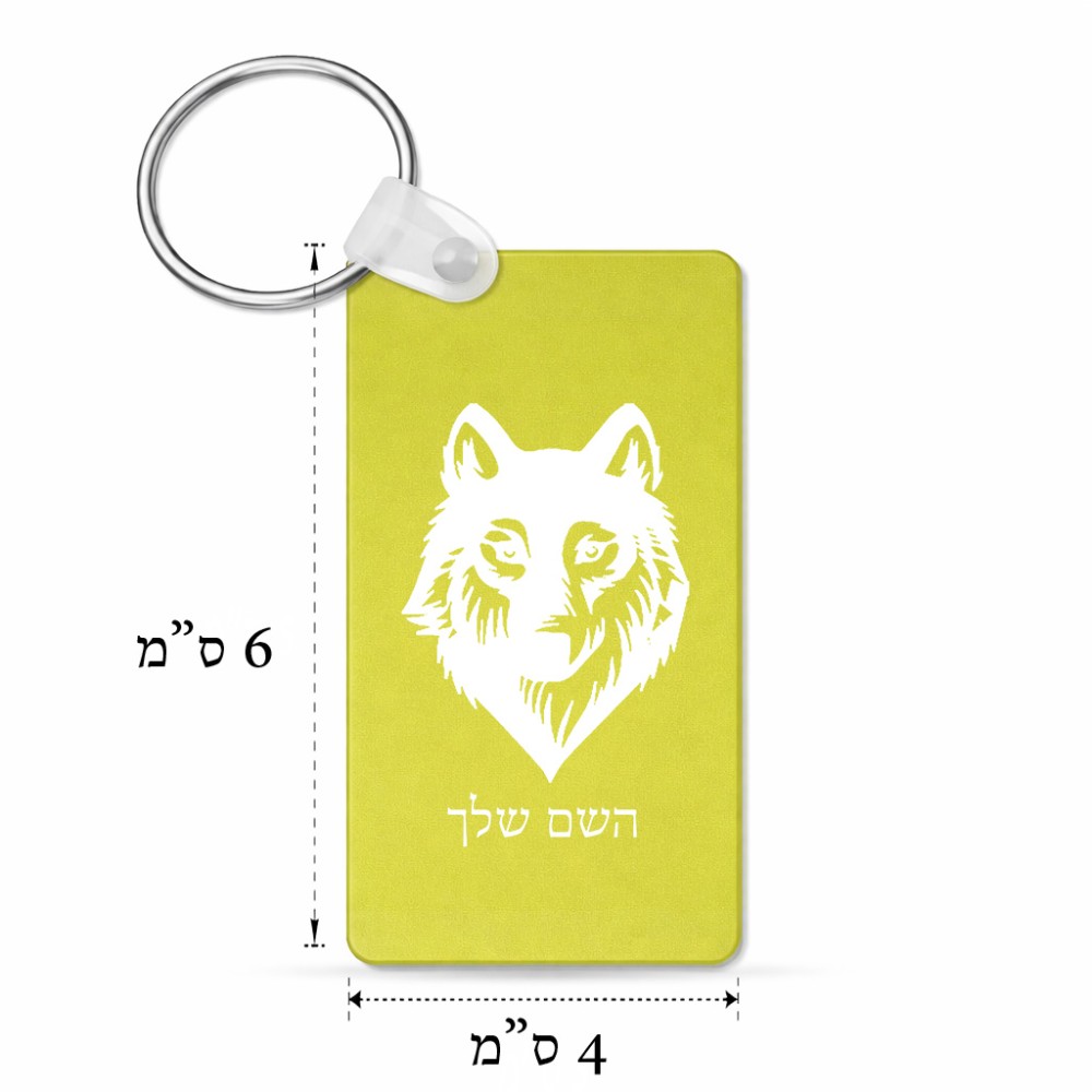 מחזיק מפתחות בצורת מלבן בעיצוב אישי עם השם שלך בעיצוב זאב גודל המחזיק 6 × 4 ס"מ. את השם המבוקש ניתן לציין בהזמנה, אם לא צויין אנחנו ניצור קשר לבירור.