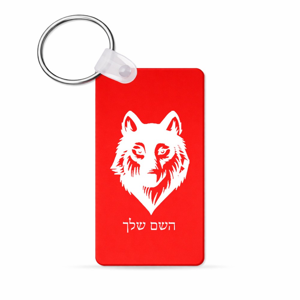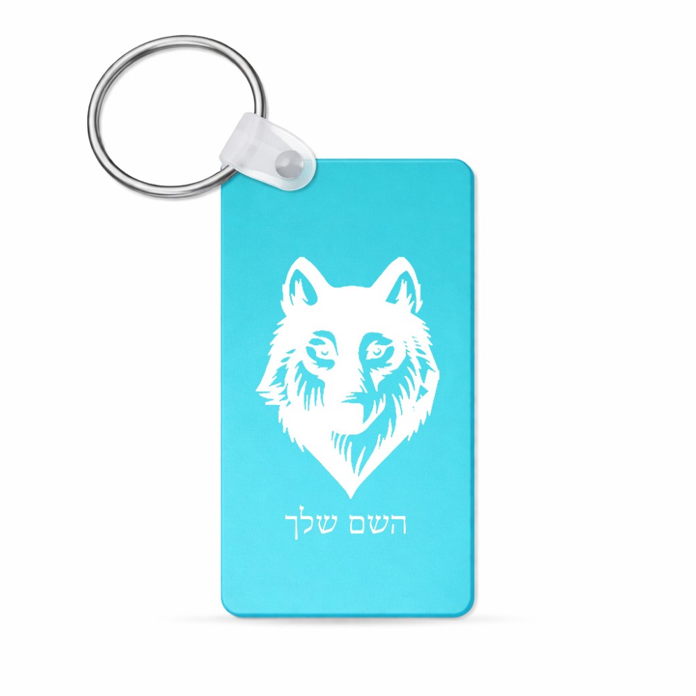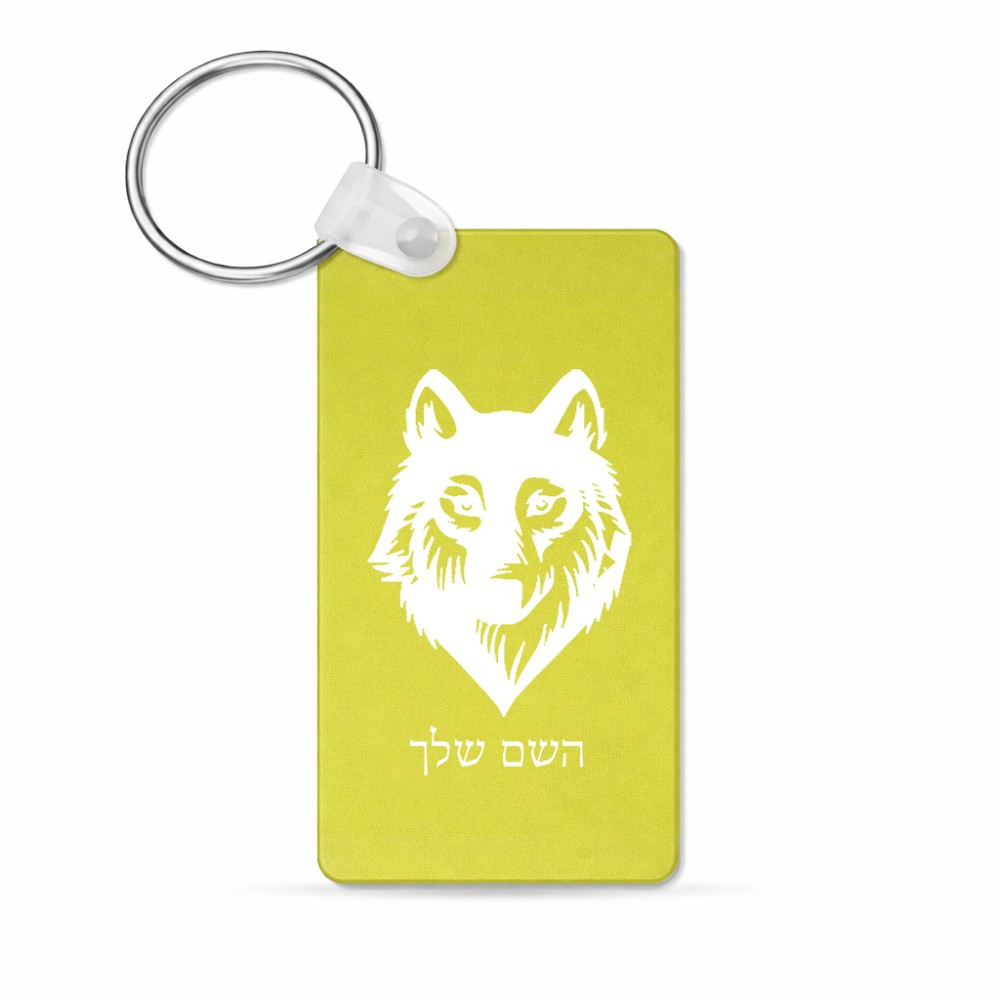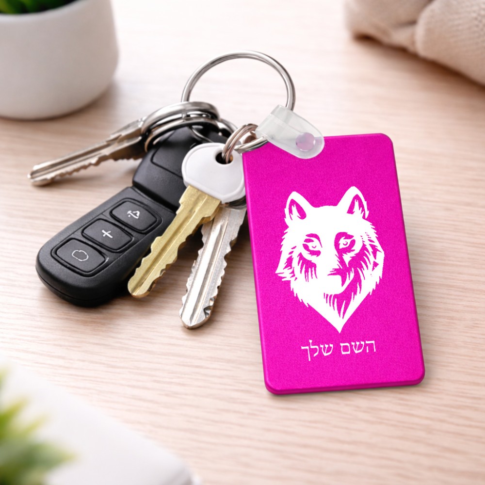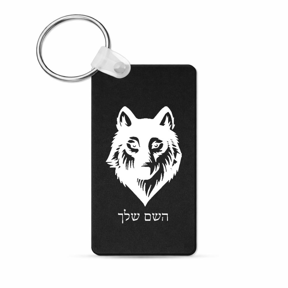 מחזיק מפתחות בצורת מלבן בעיצוב אישי עם השם שלך בעיצוב זאב גודל המחזיק 6 × 4 ס"מ. את השם המבוקש ניתן לציין בהזמנה, אם לא צויין אנחנו ניצור קשר לבירור.