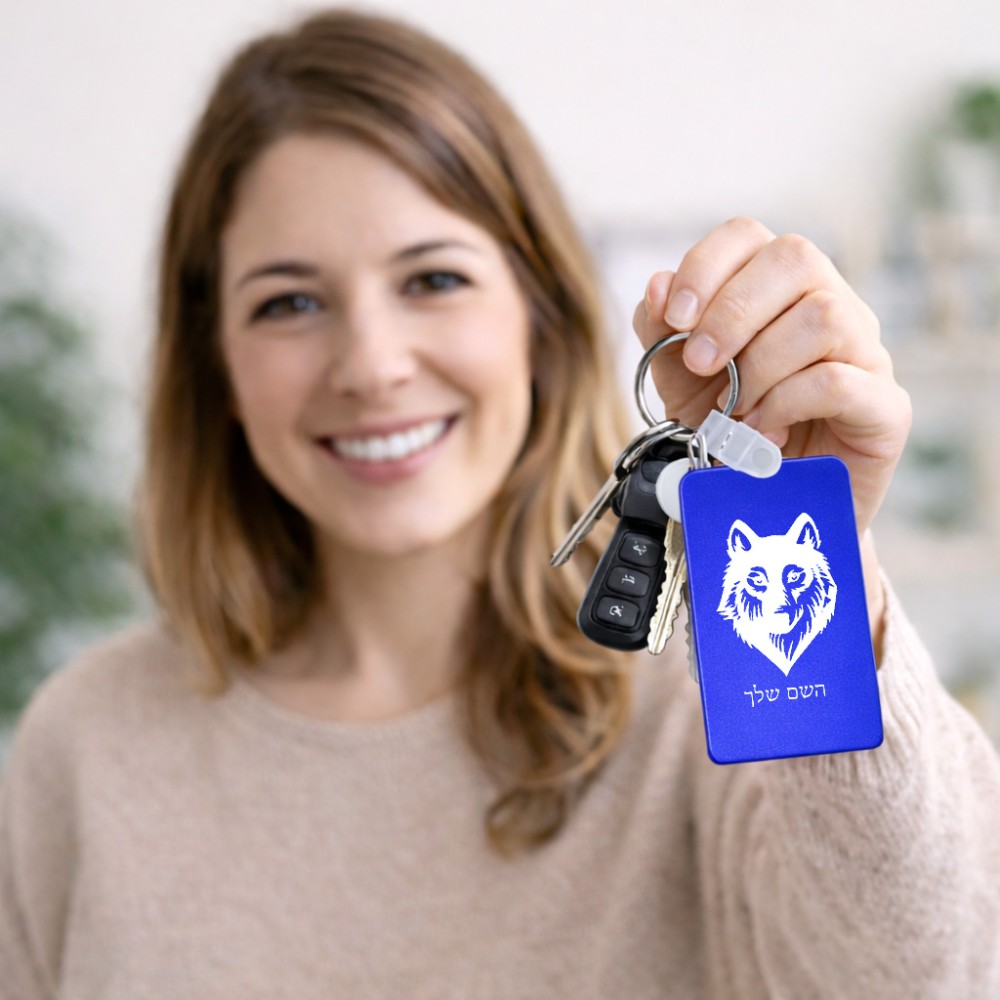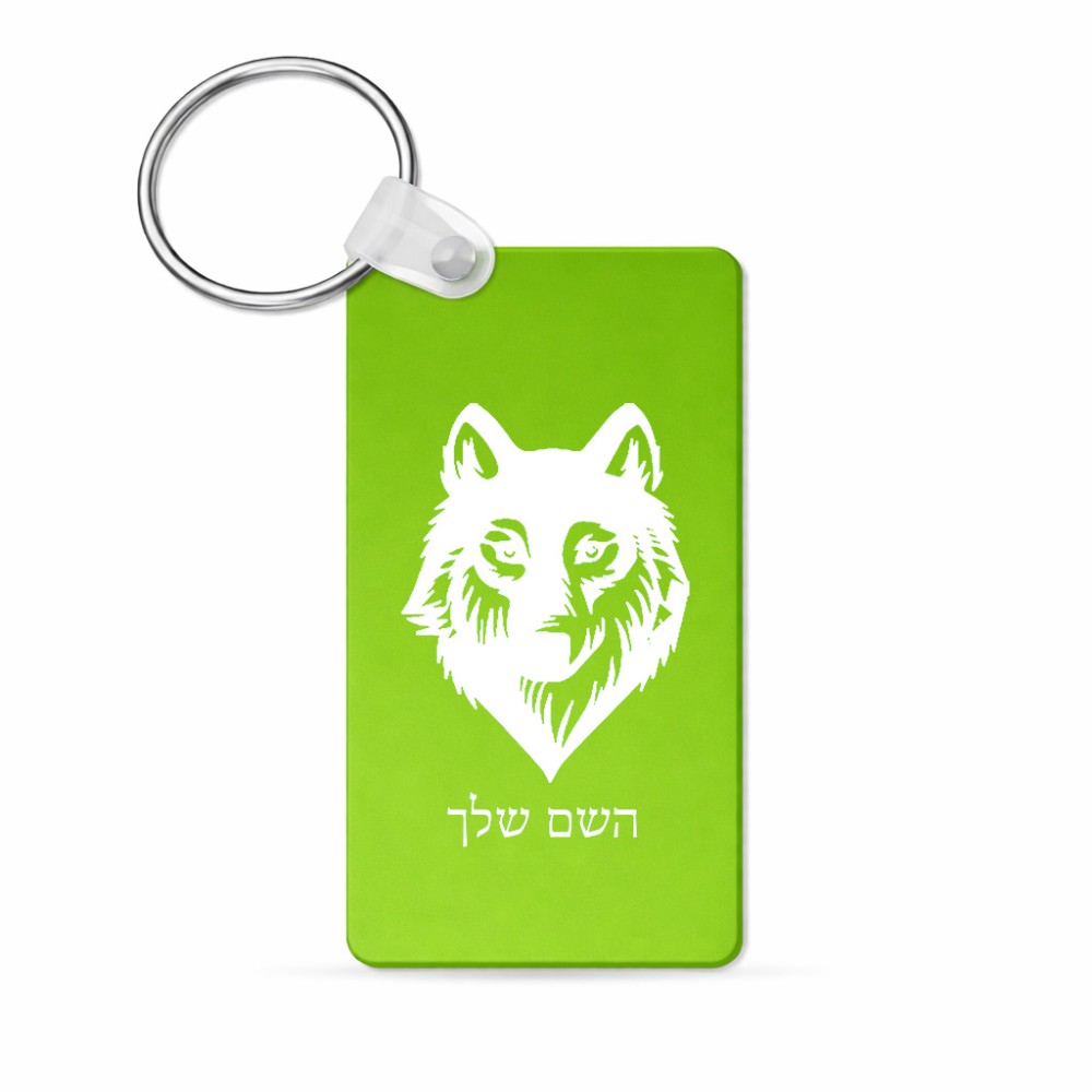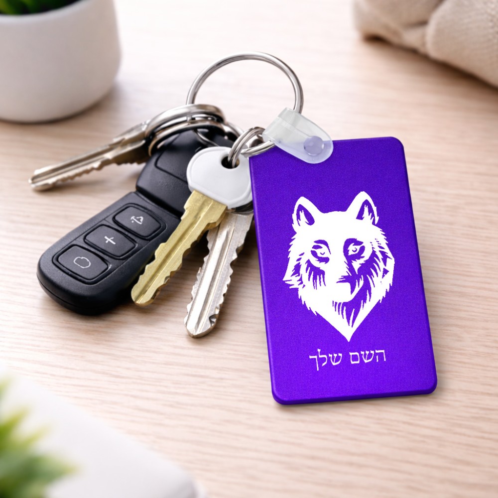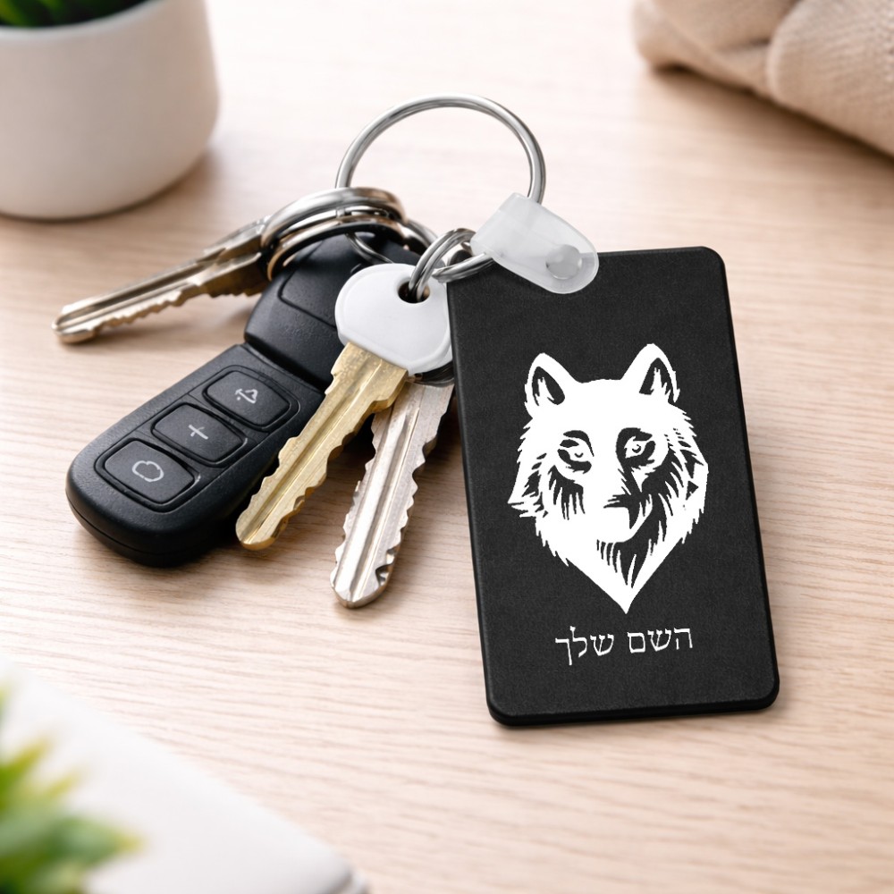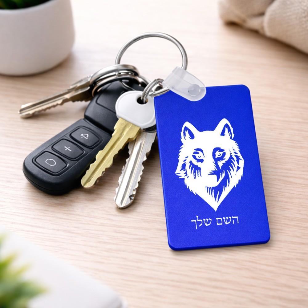 מחזיק מפתחות בצורת מלבן בעיצוב אישי עם השם שלך בעיצוב זאב גודל המחזיק 6 × 4 ס"מ. את השם המבוקש ניתן לציין בהזמנה, אם לא צויין אנחנו ניצור קשר לבירור.
