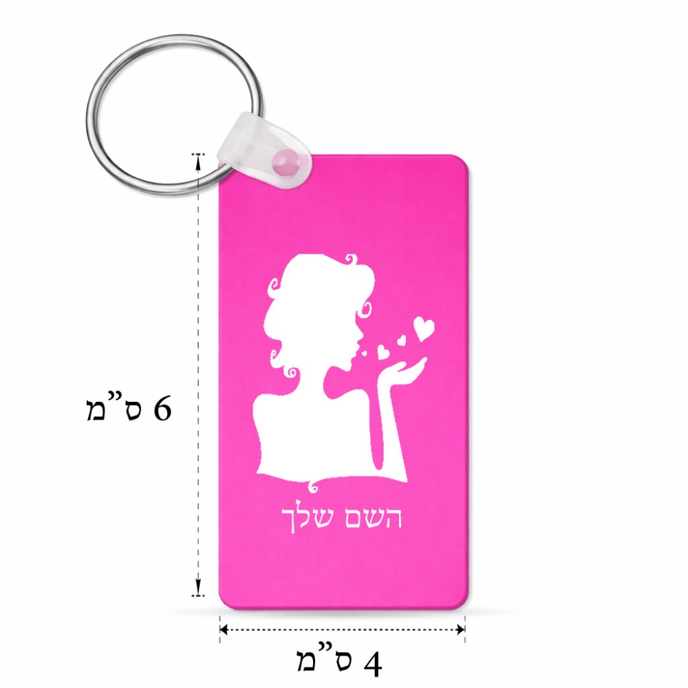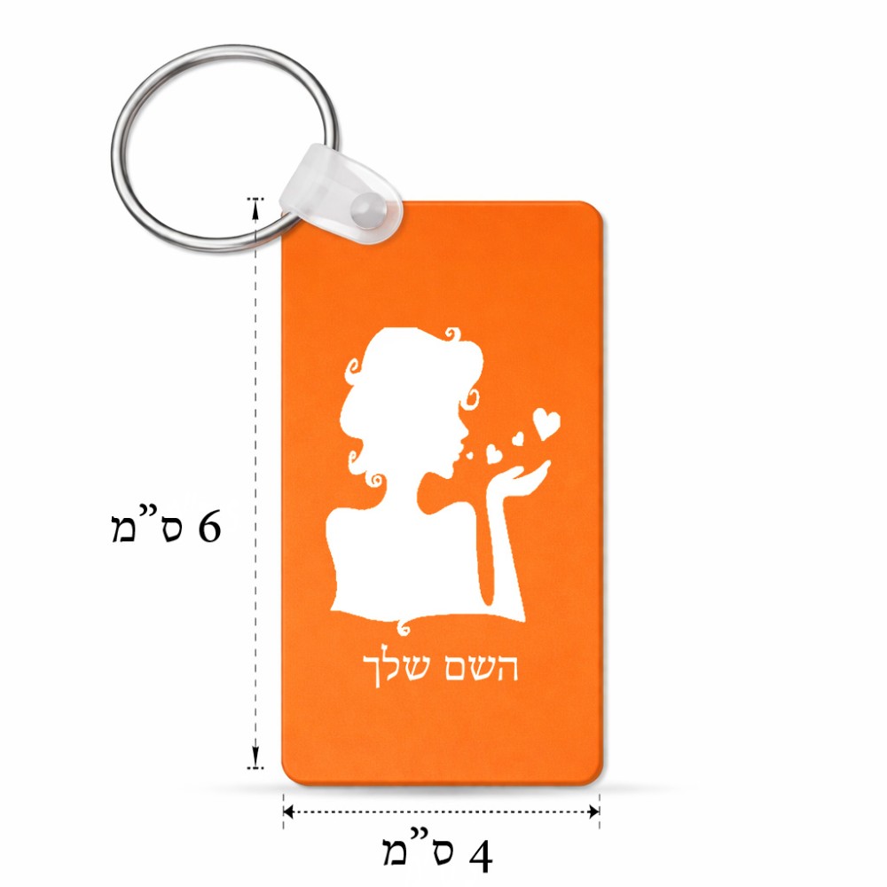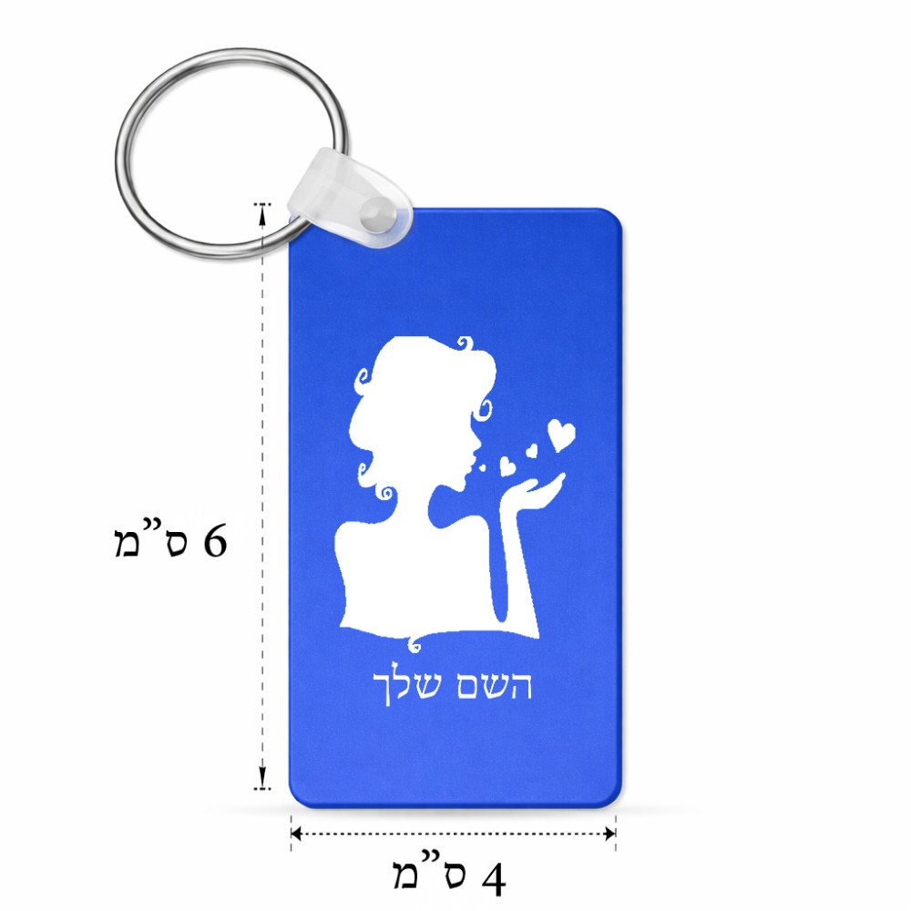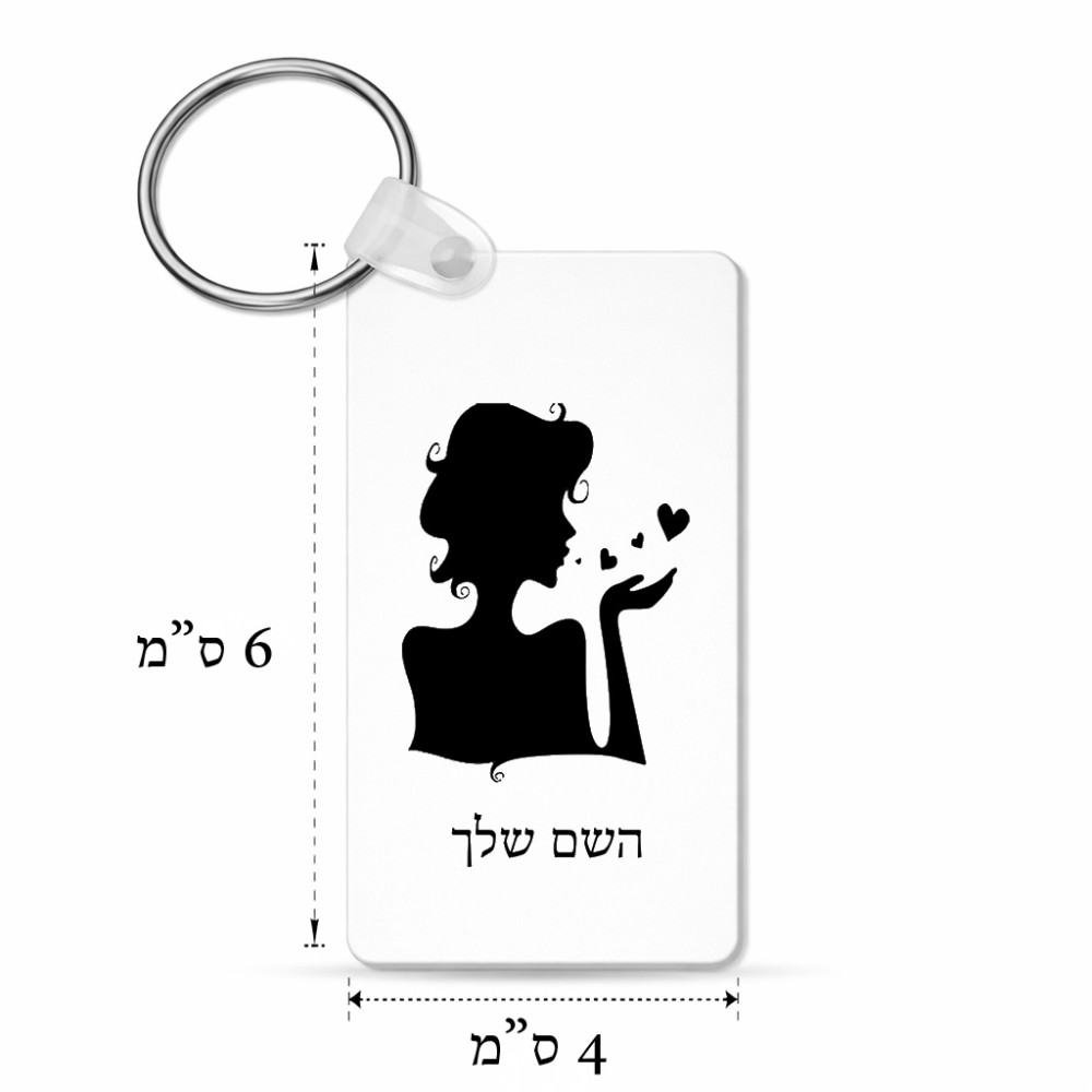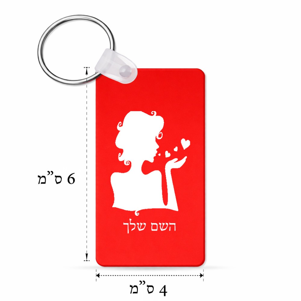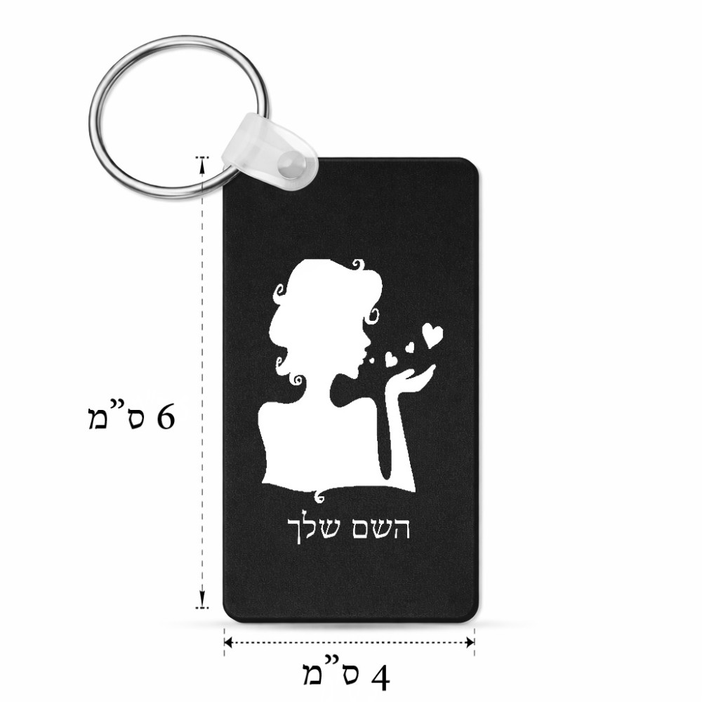 מחזיק מפתחות בצורת מלבן בעיצוב אישי עם השם שלך בעיצוב אהבת נשים גודל המחזיק 6 × 4 ס"מ. את השם המבוקש ניתן לציין בהזמנה, אם לא צויין אנחנו ניצור קשר לבירור.