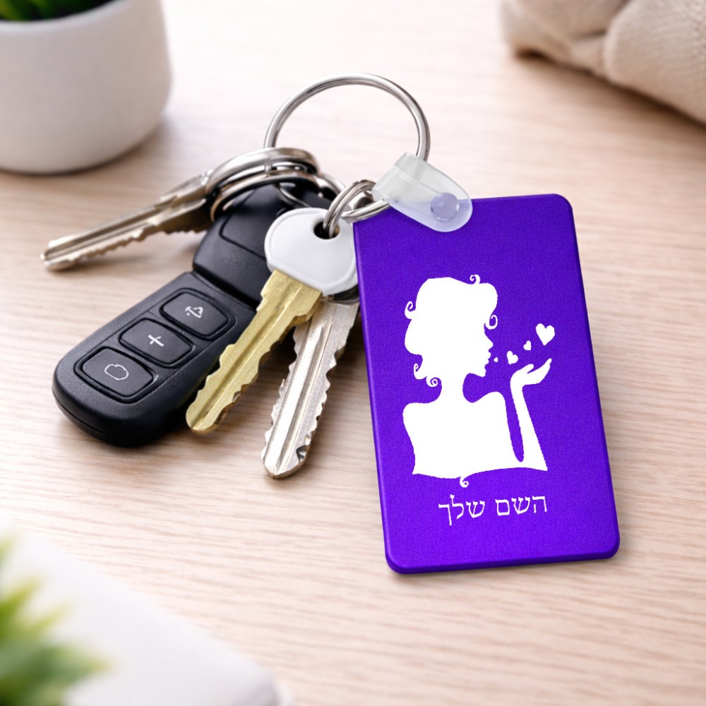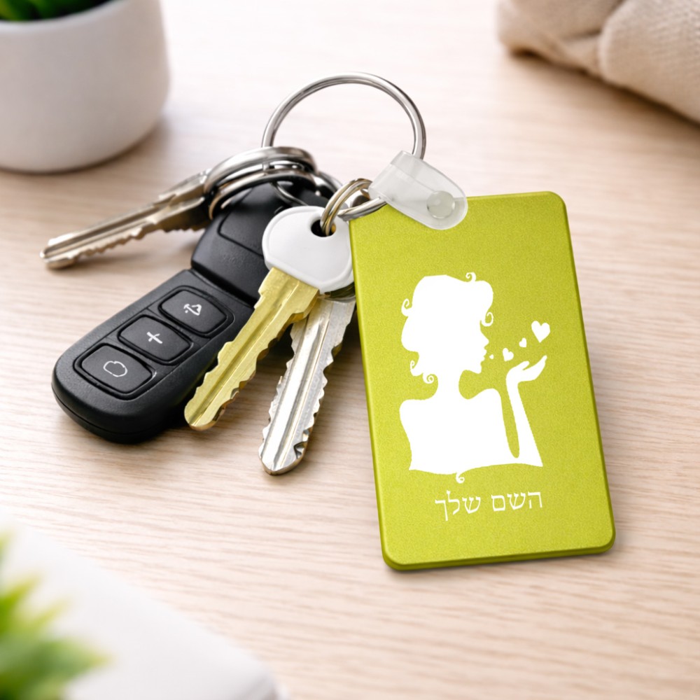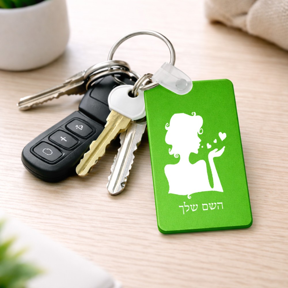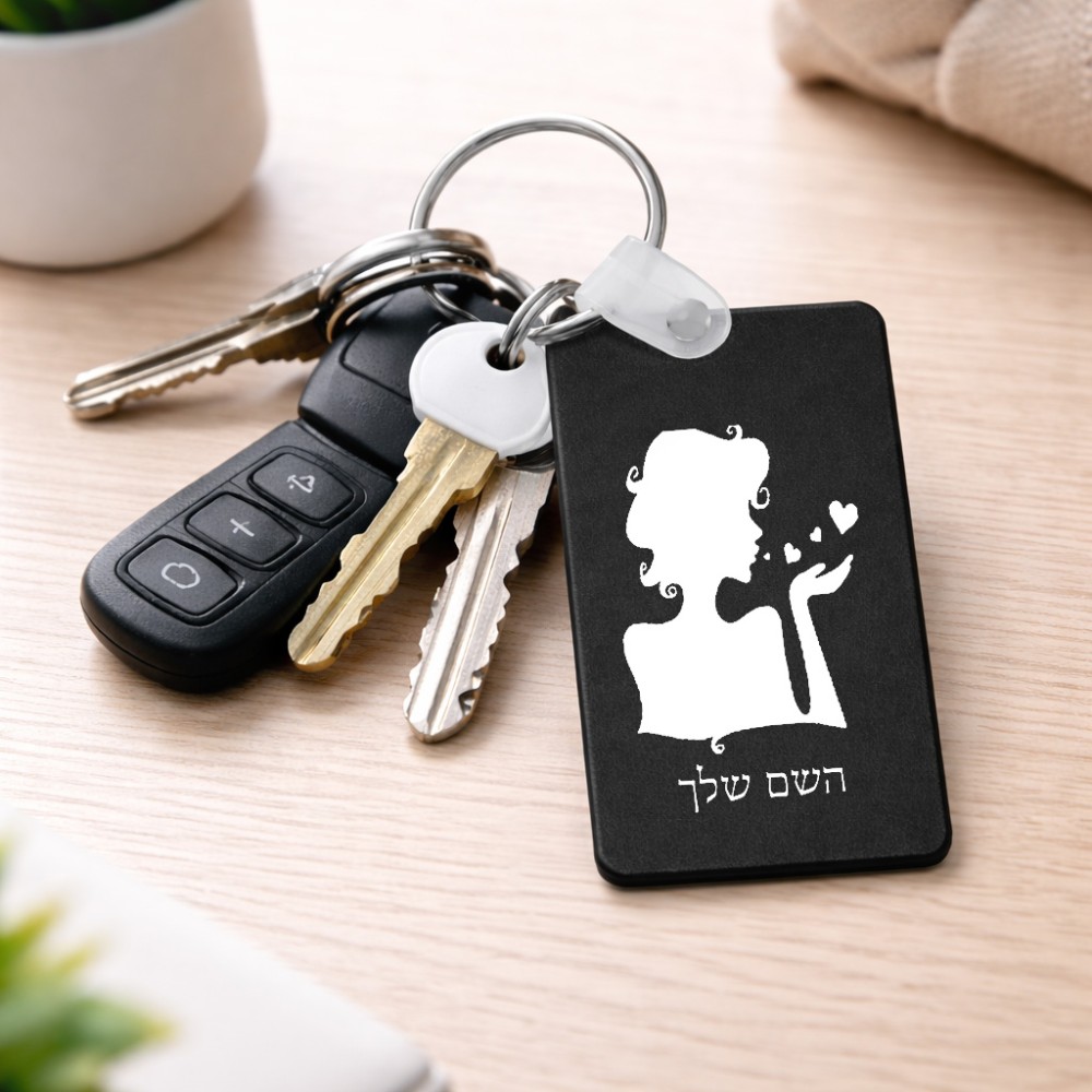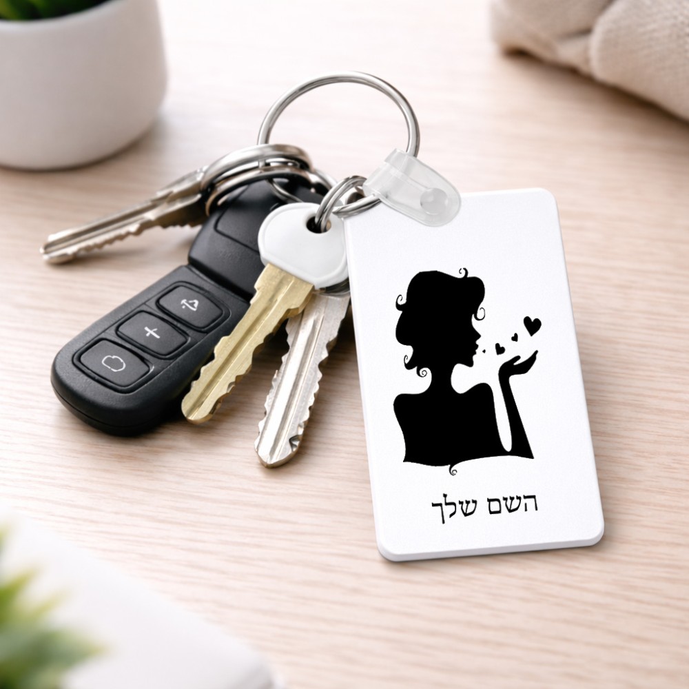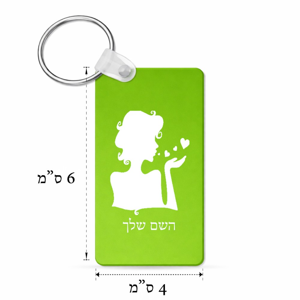 מחזיק מפתחות בצורת מלבן בעיצוב אישי עם השם שלך בעיצוב אהבת נשים גודל המחזיק 6 × 4 ס"מ. את השם המבוקש ניתן לציין בהזמנה, אם לא צויין אנחנו ניצור קשר לבירור.