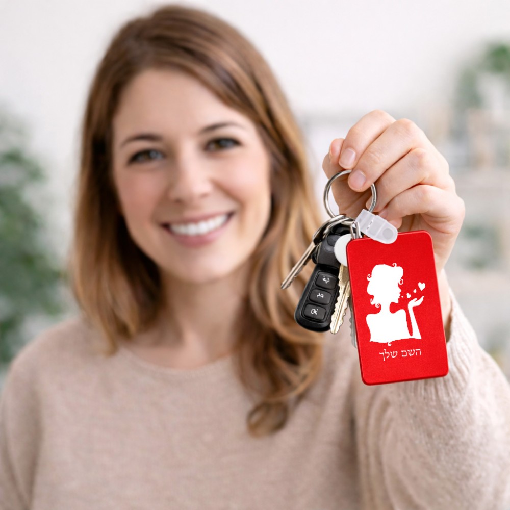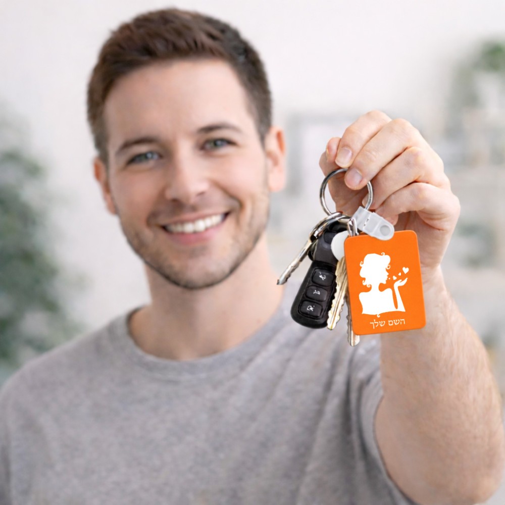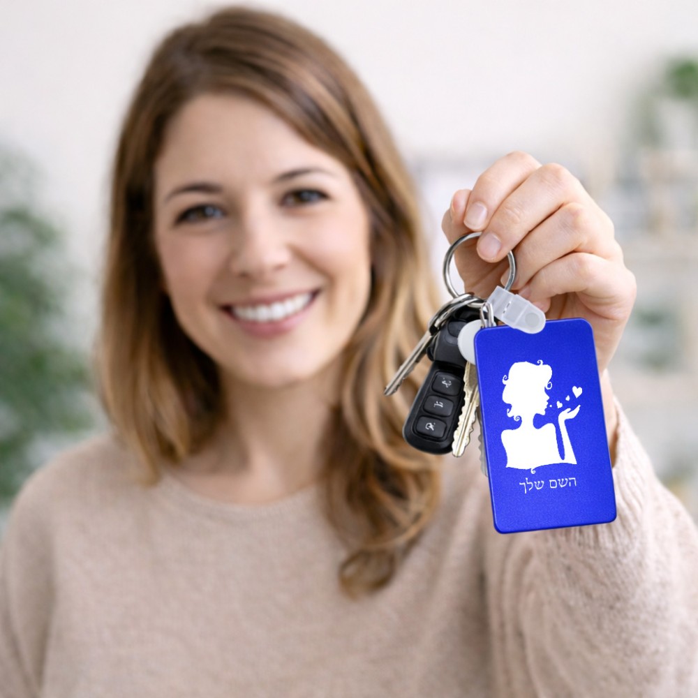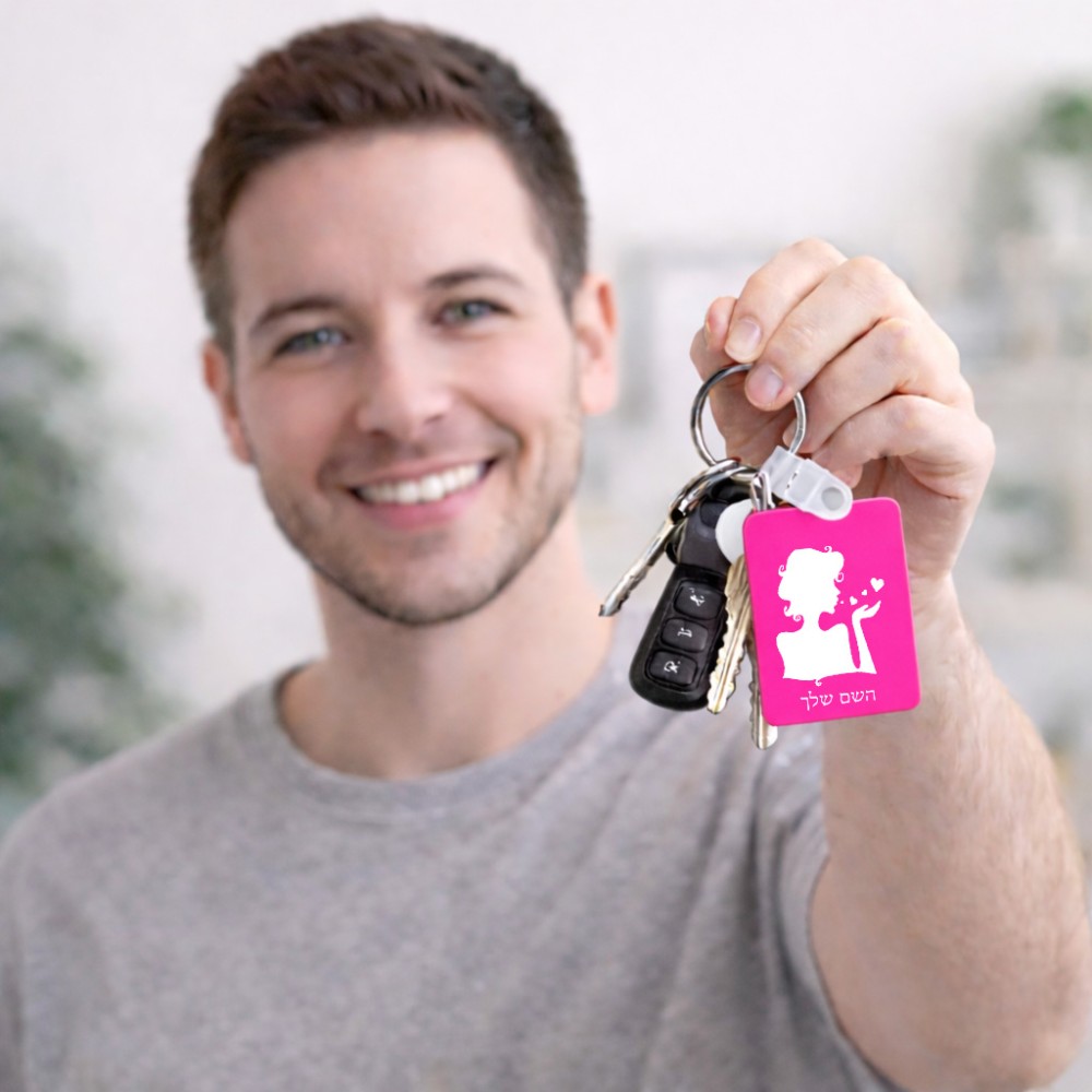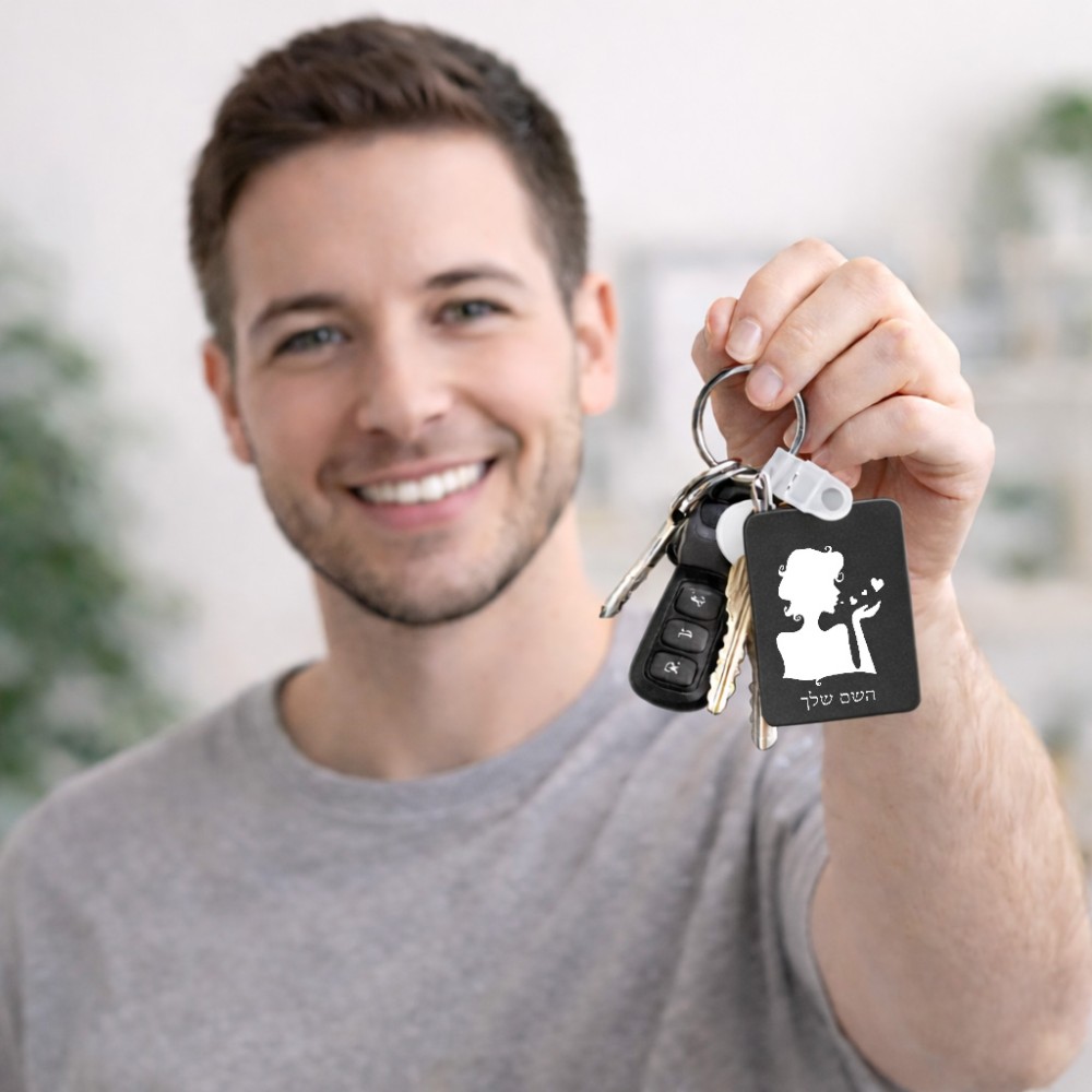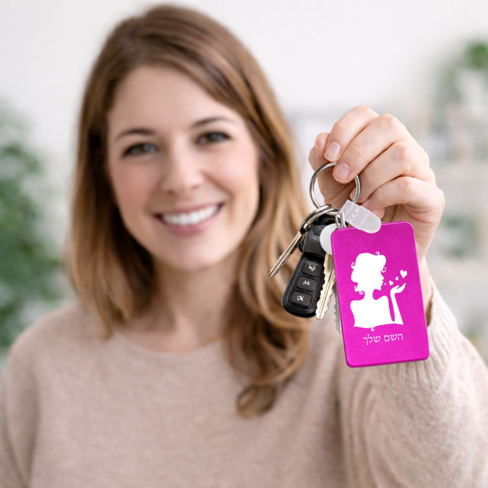 מחזיק מפתחות בצורת מלבן בעיצוב אישי עם השם שלך בעיצוב אהבת נשים גודל המחזיק 6 × 4 ס"מ. את השם המבוקש ניתן לציין בהזמנה, אם לא צויין אנחנו ניצור קשר לבירור.