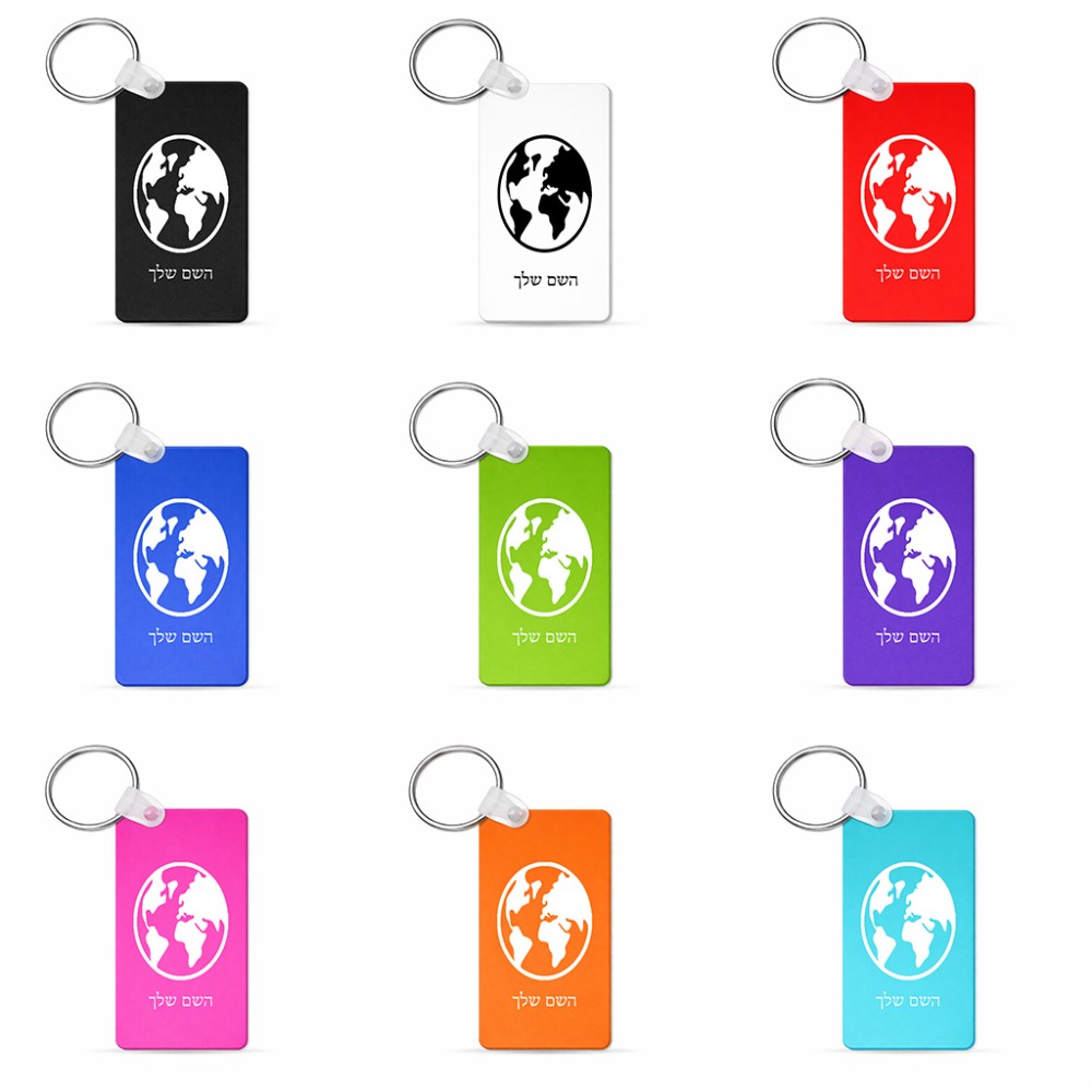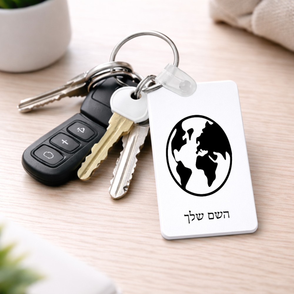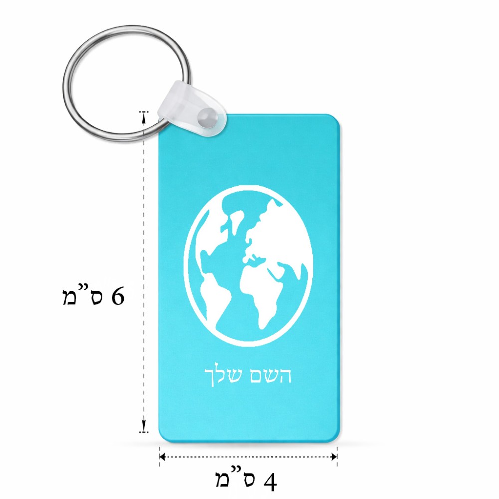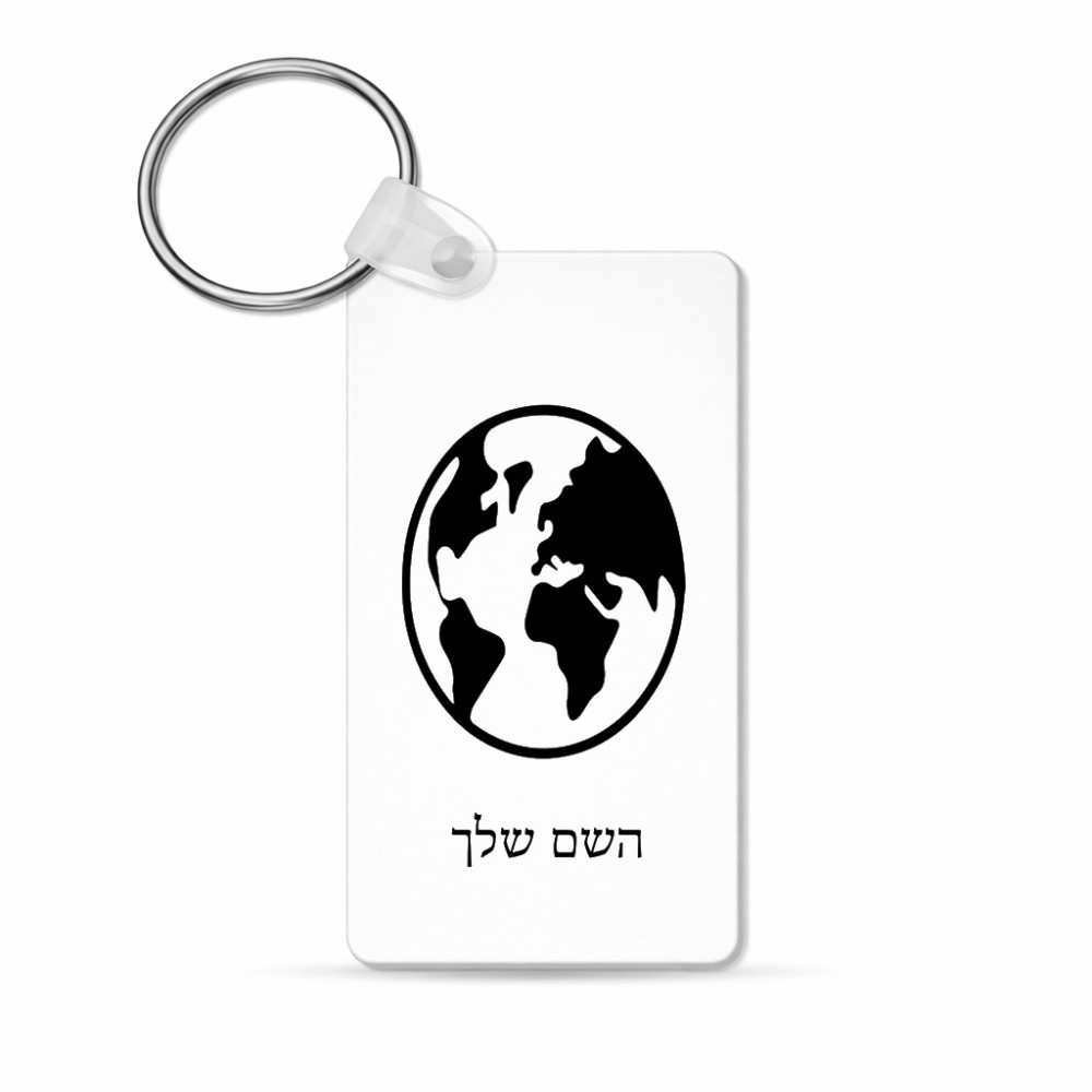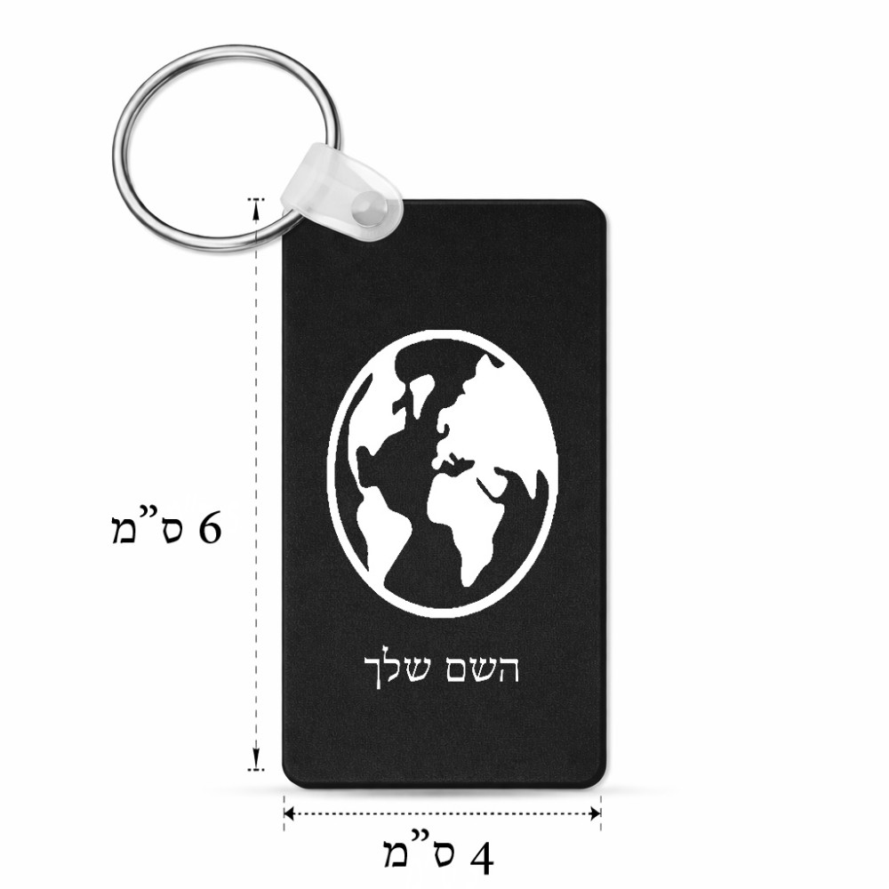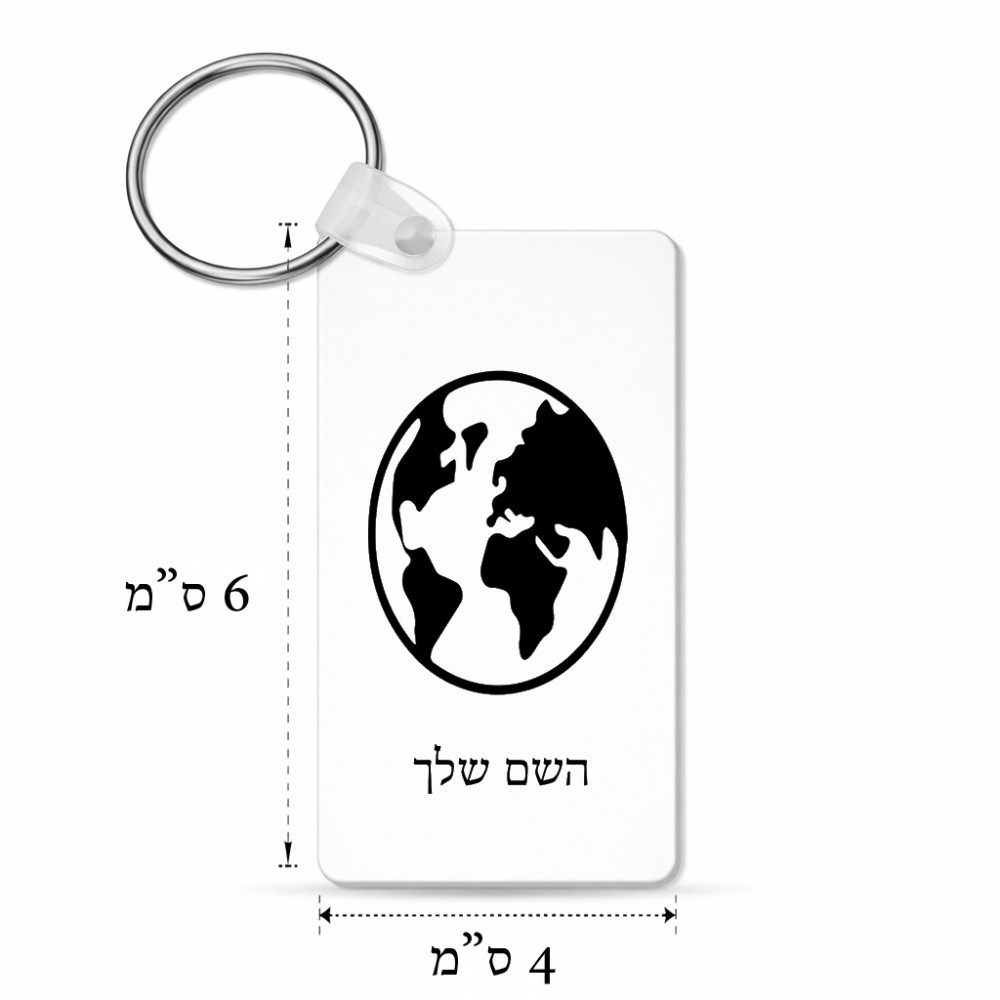 מחזיק מפתחות בצורת מלבן בעיצוב אישי עם השם שלך בעיצוב עולם גודל המחזיק 6 × 4 ס"מ. את השם המבוקש ניתן לציין בהזמנה, אם לא צויין אנחנו ניצור קשר לבירור.