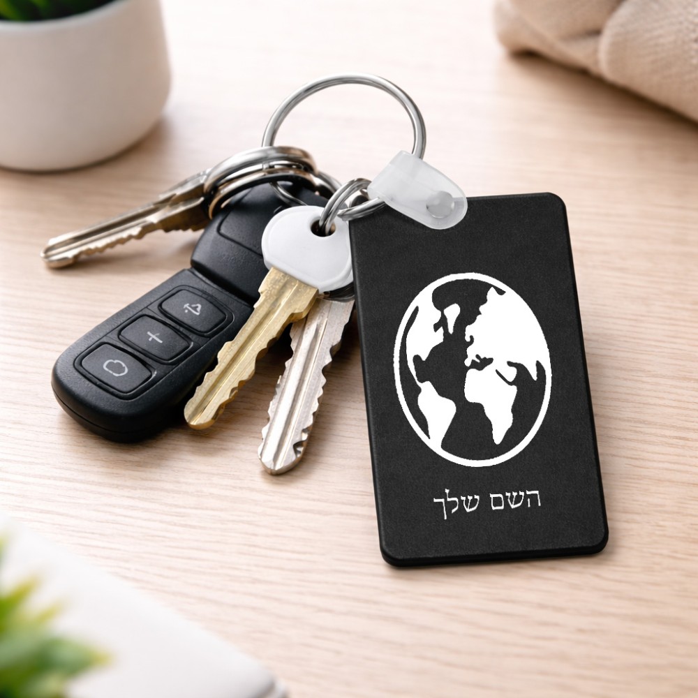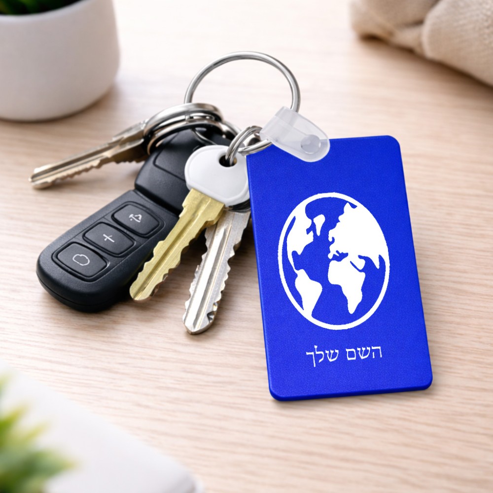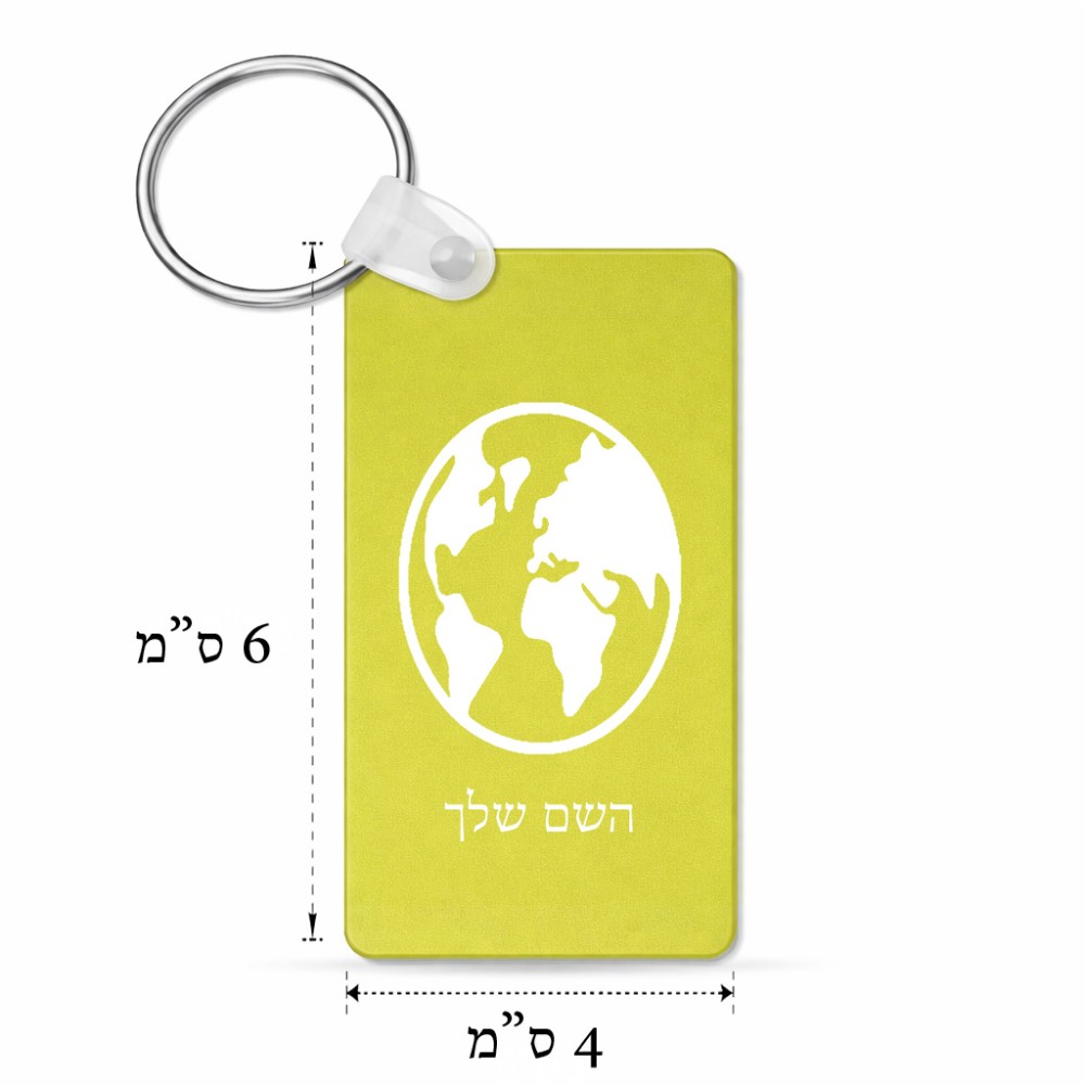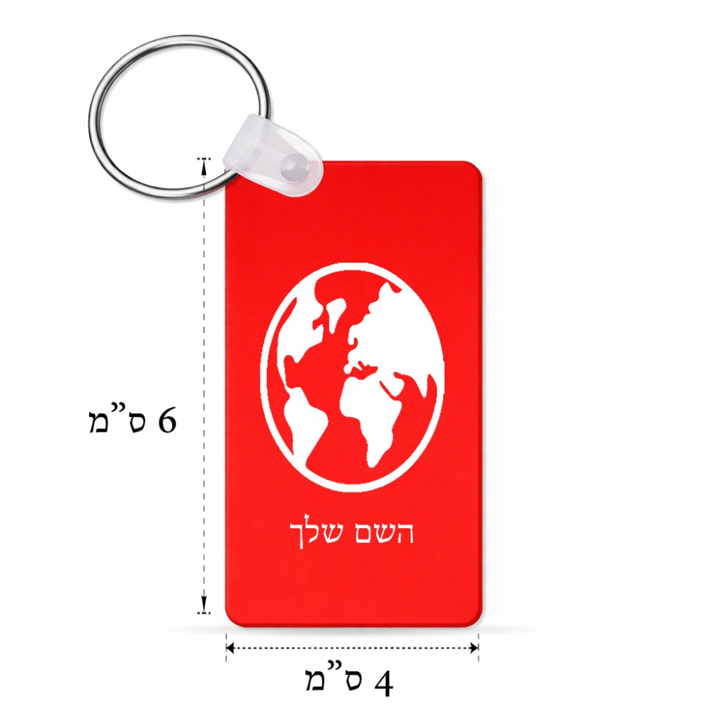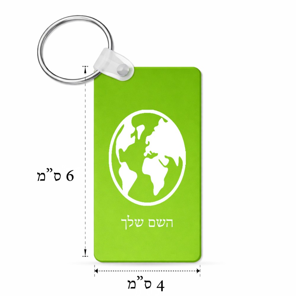 מחזיק מפתחות בצורת מלבן בעיצוב אישי עם השם שלך בעיצוב עולם גודל המחזיק 6 × 4 ס"מ. את השם המבוקש ניתן לציין בהזמנה, אם לא צויין אנחנו ניצור קשר לבירור.