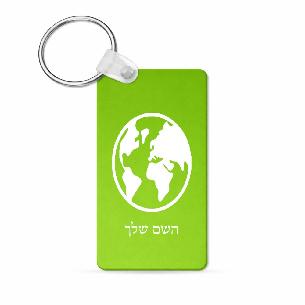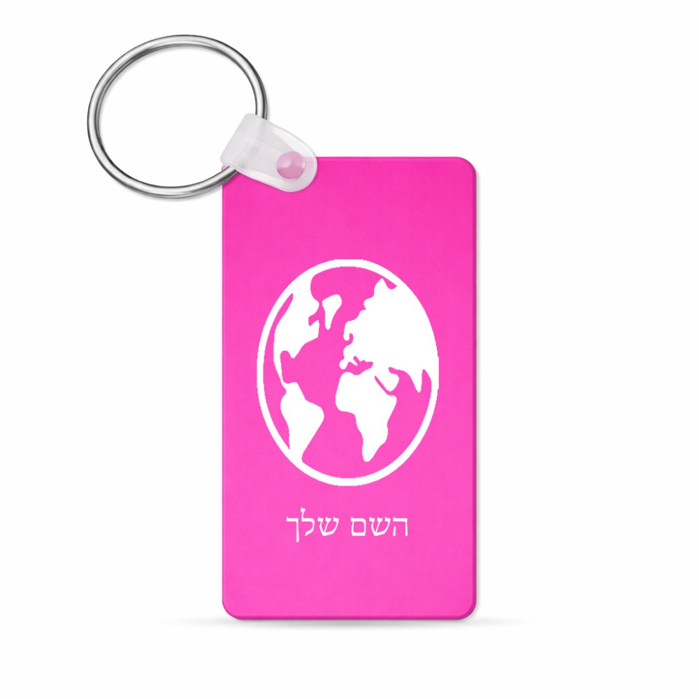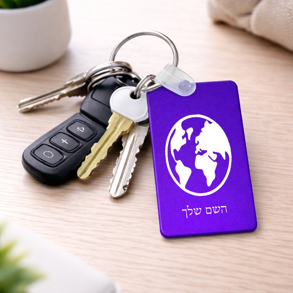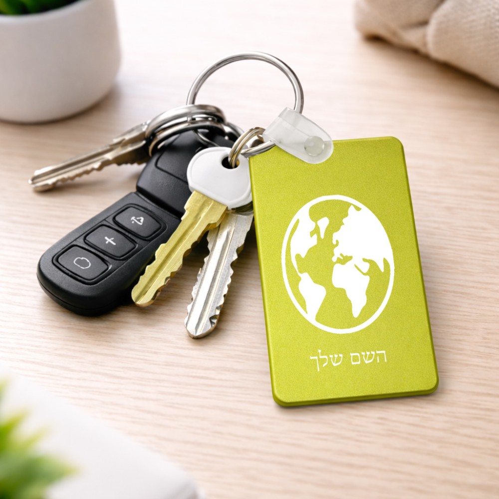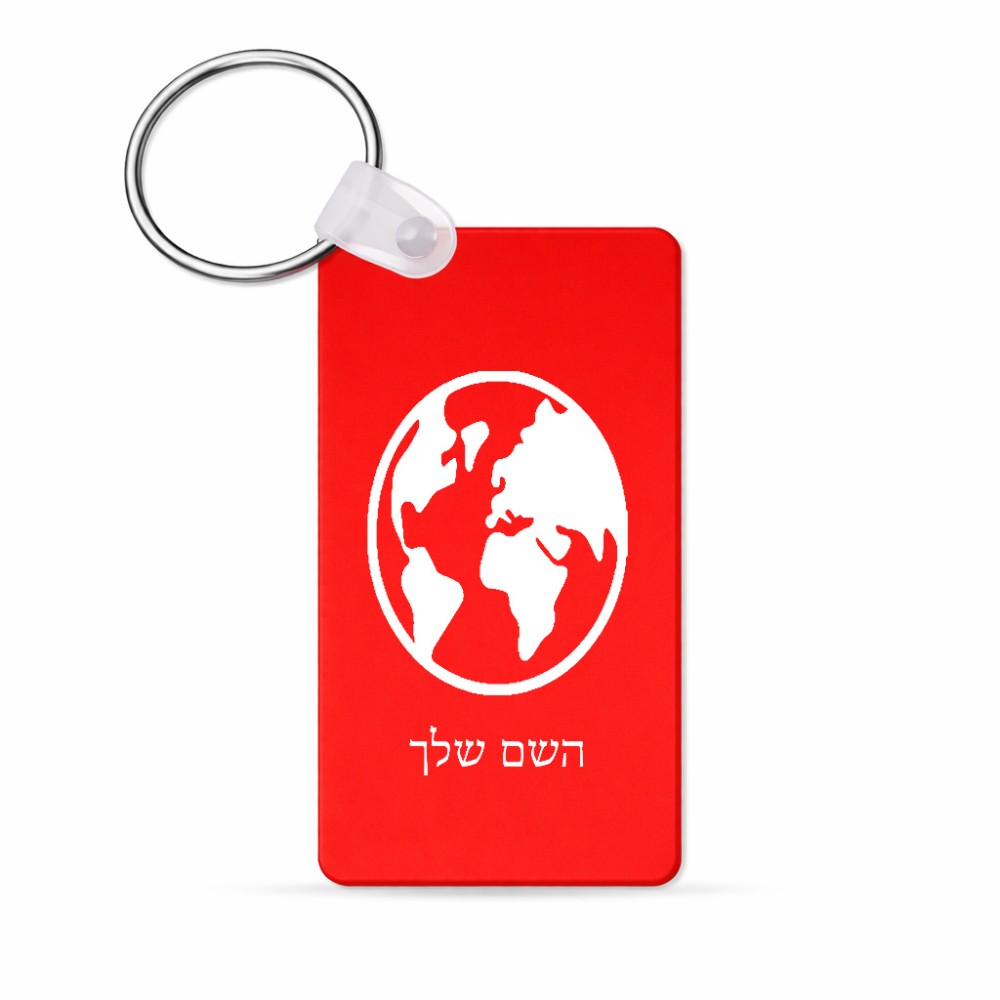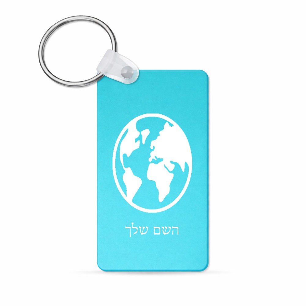 מחזיק מפתחות בצורת מלבן בעיצוב אישי עם השם שלך בעיצוב עולם גודל המחזיק 6 × 4 ס"מ. את השם המבוקש ניתן לציין בהזמנה, אם לא צויין אנחנו ניצור קשר לבירור.