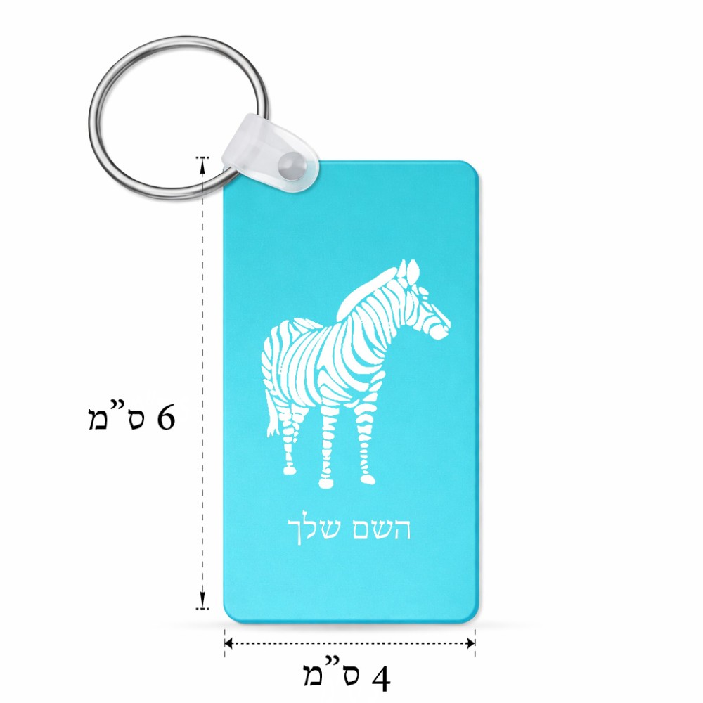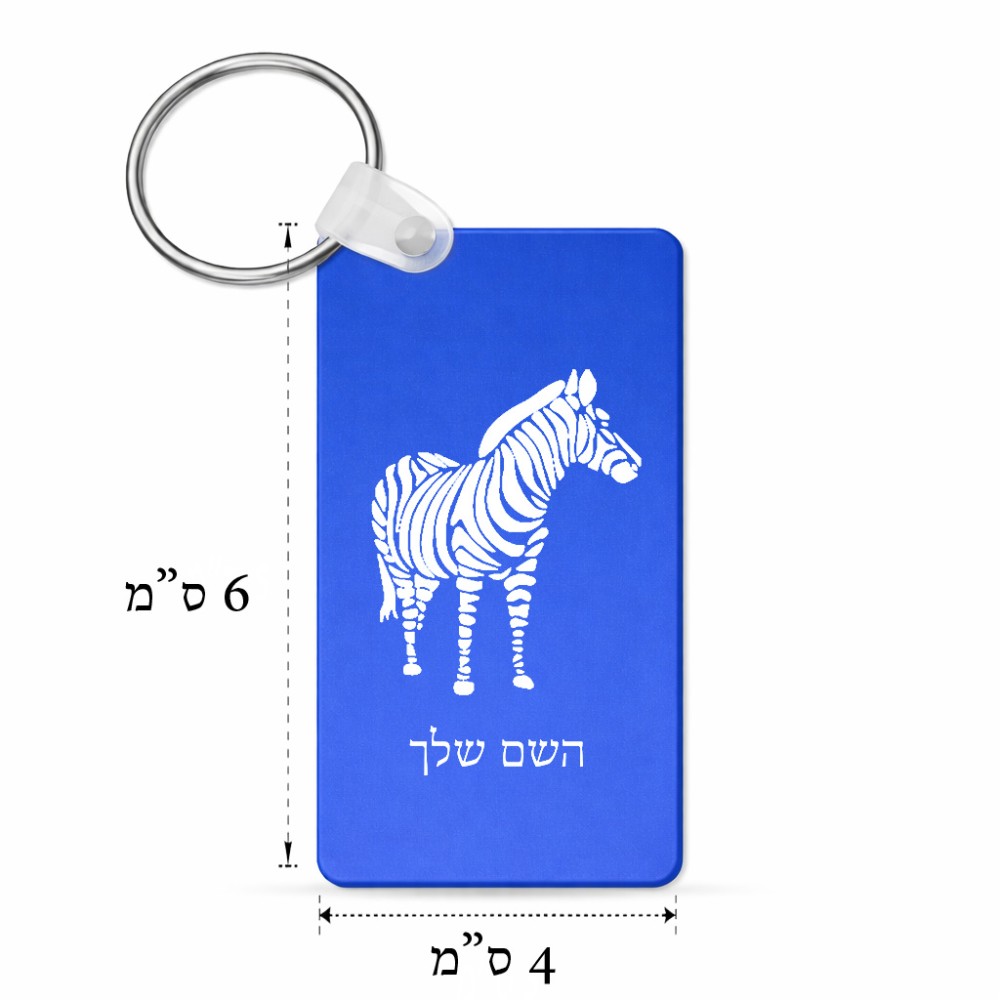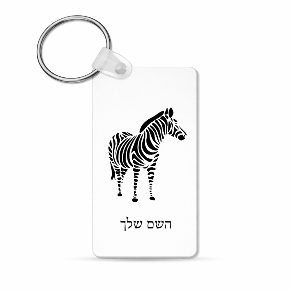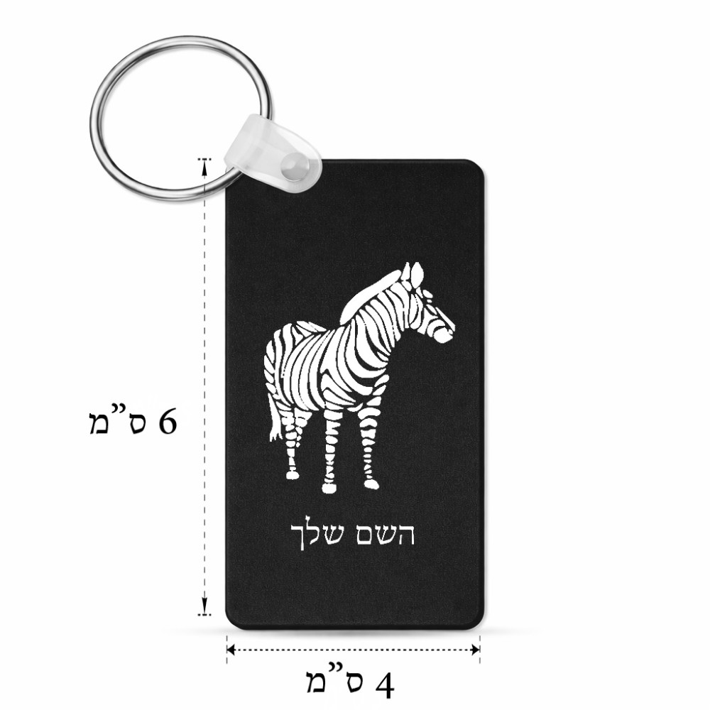 מחזיק מפתחות בצורת מלבן בעיצוב אישי עם השם שלך בעיצוב זברה גודל המחזיק 6 × 4 ס"מ. את השם המבוקש ניתן לציין בהזמנה, אם לא צויין אנחנו ניצור קשר לבירור.