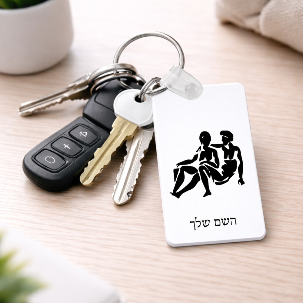 מחזיק מפתחות בצורת מלבן בעיצוב אישי עם השם שלך בעיצוב מזלות - תאומים גודל המחזיק 6 × 4 ס"מ. את השם המבוקש ניתן לציין בהזמנה, אם לא צויין אנחנו ניצור קשר לבירור.