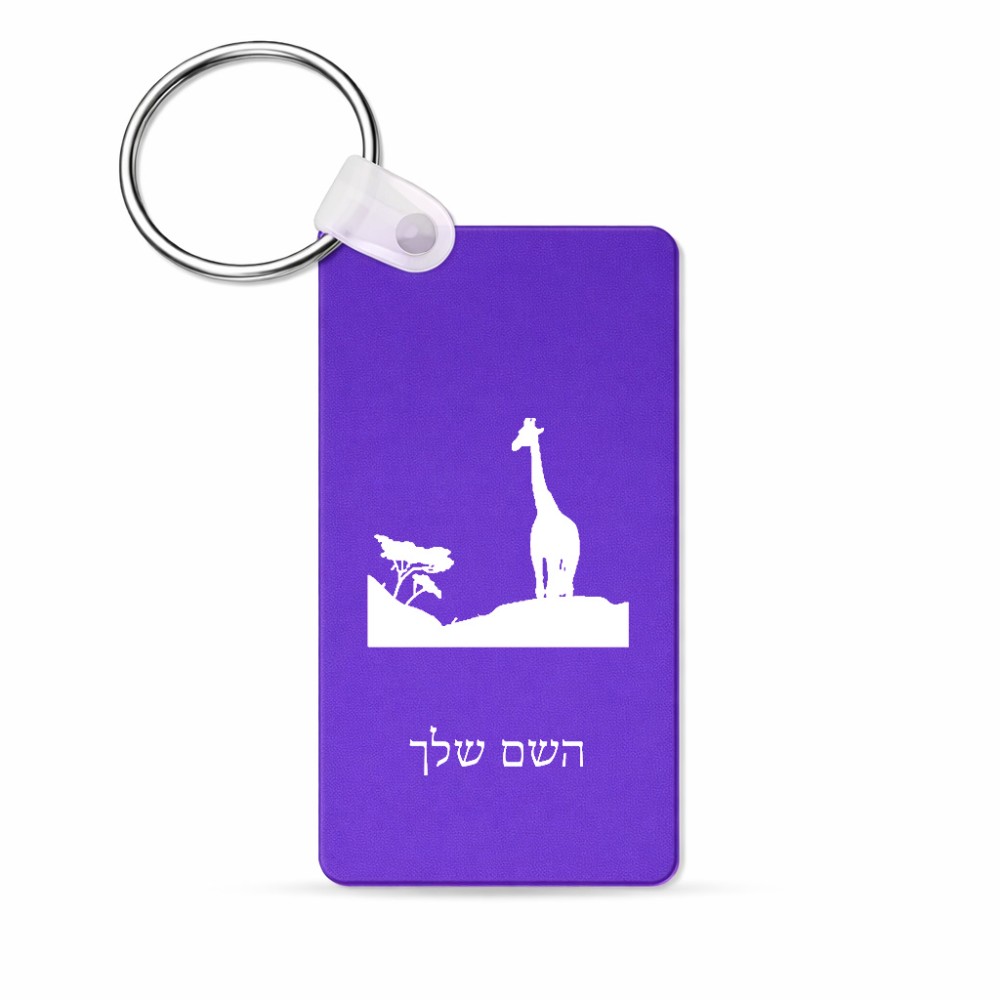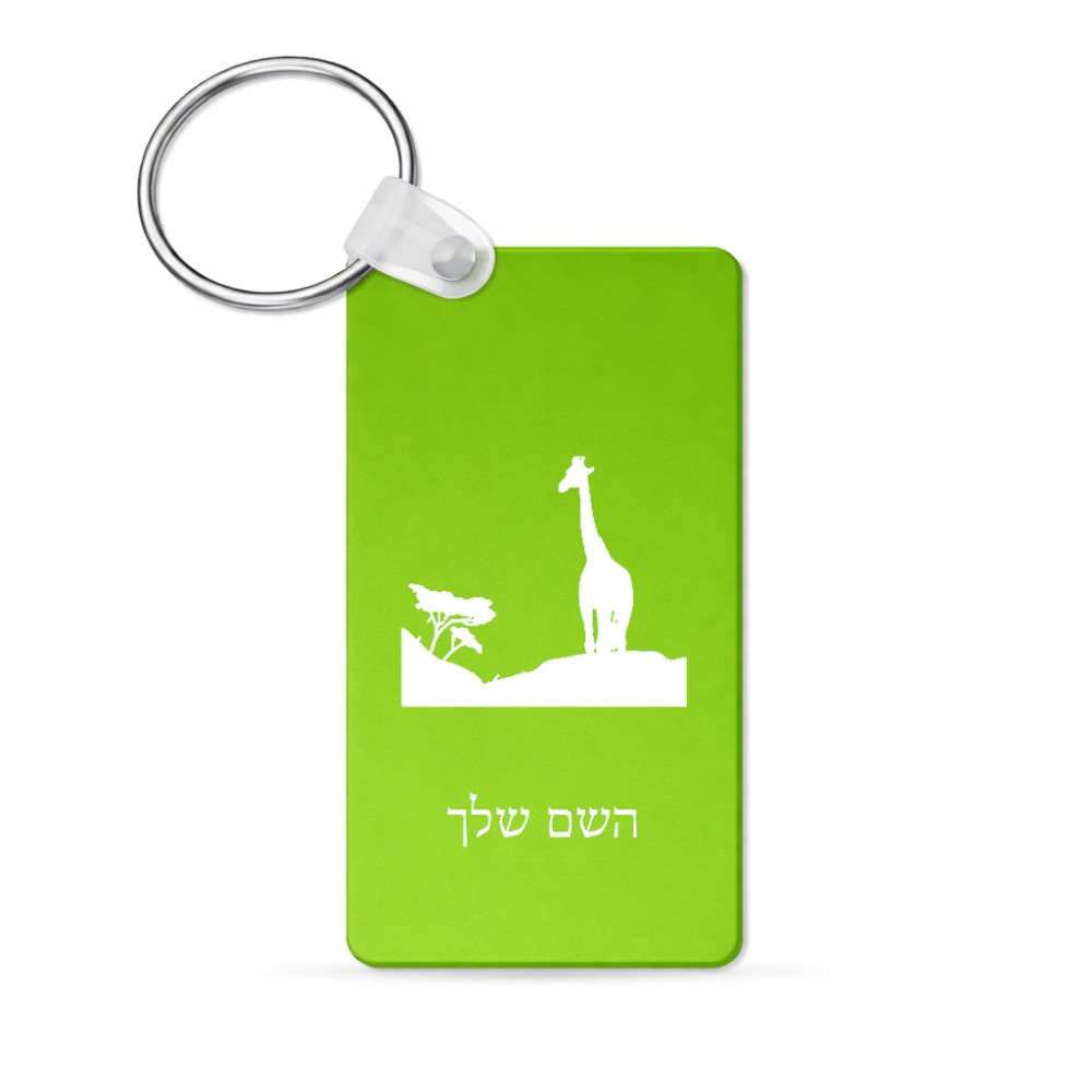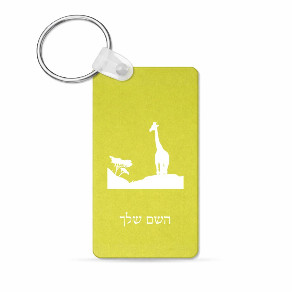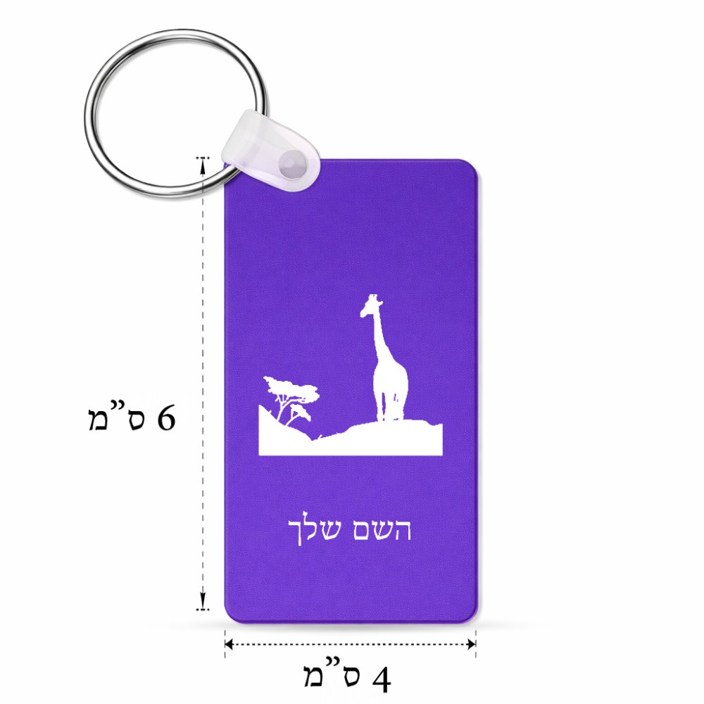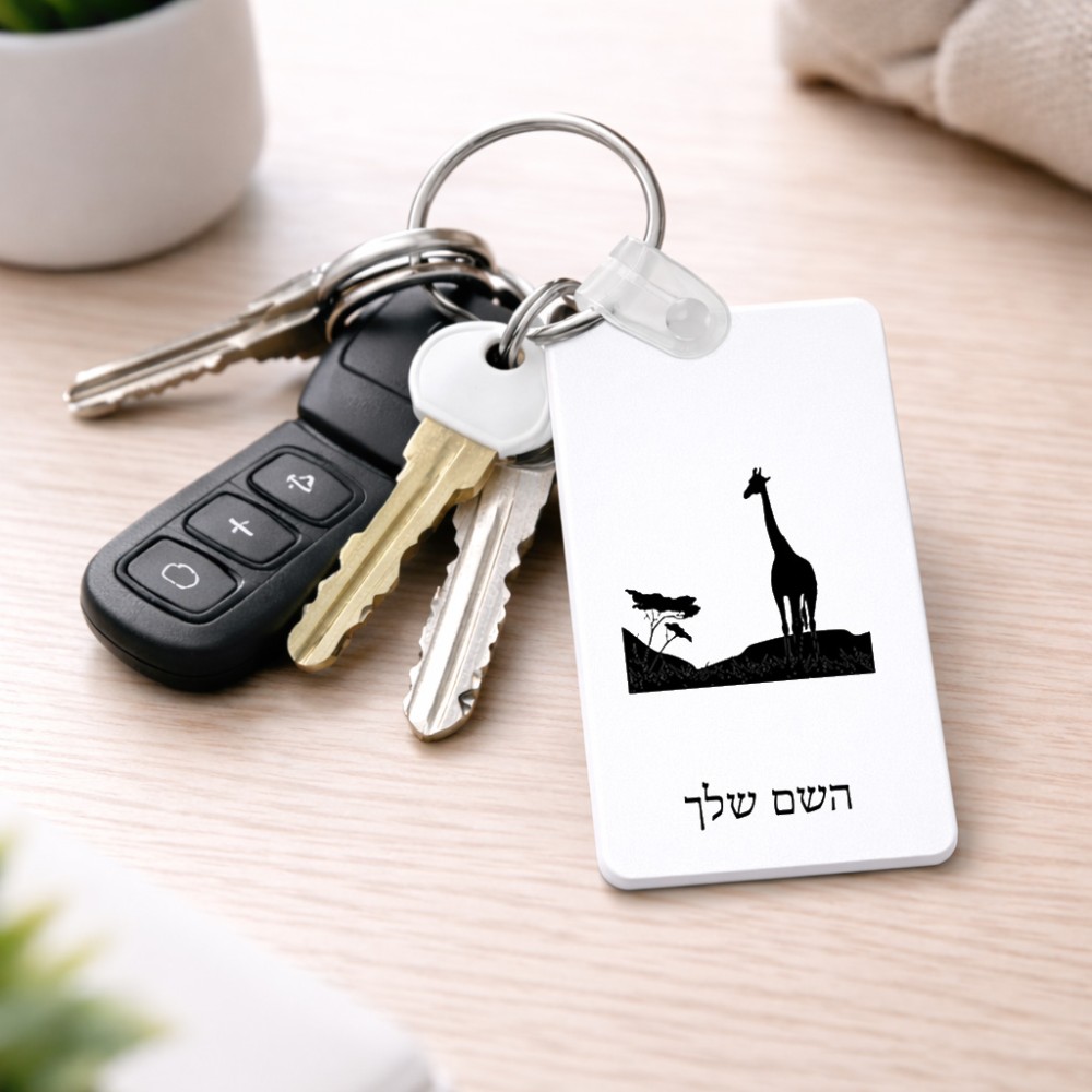 מחזיק מפתחות בצורת מלבן בעיצוב אישי עם השם שלך בעיצוב ג'ירפה באפריקה גודל המחזיק 6 × 4 ס"מ. את השם המבוקש ניתן לציין בהזמנה, אם לא צויין אנחנו ניצור קשר לבירור.