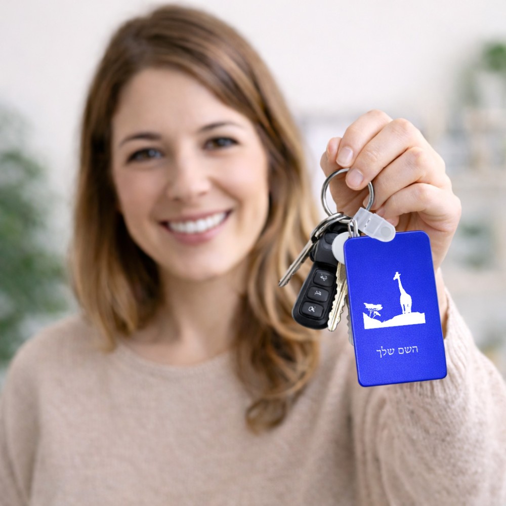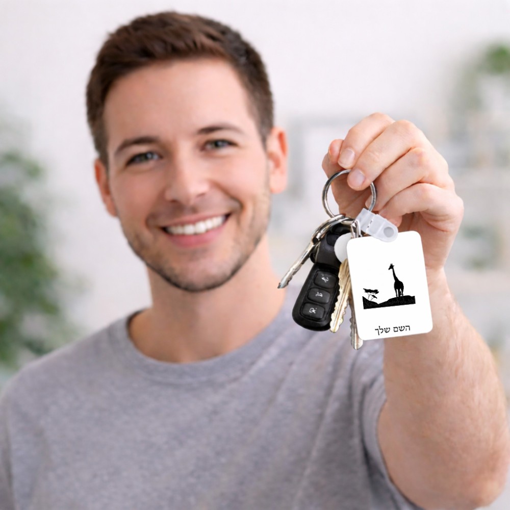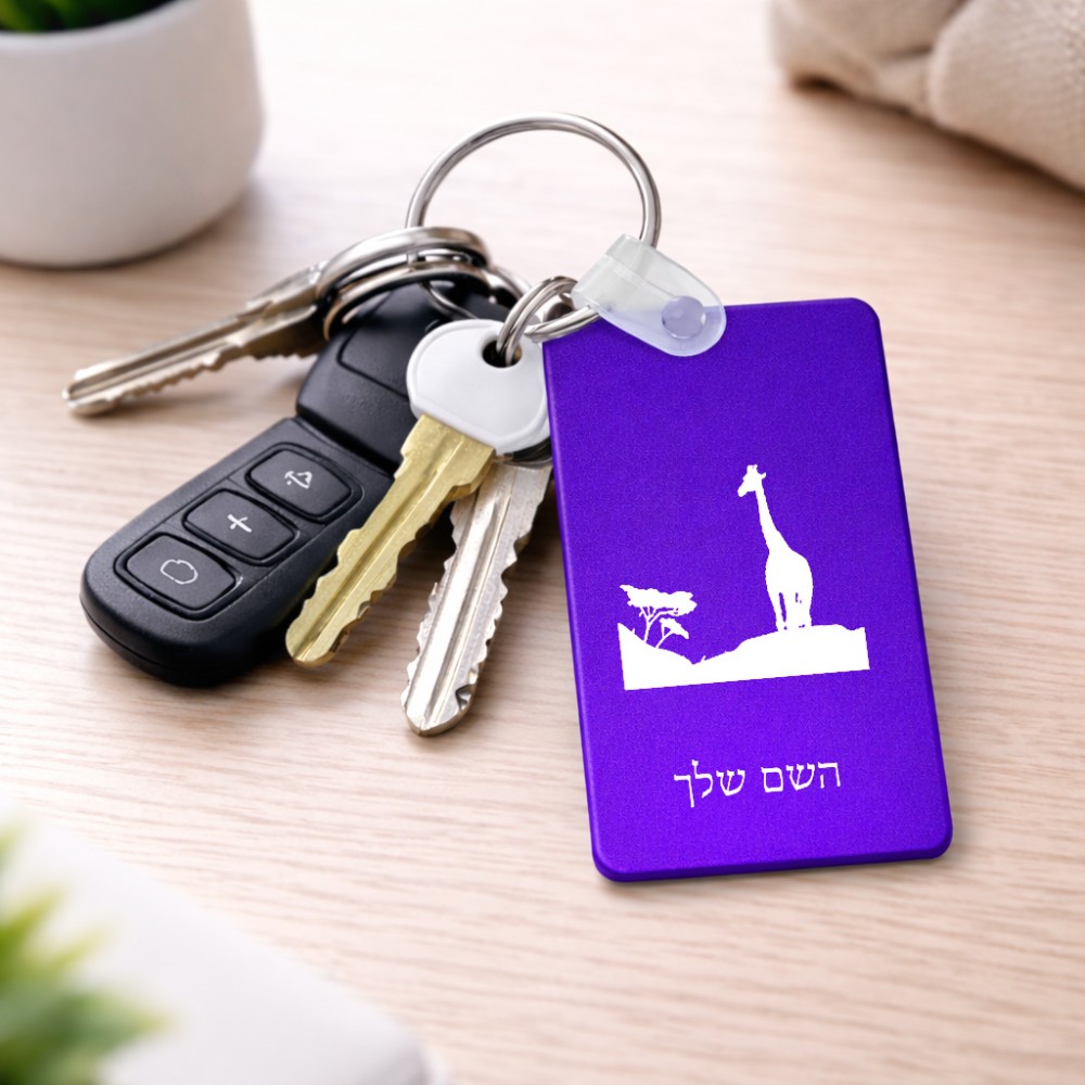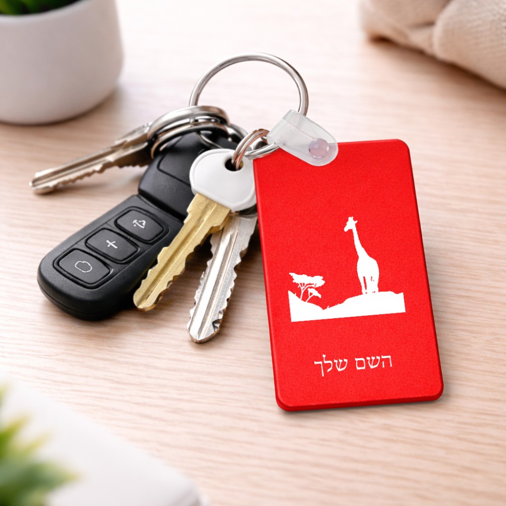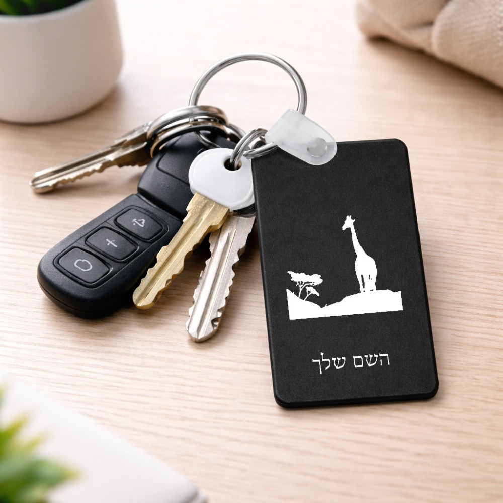 מחזיק מפתחות בצורת מלבן בעיצוב אישי עם השם שלך בעיצוב ג'ירפה באפריקה גודל המחזיק 6 × 4 ס"מ. את השם המבוקש ניתן לציין בהזמנה, אם לא צויין אנחנו ניצור קשר לבירור.