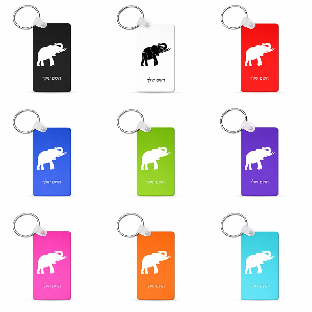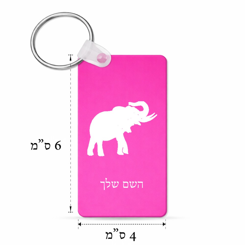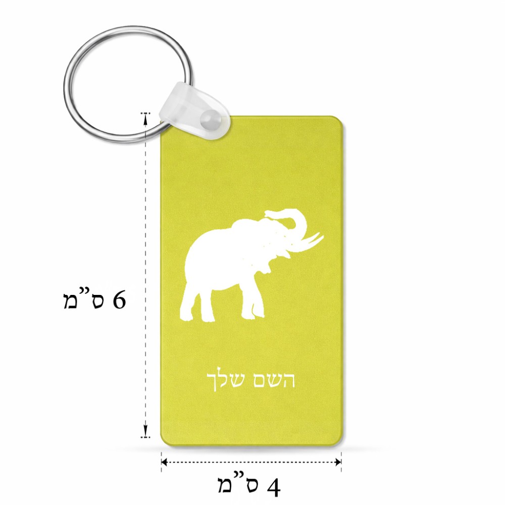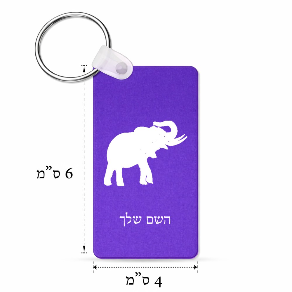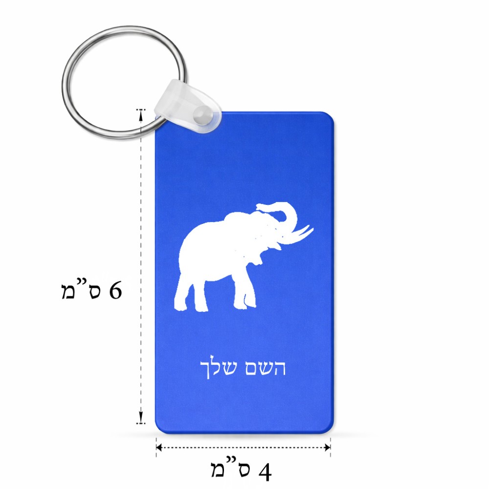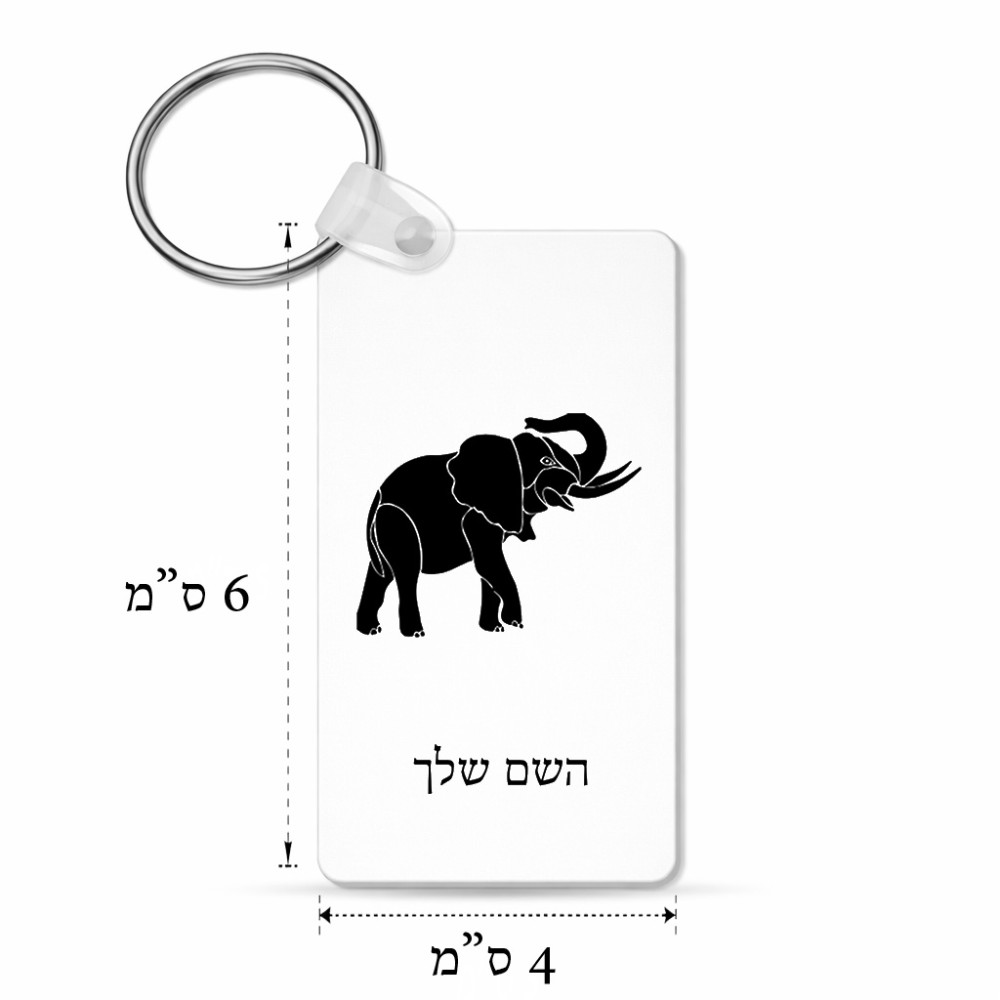 מחזיק מפתחות בצורת מלבן בעיצוב אישי עם השם שלך בעיצוב פיל גודל המחזיק 6 × 4 ס"מ. את השם המבוקש ניתן לציין בהזמנה, אם לא צויין אנחנו ניצור קשר לבירור.