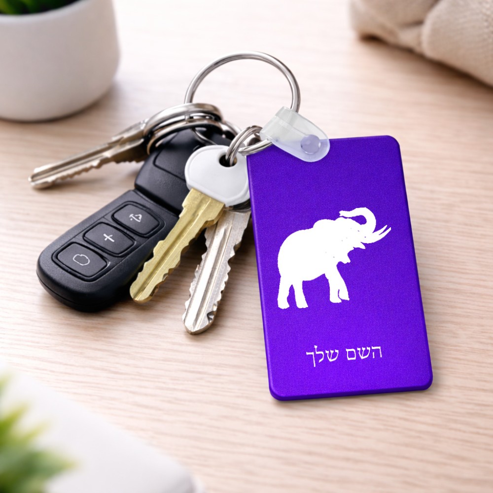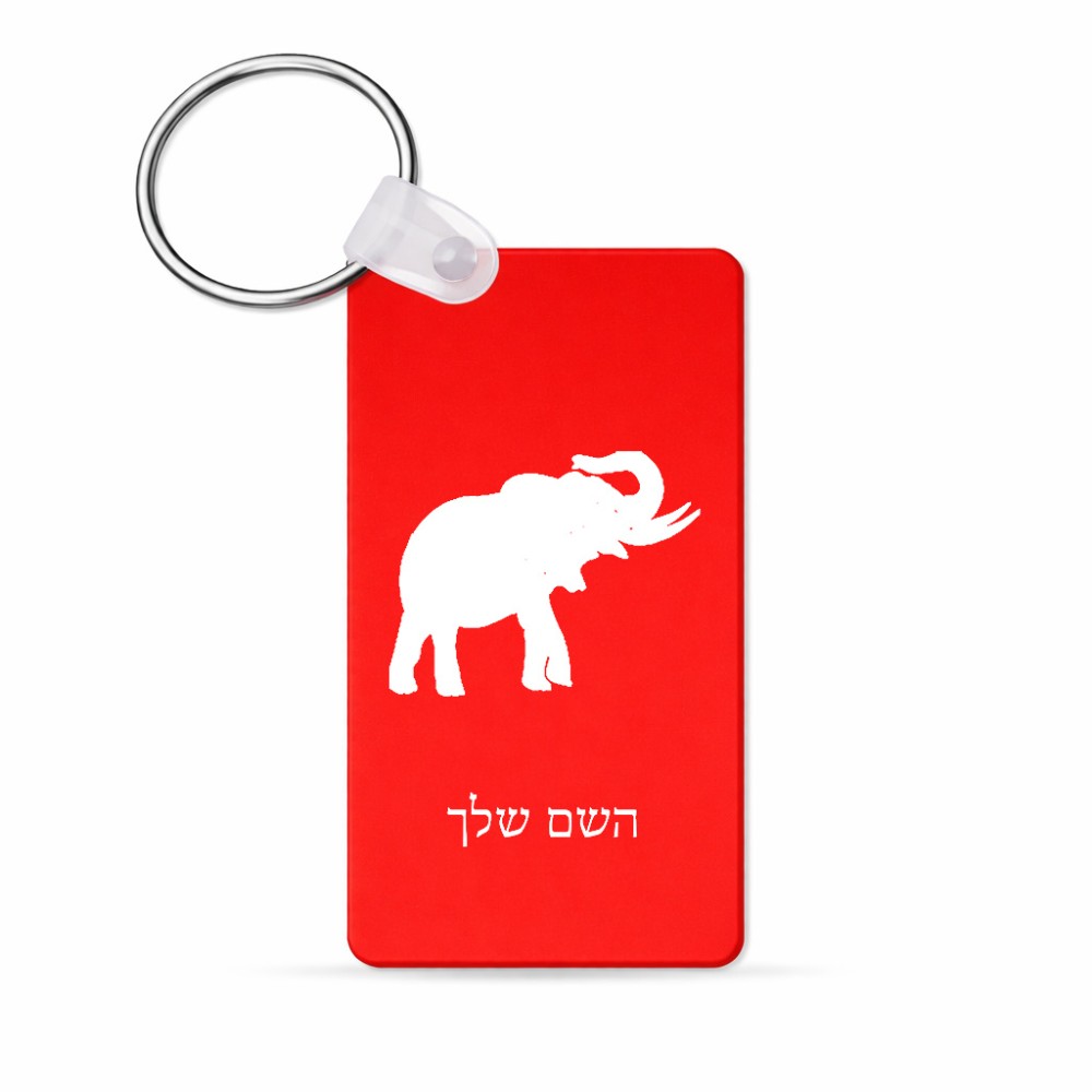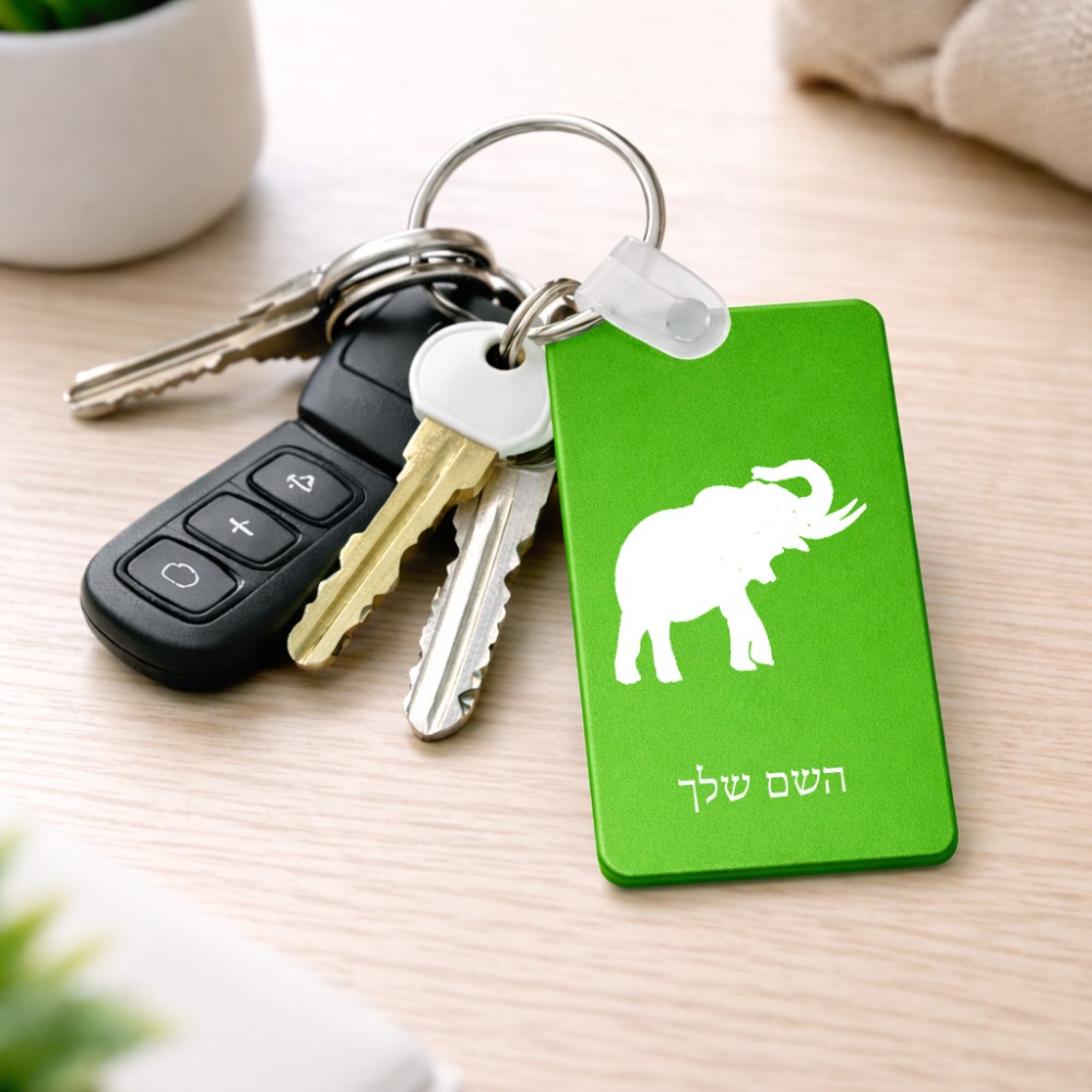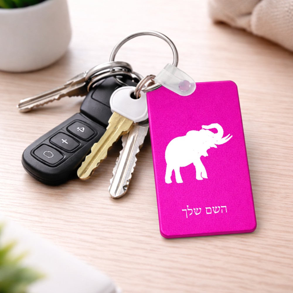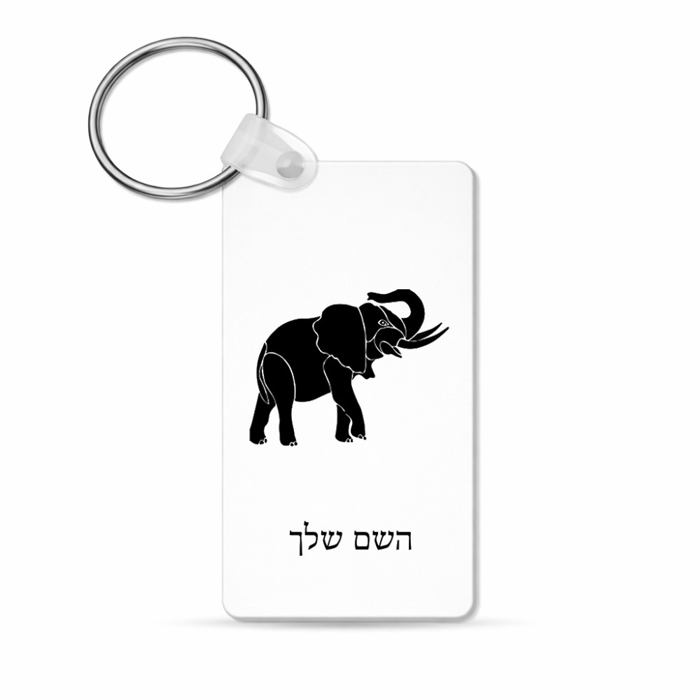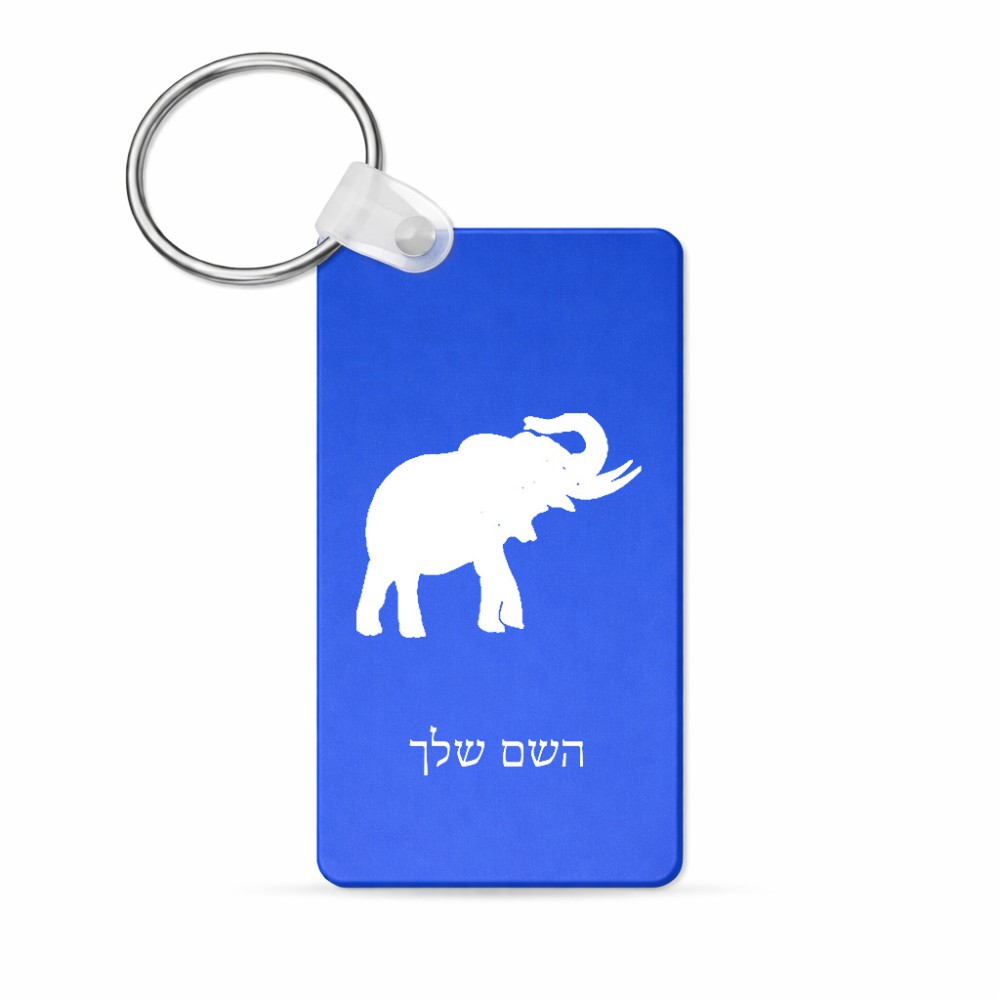 מחזיק מפתחות בצורת מלבן בעיצוב אישי עם השם שלך בעיצוב פיל גודל המחזיק 6 × 4 ס"מ. את השם המבוקש ניתן לציין בהזמנה, אם לא צויין אנחנו ניצור קשר לבירור.