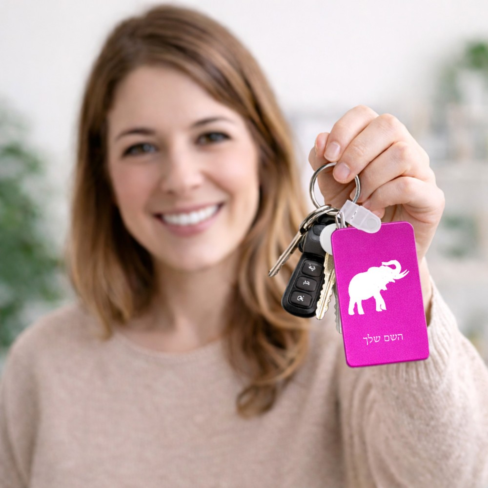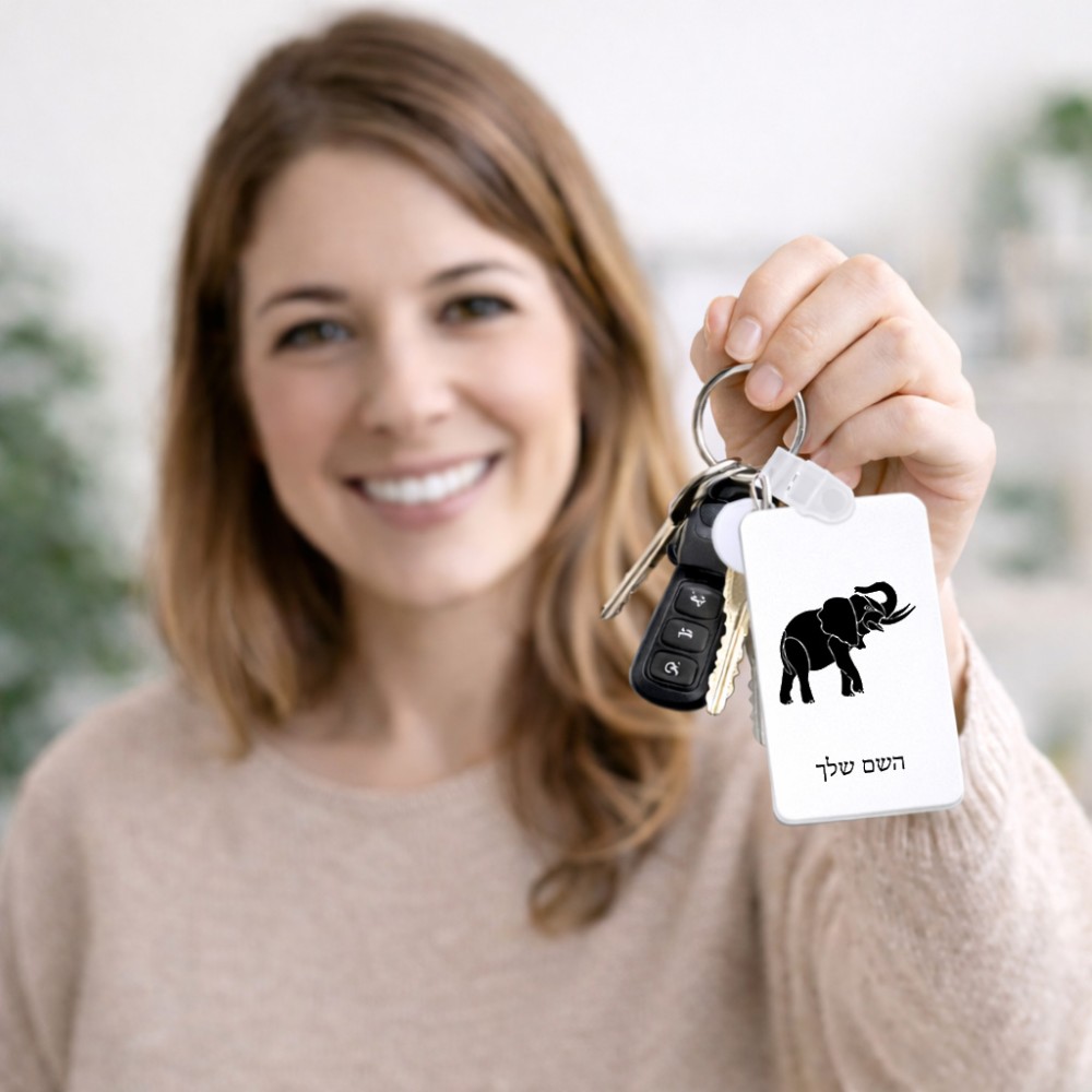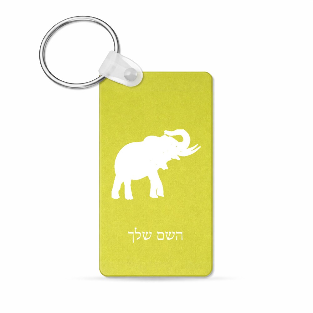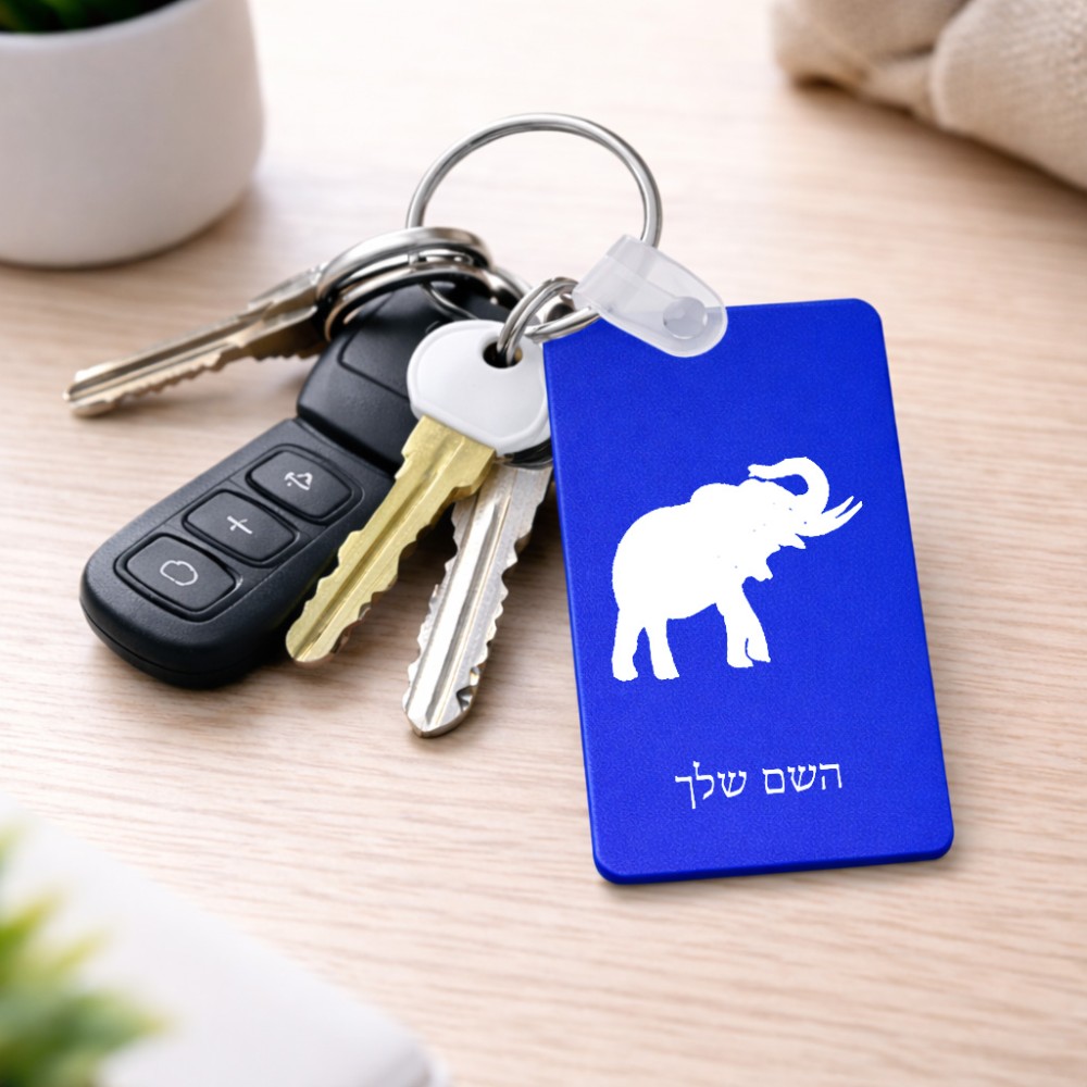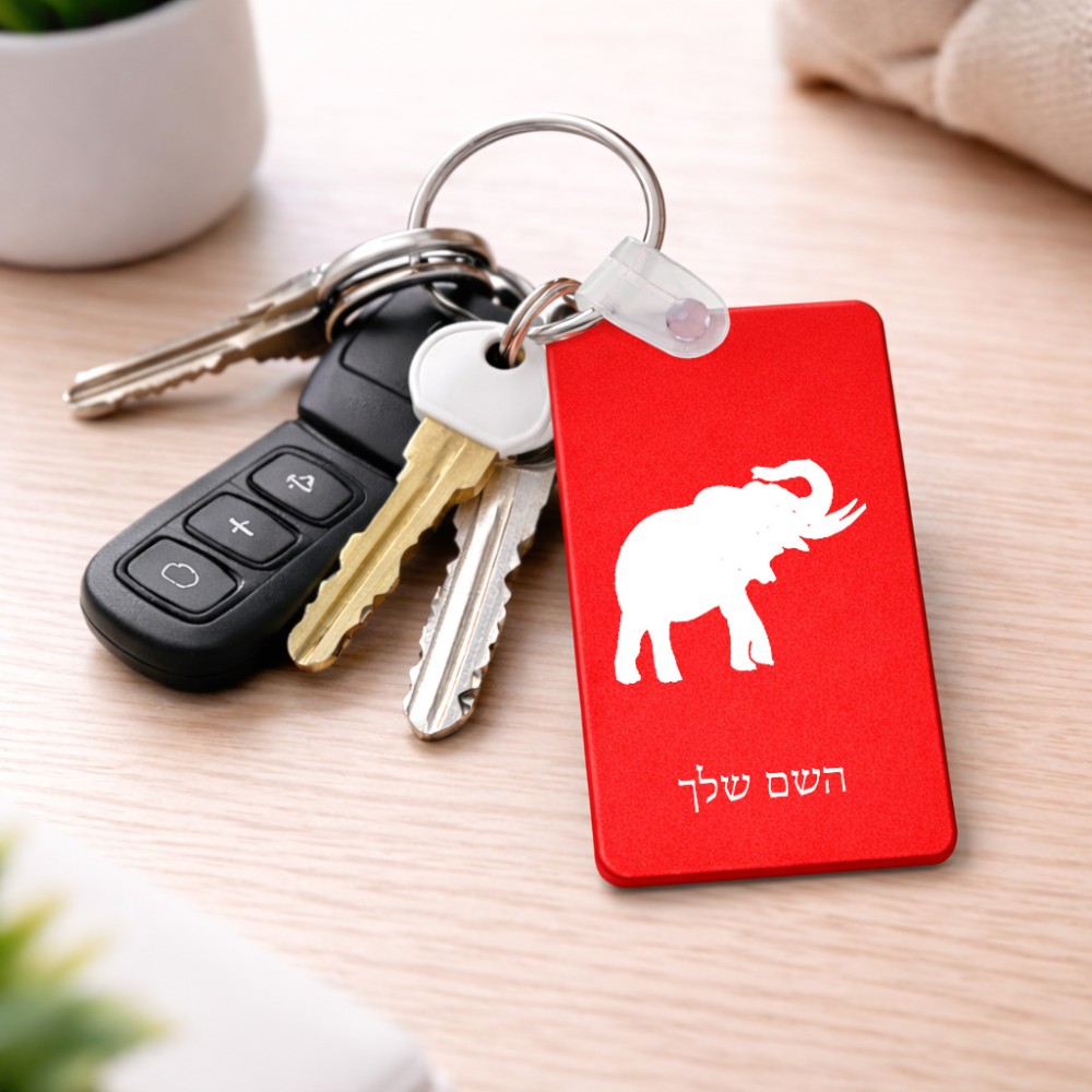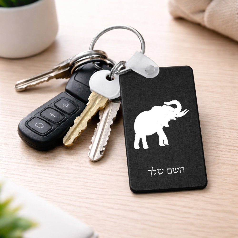 מחזיק מפתחות בצורת מלבן בעיצוב אישי עם השם שלך בעיצוב פיל גודל המחזיק 6 × 4 ס"מ. את השם המבוקש ניתן לציין בהזמנה, אם לא צויין אנחנו ניצור קשר לבירור.