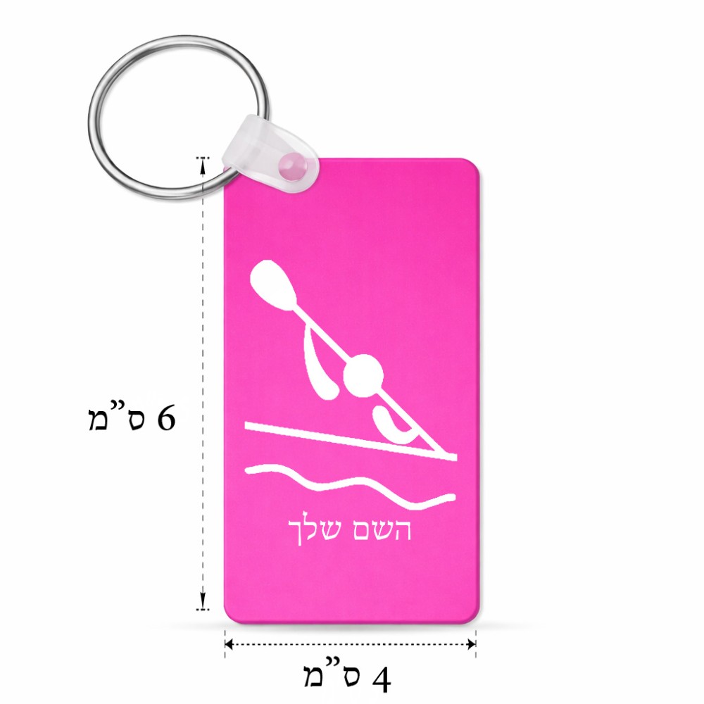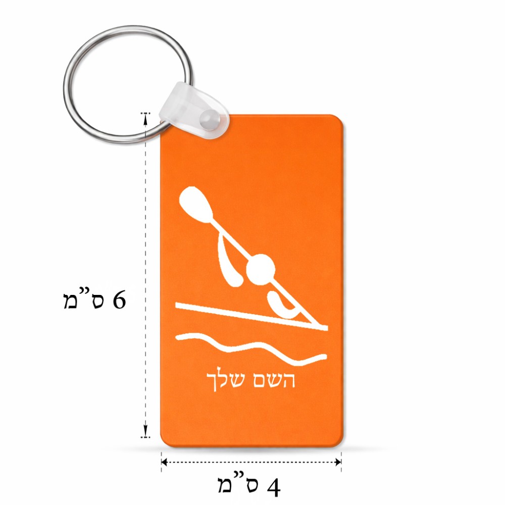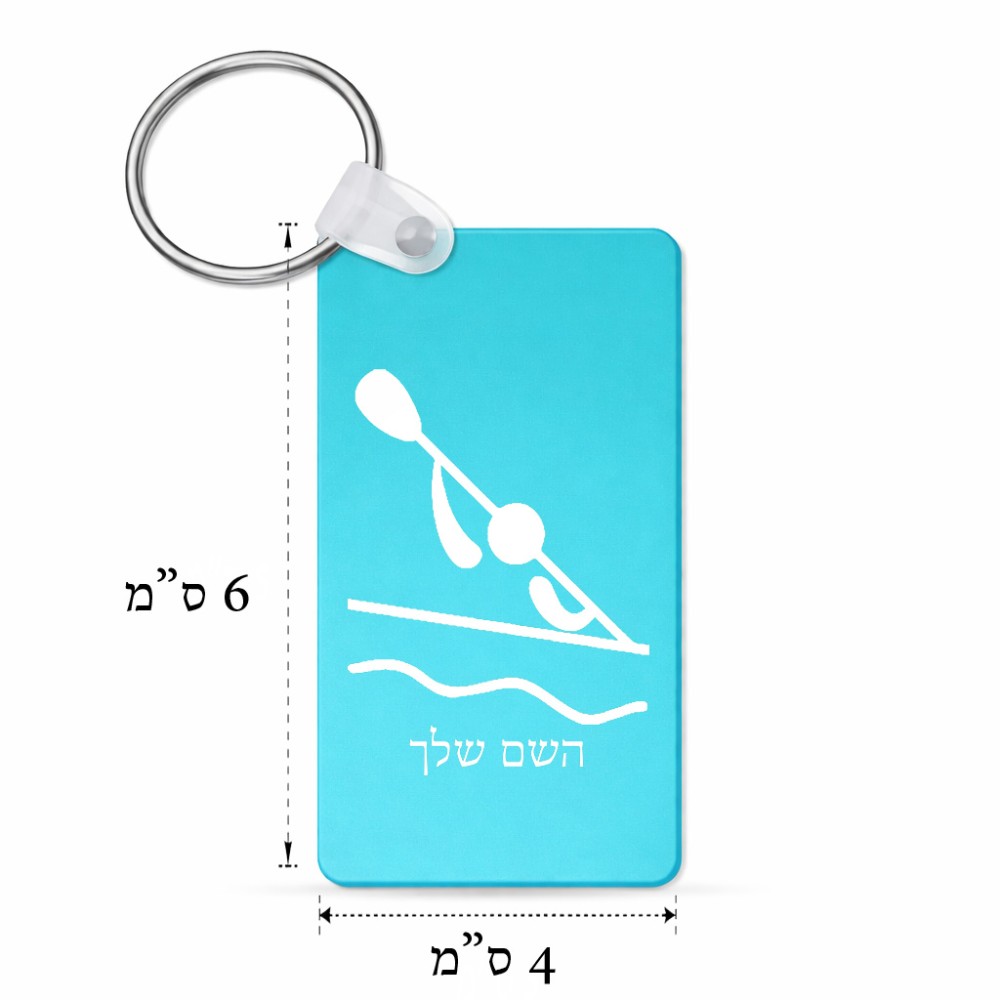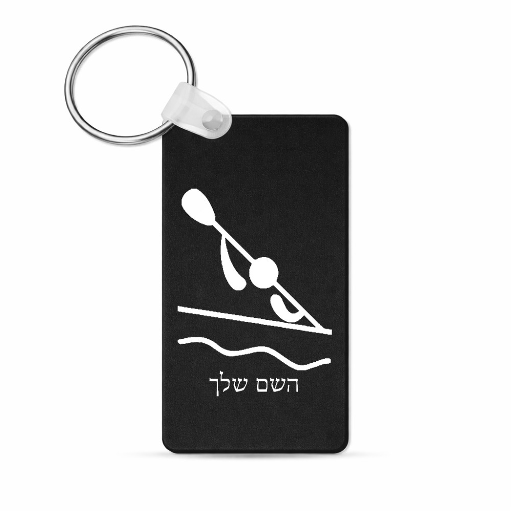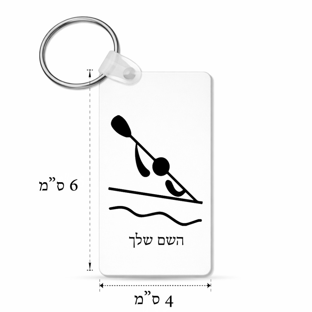 מחזיק מפתחות בצורת מלבן בעיצוב אישי עם השם שלך בעיצוב קיאק אולימפי גודל המחזיק 6 × 4 ס"מ. את השם המבוקש ניתן לציין בהזמנה, אם לא צויין אנחנו ניצור קשר לבירור.