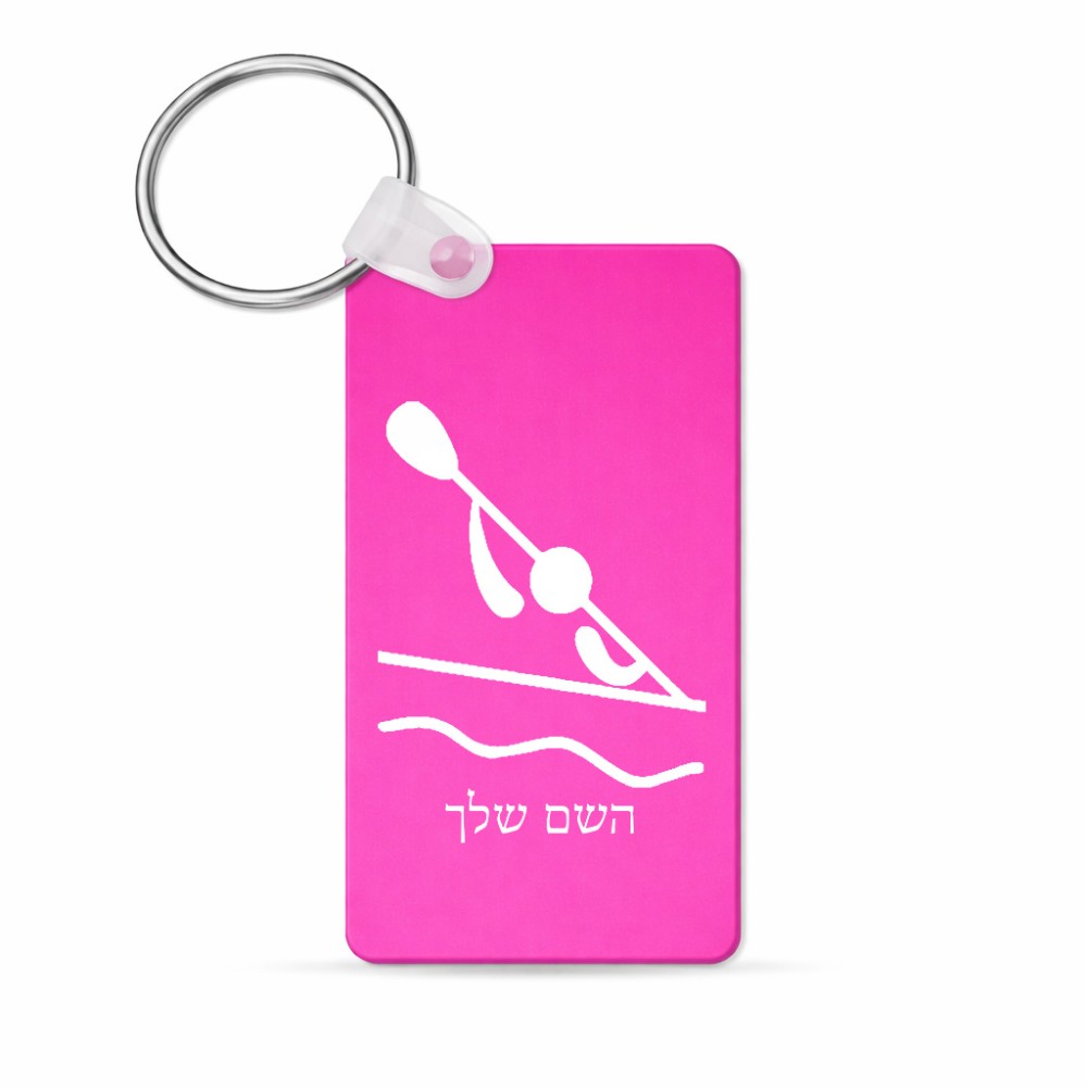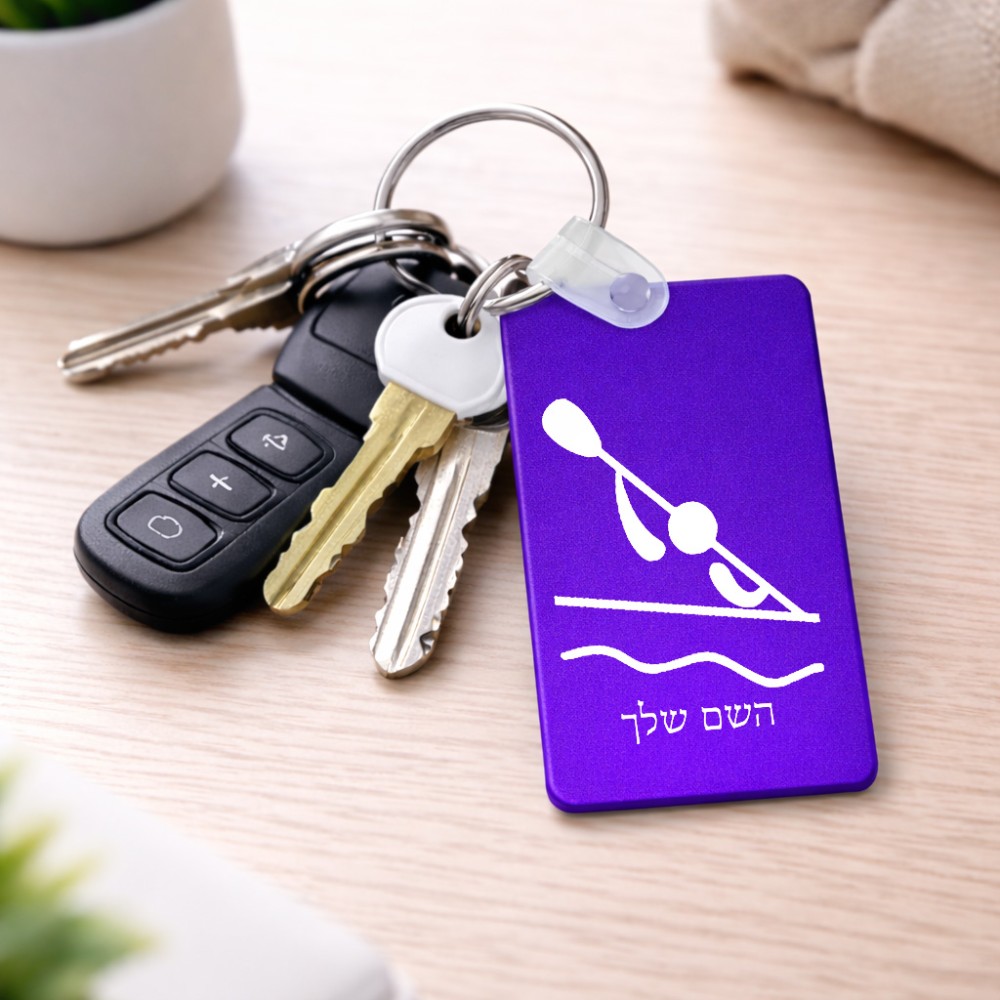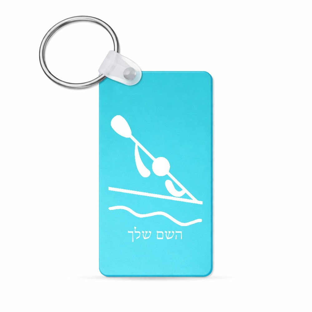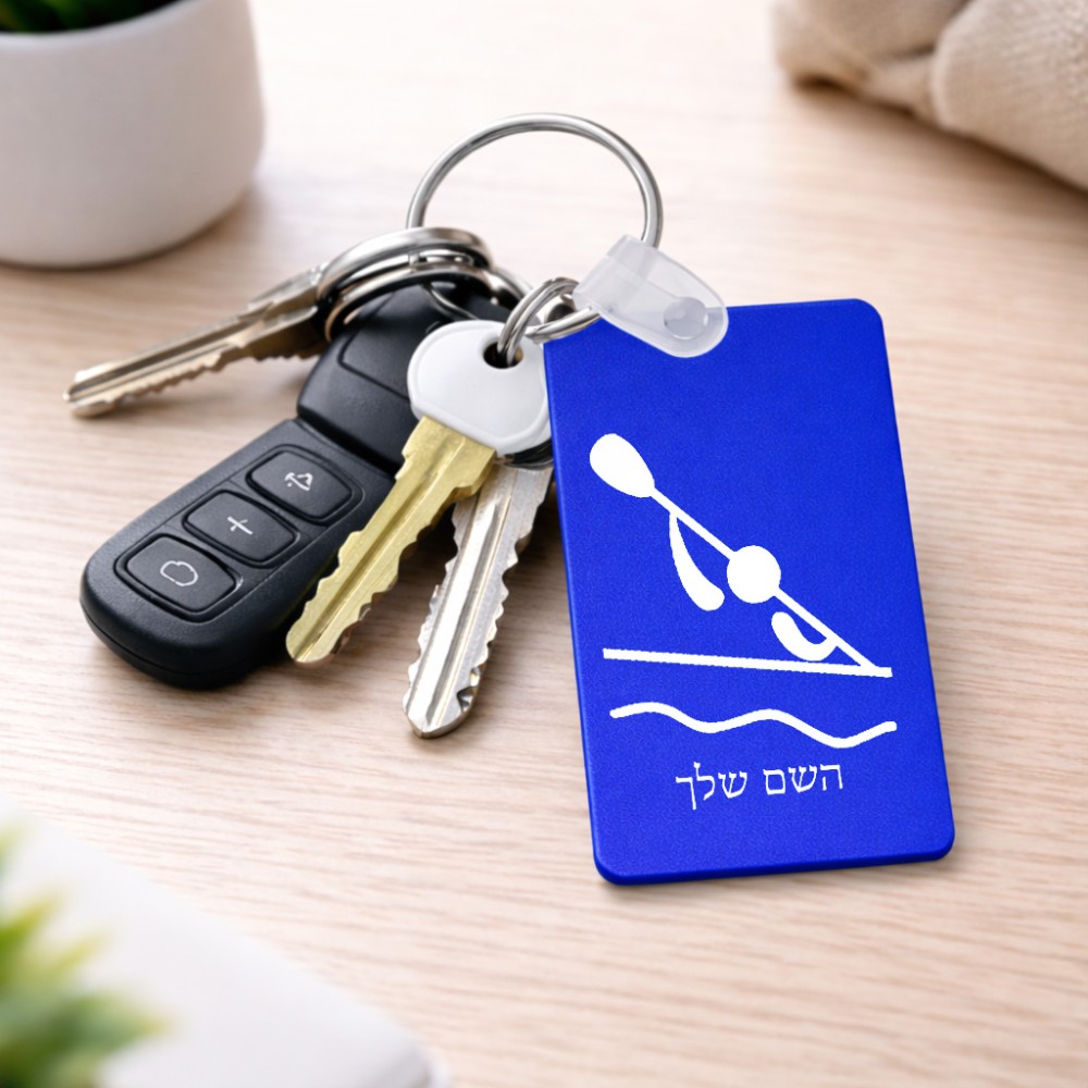 מחזיק מפתחות בצורת מלבן בעיצוב אישי עם השם שלך בעיצוב קיאק אולימפי גודל המחזיק 6 × 4 ס"מ. את השם המבוקש ניתן לציין בהזמנה, אם לא צויין אנחנו ניצור קשר לבירור.