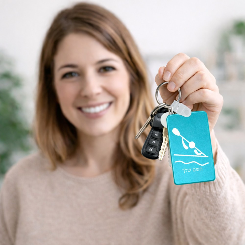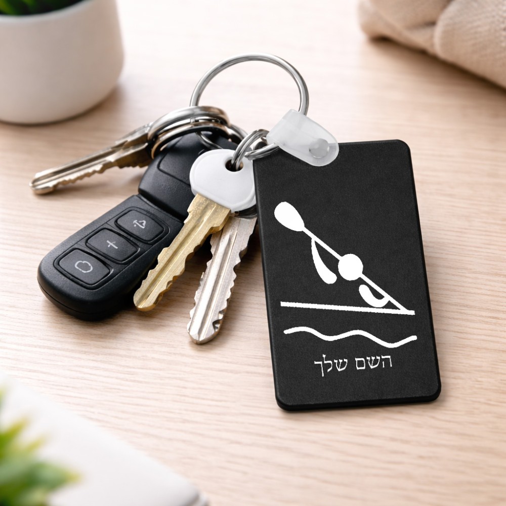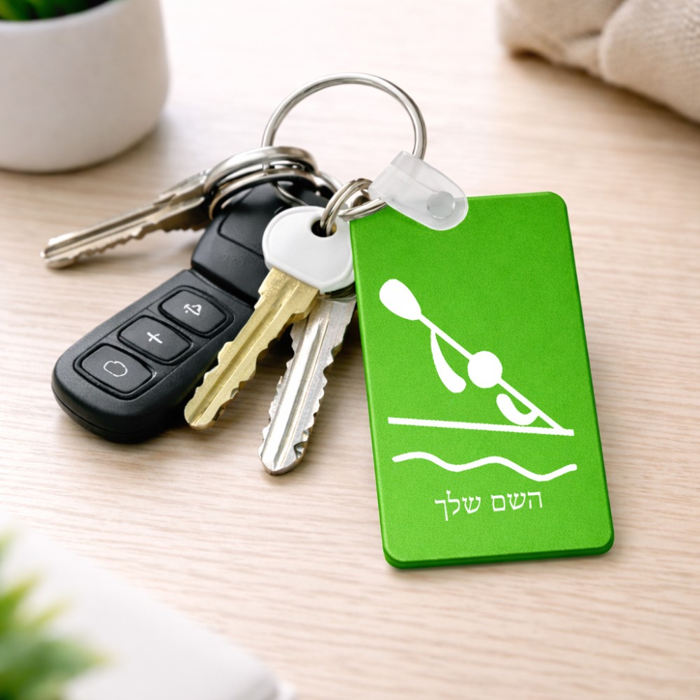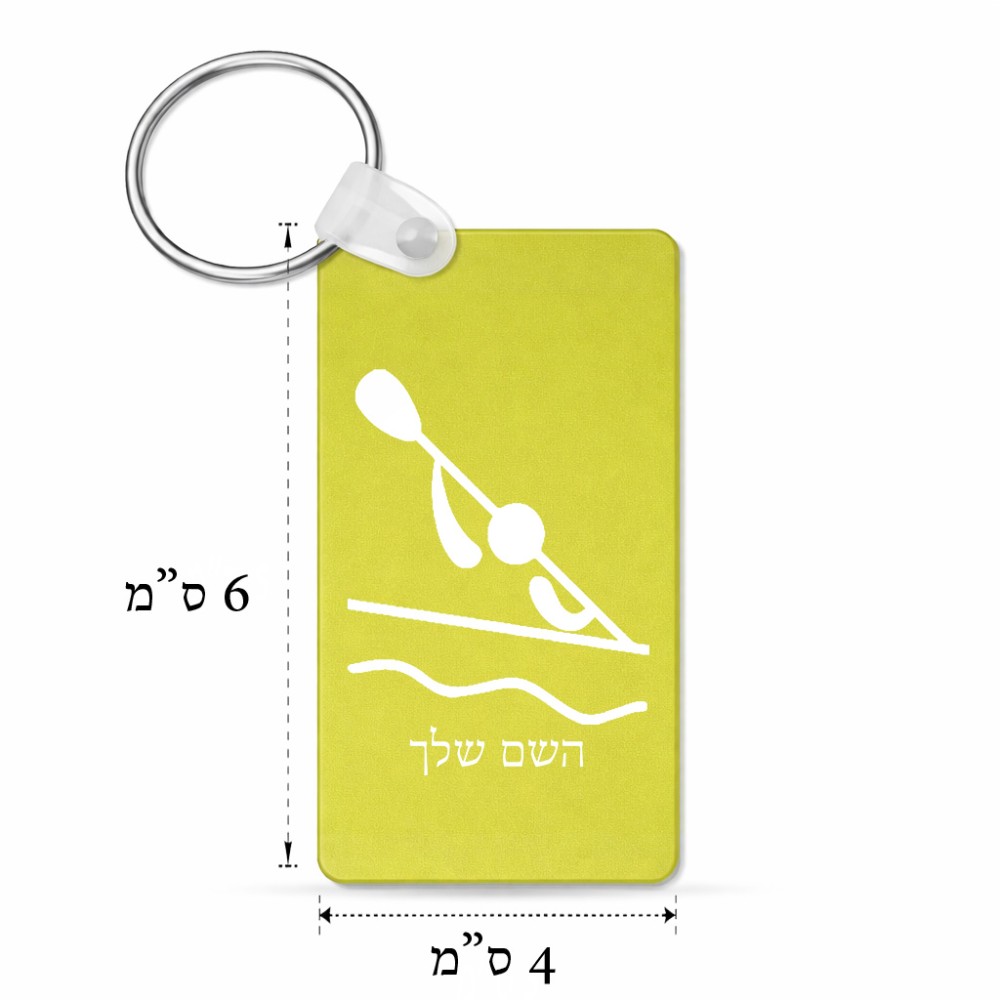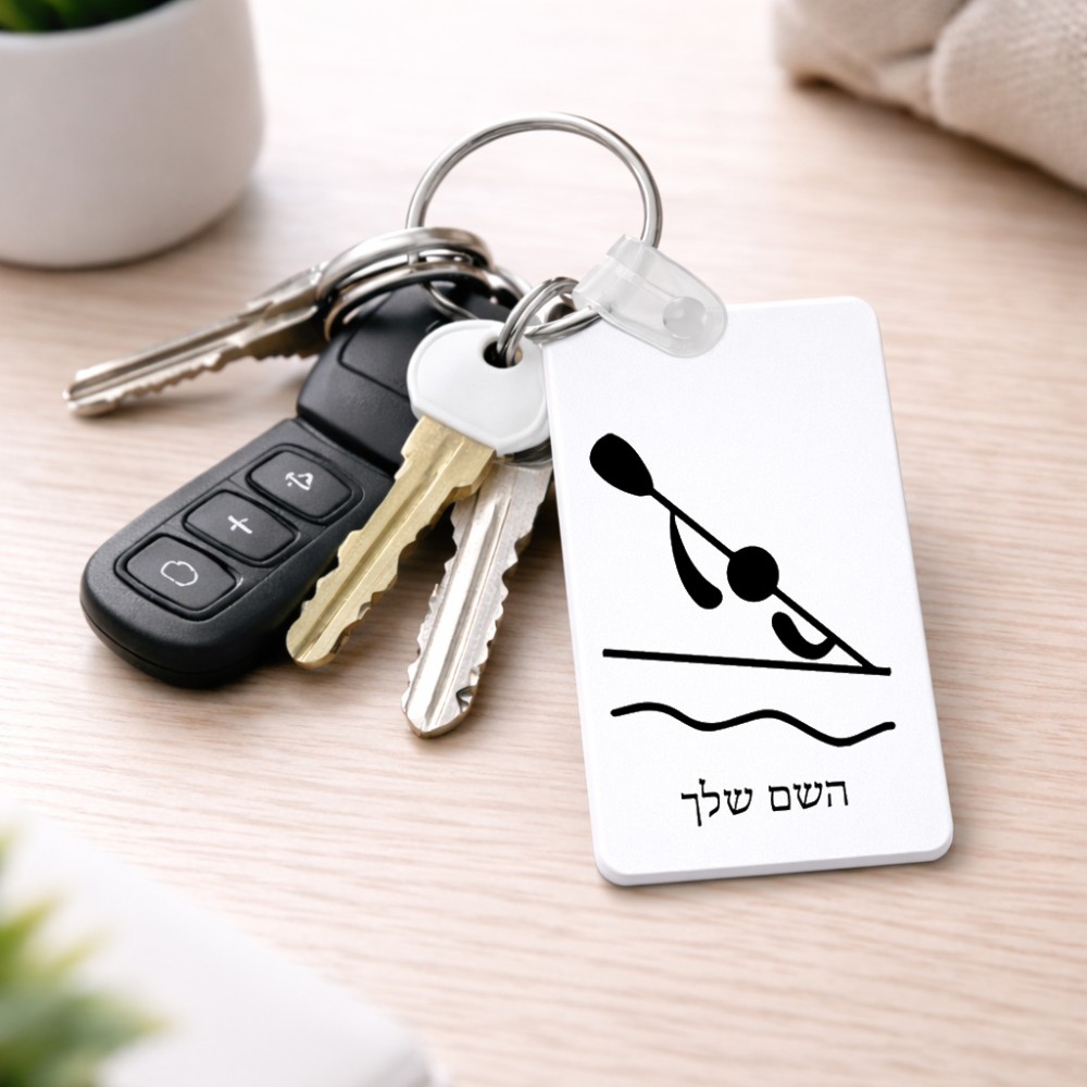 מחזיק מפתחות בצורת מלבן בעיצוב אישי עם השם שלך בעיצוב קיאק אולימפי גודל המחזיק 6 × 4 ס"מ. את השם המבוקש ניתן לציין בהזמנה, אם לא צויין אנחנו ניצור קשר לבירור.