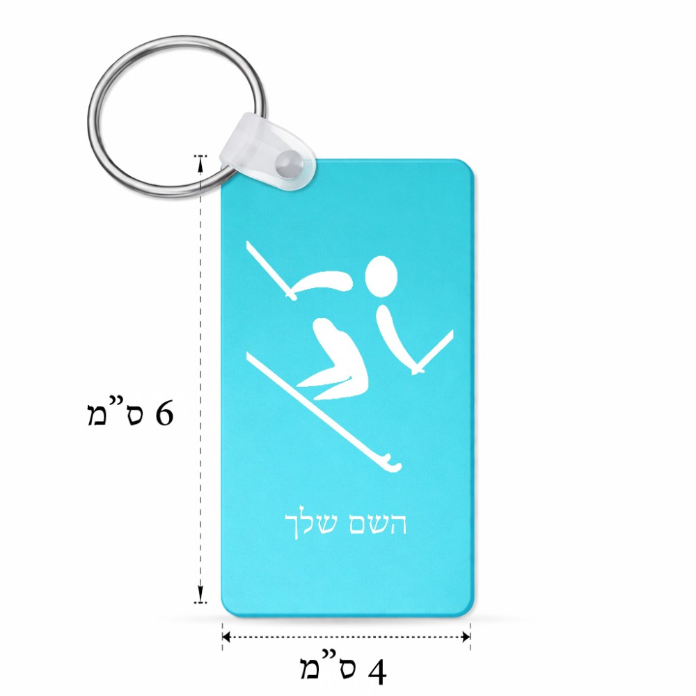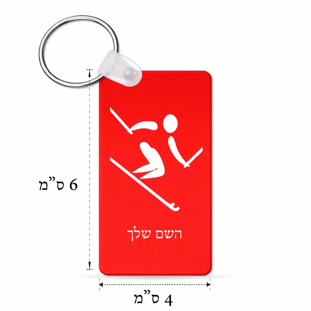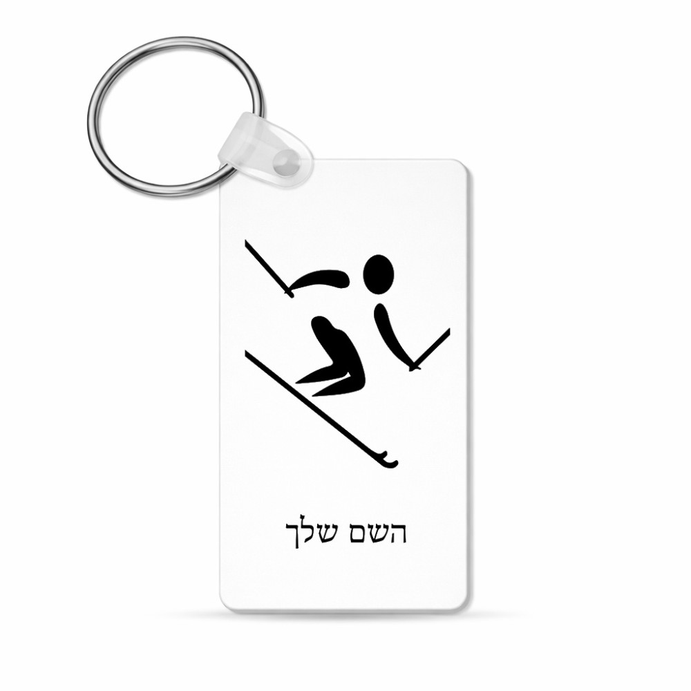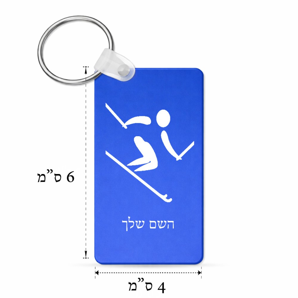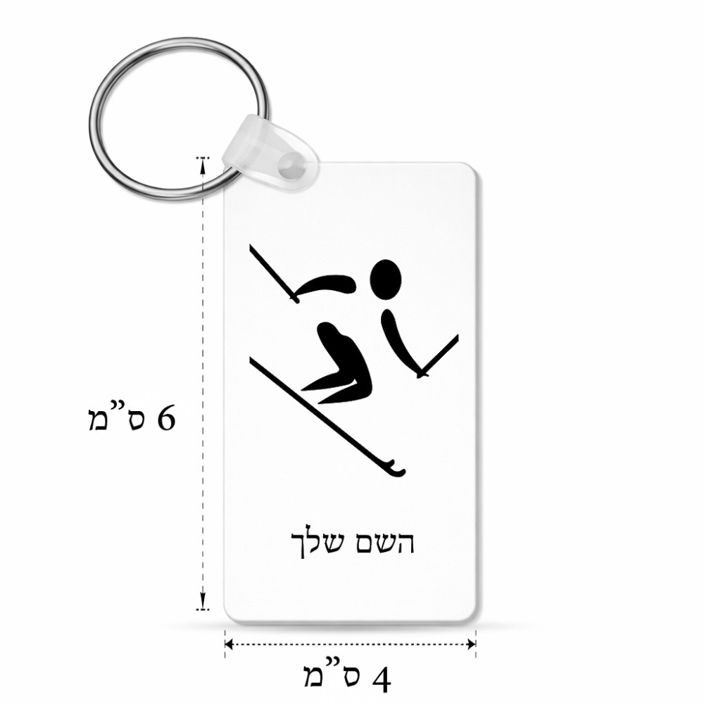 מחזיק מפתחות בצורת מלבן בעיצוב אישי עם השם שלך בעיצוב סקי אולימפי גודל המחזיק 6 × 4 ס"מ. את השם המבוקש ניתן לציין בהזמנה, אם לא צויין אנחנו ניצור קשר לבירור.