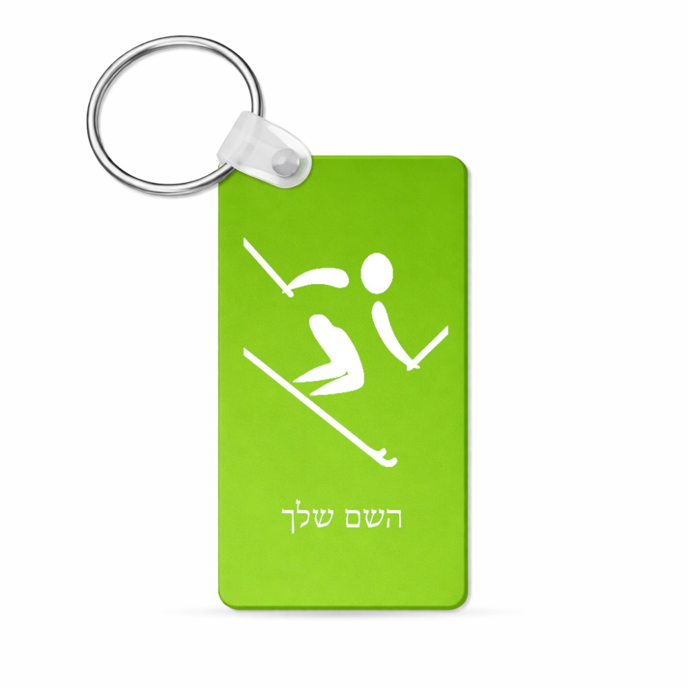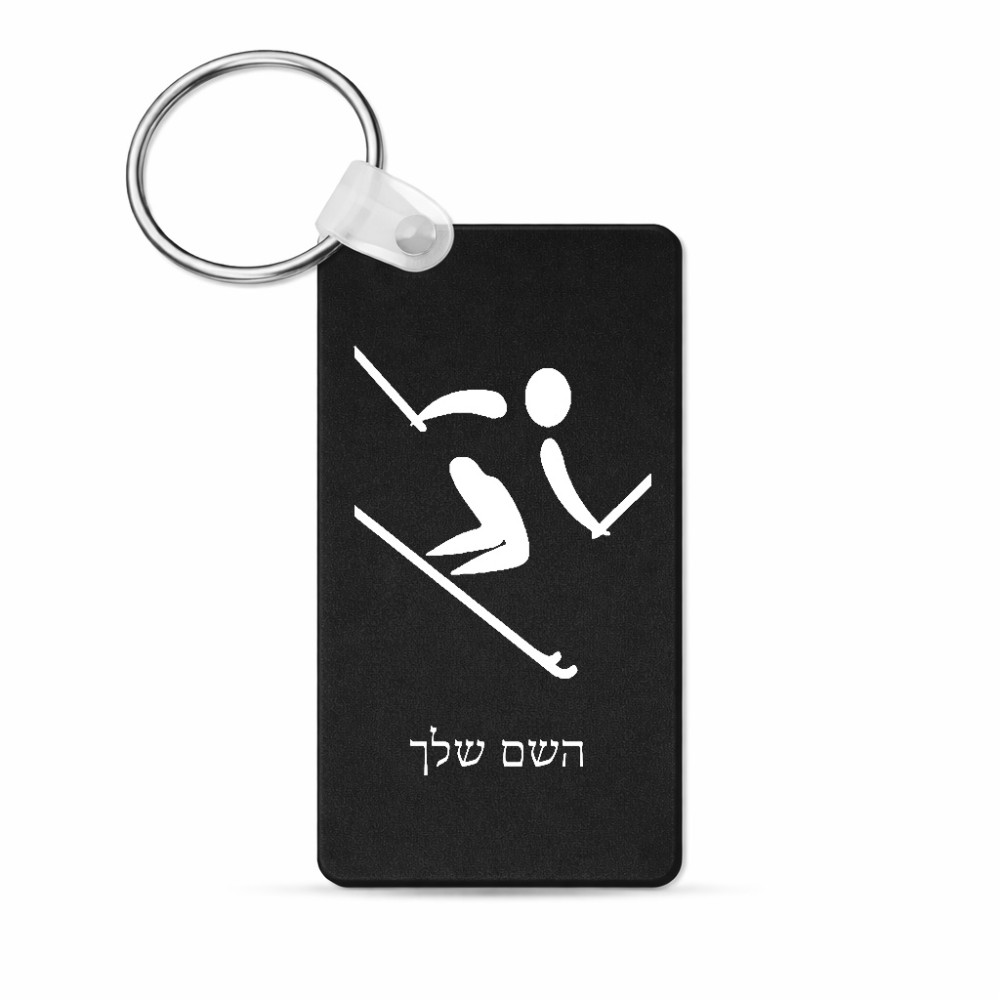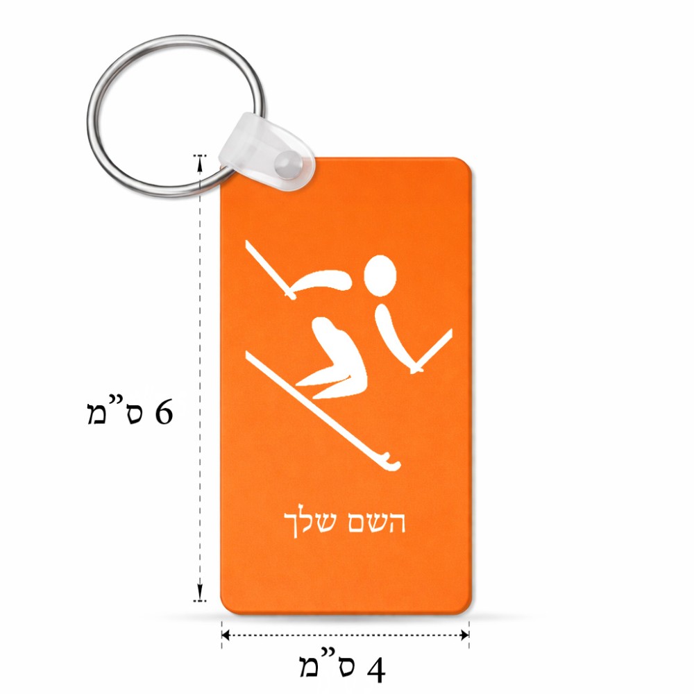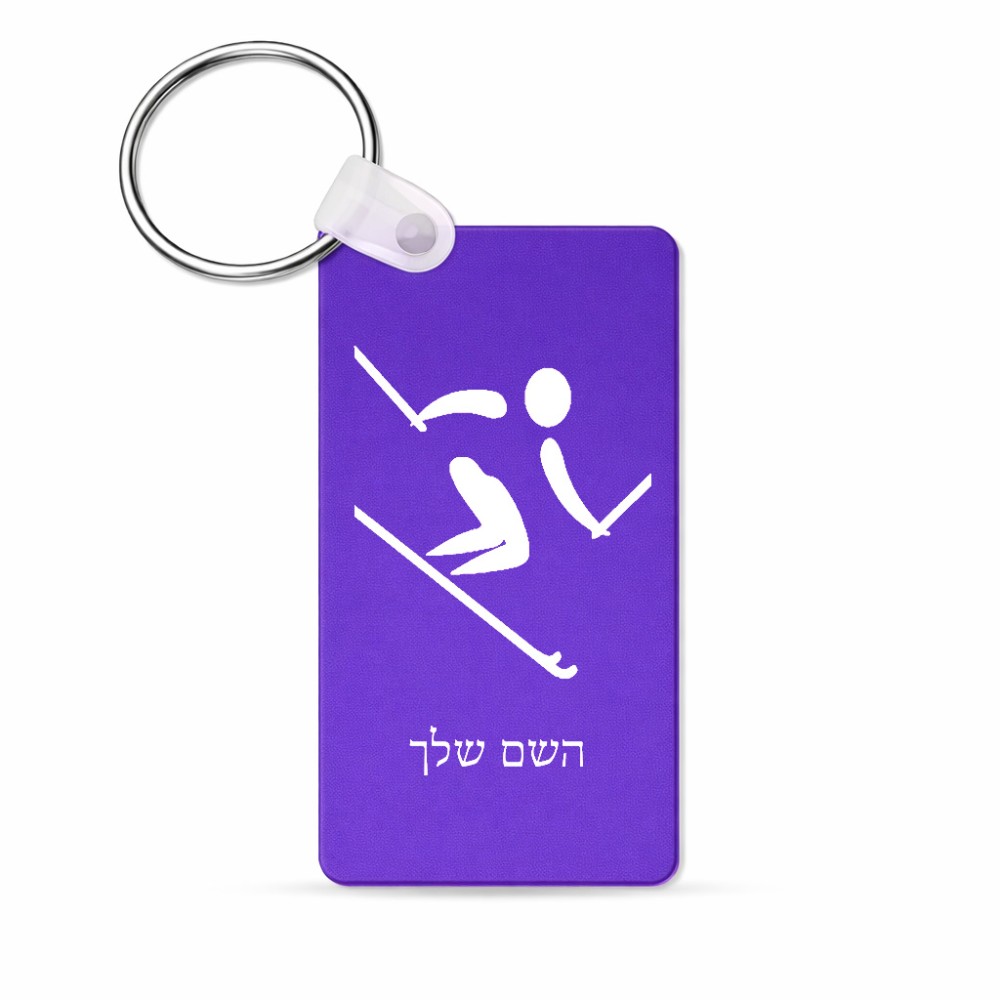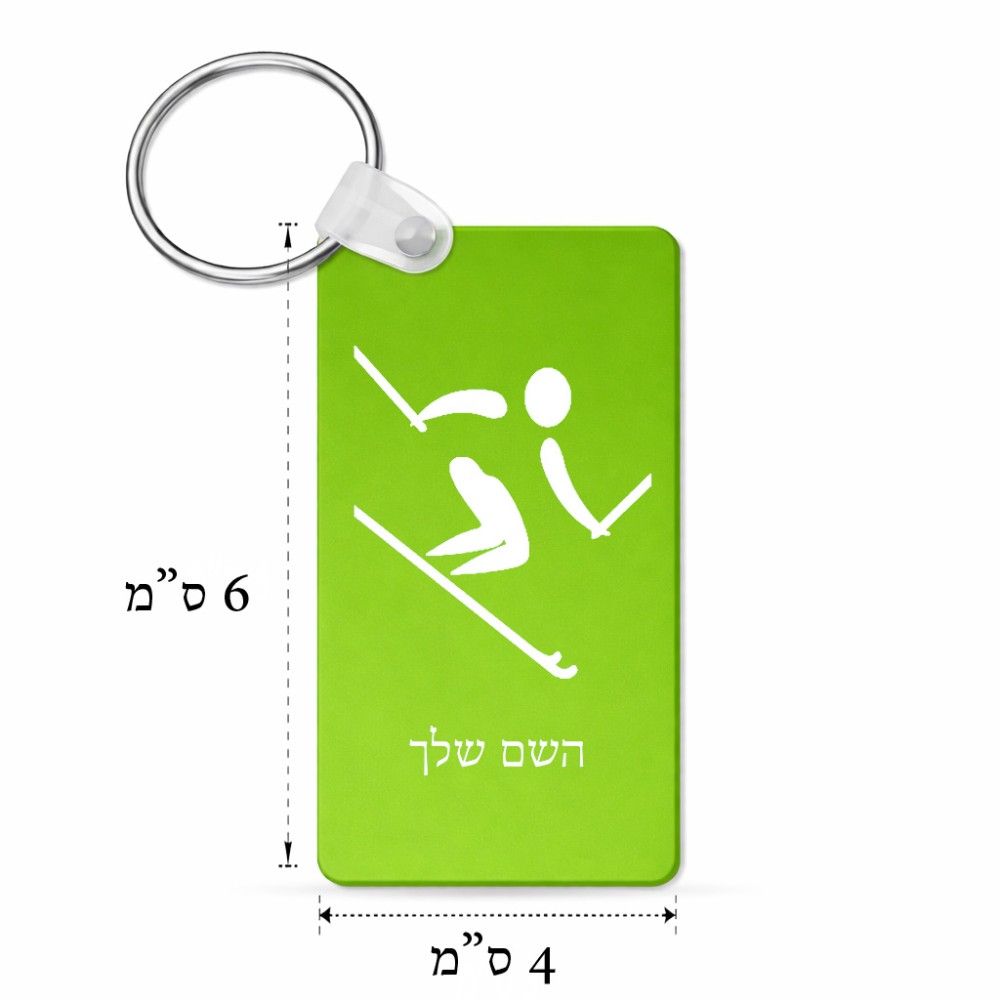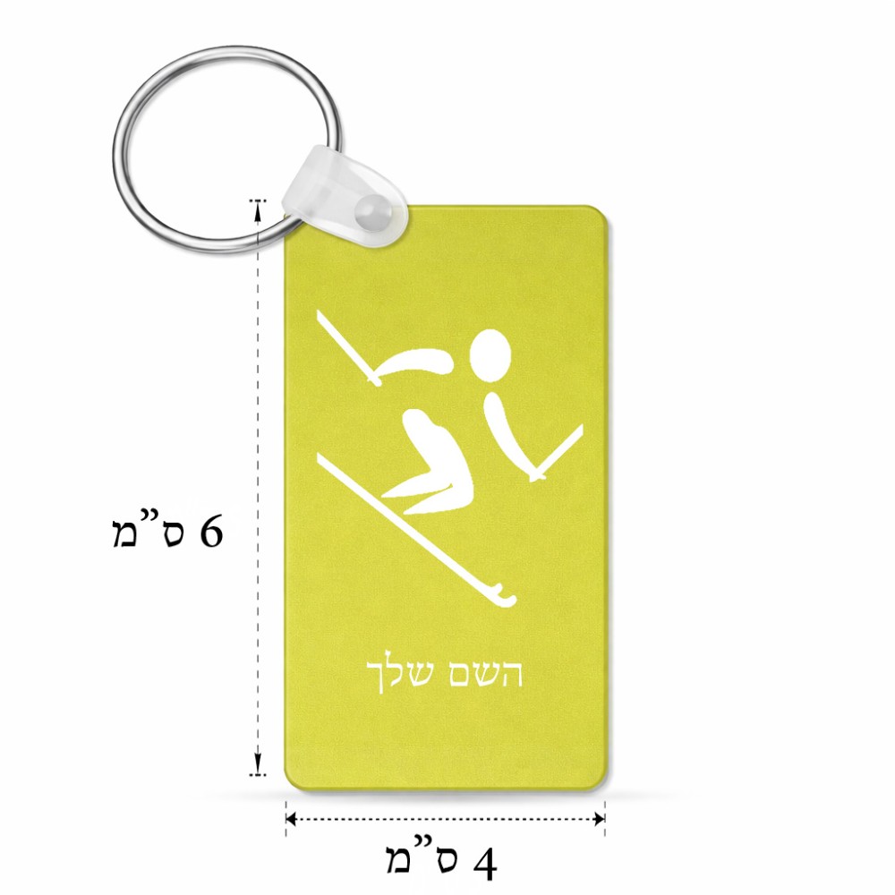 מחזיק מפתחות בצורת מלבן בעיצוב אישי עם השם שלך בעיצוב סקי אולימפי גודל המחזיק 6 × 4 ס"מ. את השם המבוקש ניתן לציין בהזמנה, אם לא צויין אנחנו ניצור קשר לבירור.