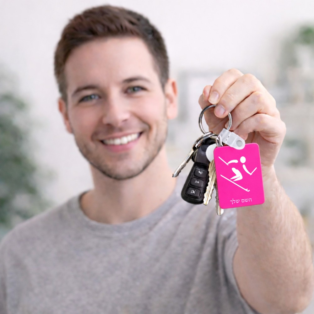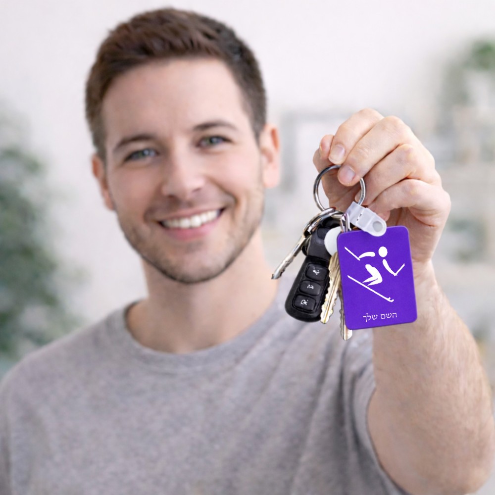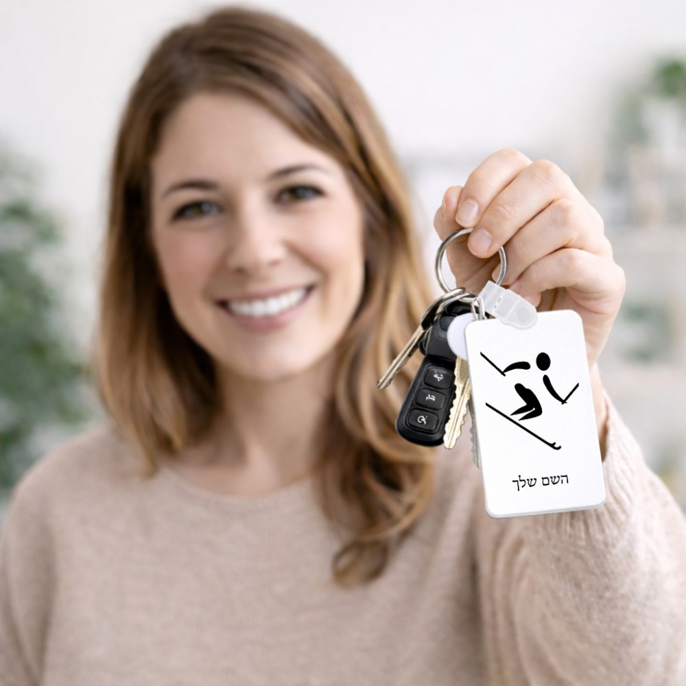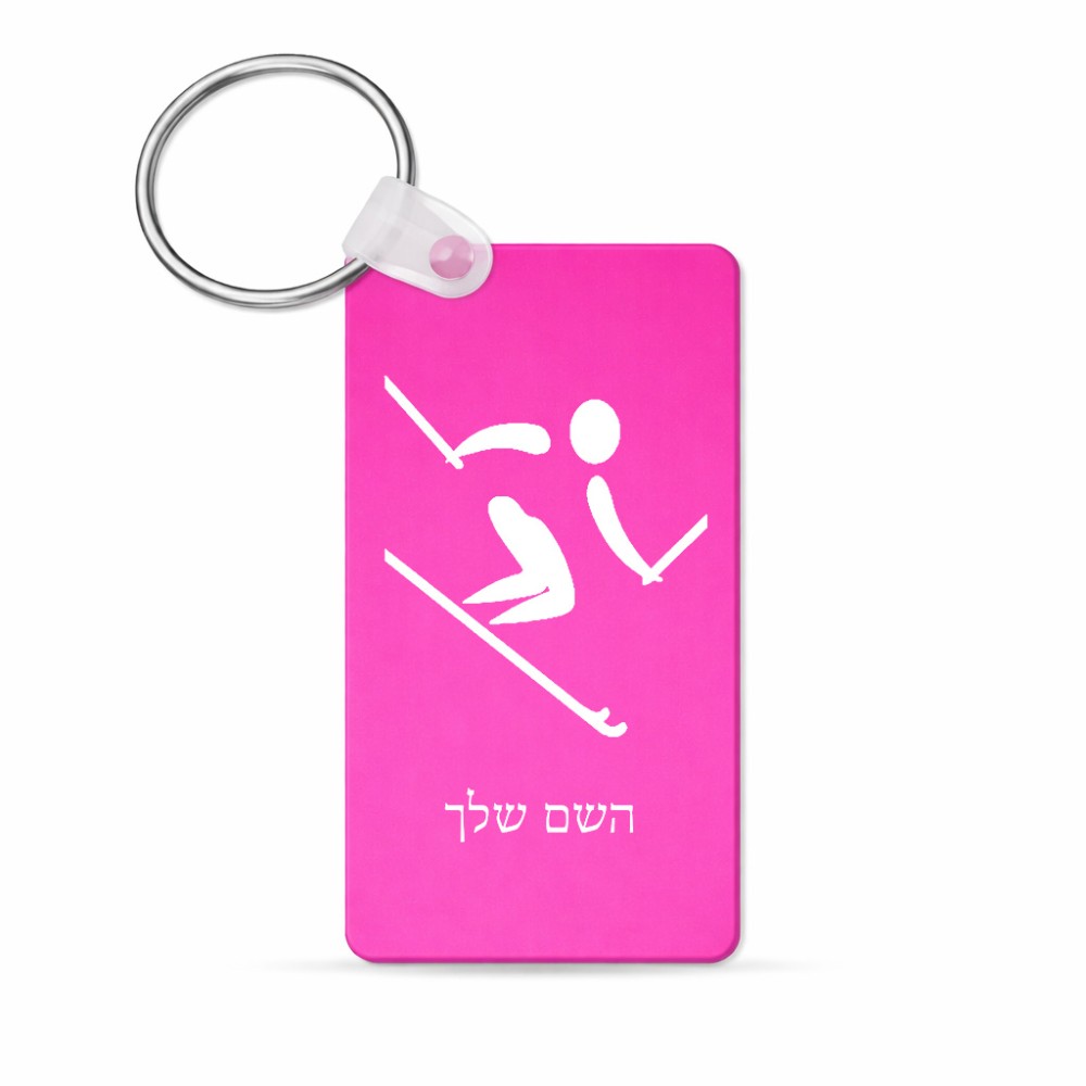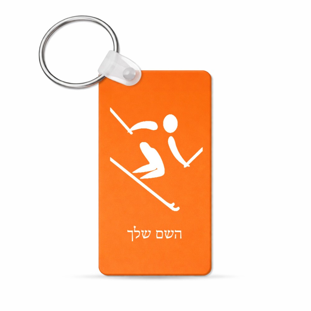 מחזיק מפתחות בצורת מלבן בעיצוב אישי עם השם שלך בעיצוב סקי אולימפי גודל המחזיק 6 × 4 ס"מ. את השם המבוקש ניתן לציין בהזמנה, אם לא צויין אנחנו ניצור קשר לבירור.