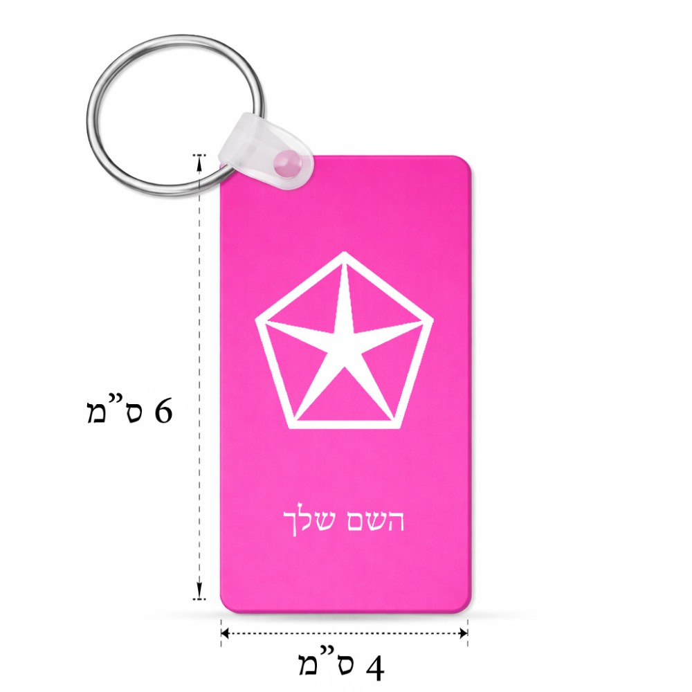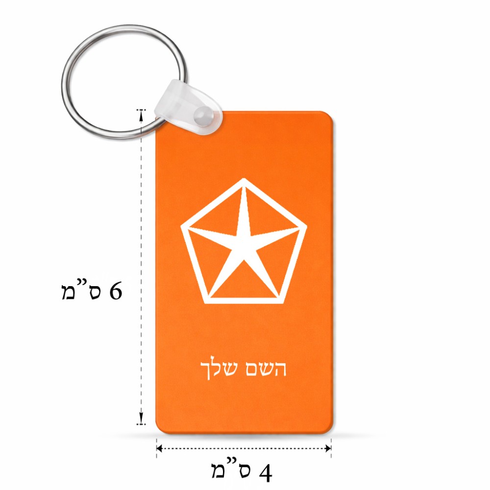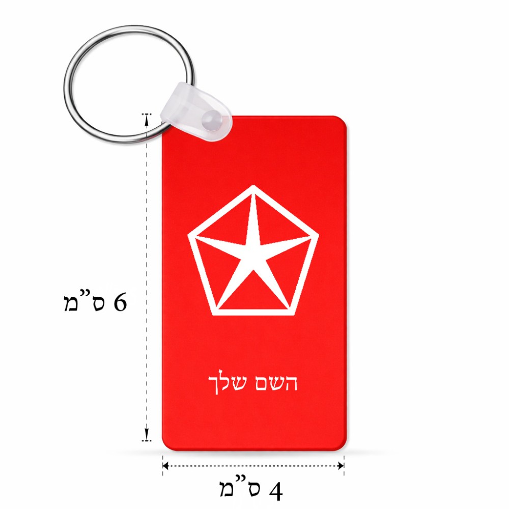 מחזיק מפתחות בצורת מלבן בעיצוב אישי עם השם שלך בעיצוב קרייזלר גודל המחזיק 6 × 4 ס"מ. את השם המבוקש ניתן לציין בהזמנה, אם לא צויין אנחנו ניצור קשר לבירור.