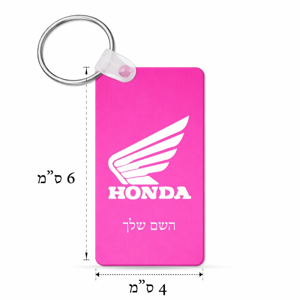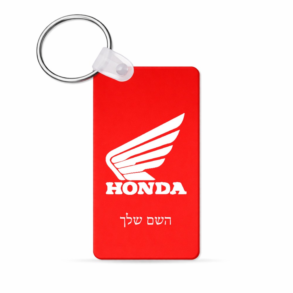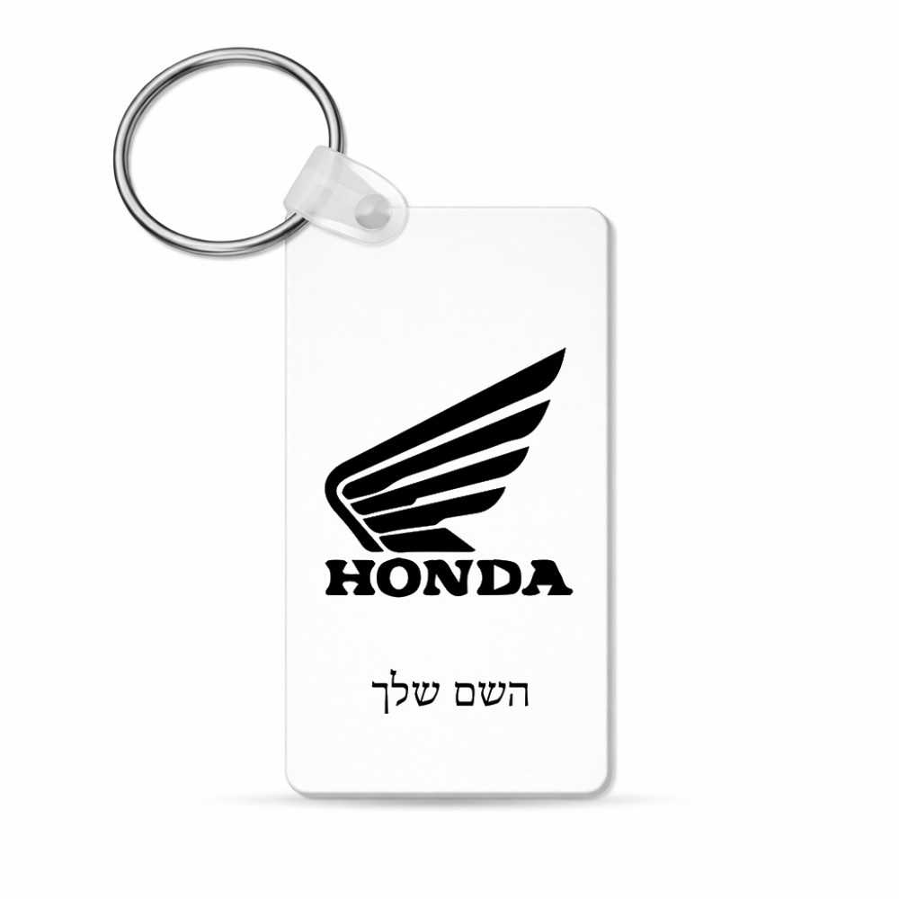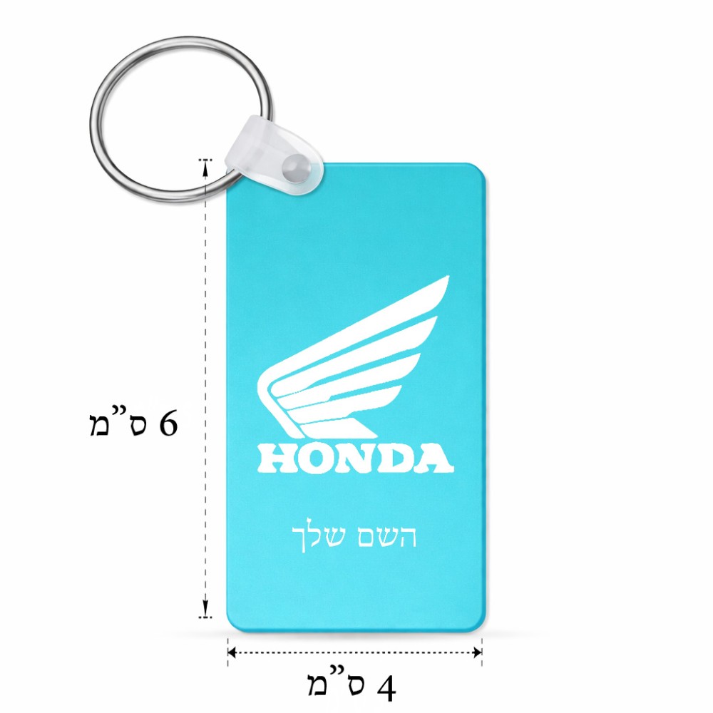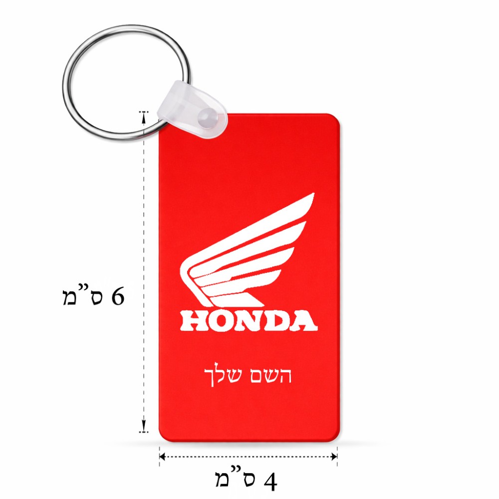 מחזיק מפתחות בצורת מלבן בעיצוב אישי עם השם שלך בעיצוב הונדה גודל המחזיק 6 × 4 ס"מ. את השם המבוקש ניתן לציין בהזמנה, אם לא צויין אנחנו ניצור קשר לבירור.