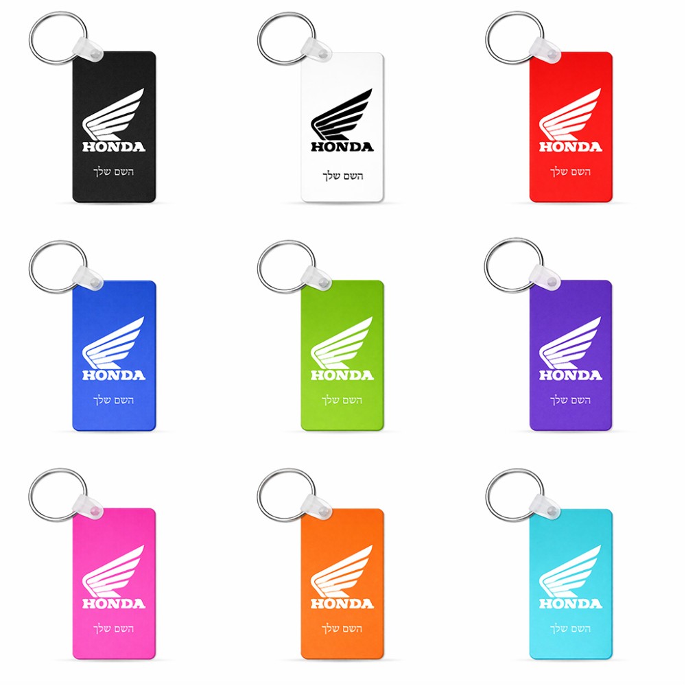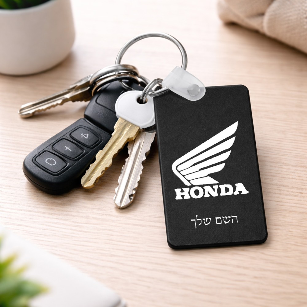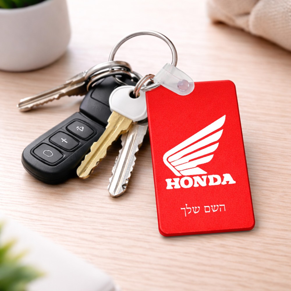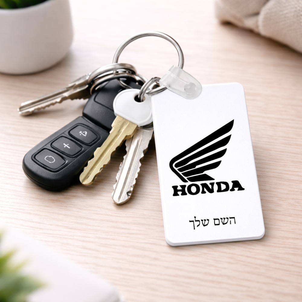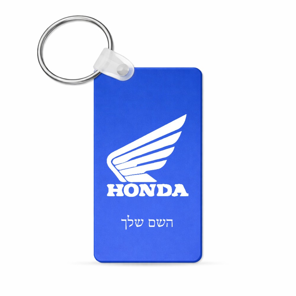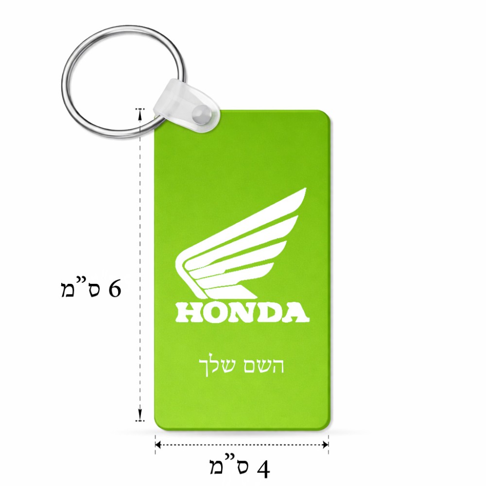 מחזיק מפתחות בצורת מלבן בעיצוב אישי עם השם שלך בעיצוב הונדה גודל המחזיק 6 × 4 ס"מ. את השם המבוקש ניתן לציין בהזמנה, אם לא צויין אנחנו ניצור קשר לבירור.