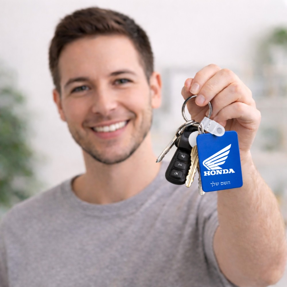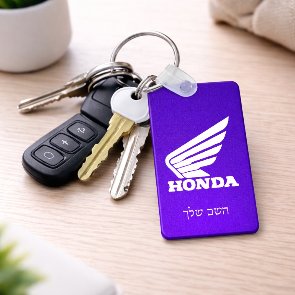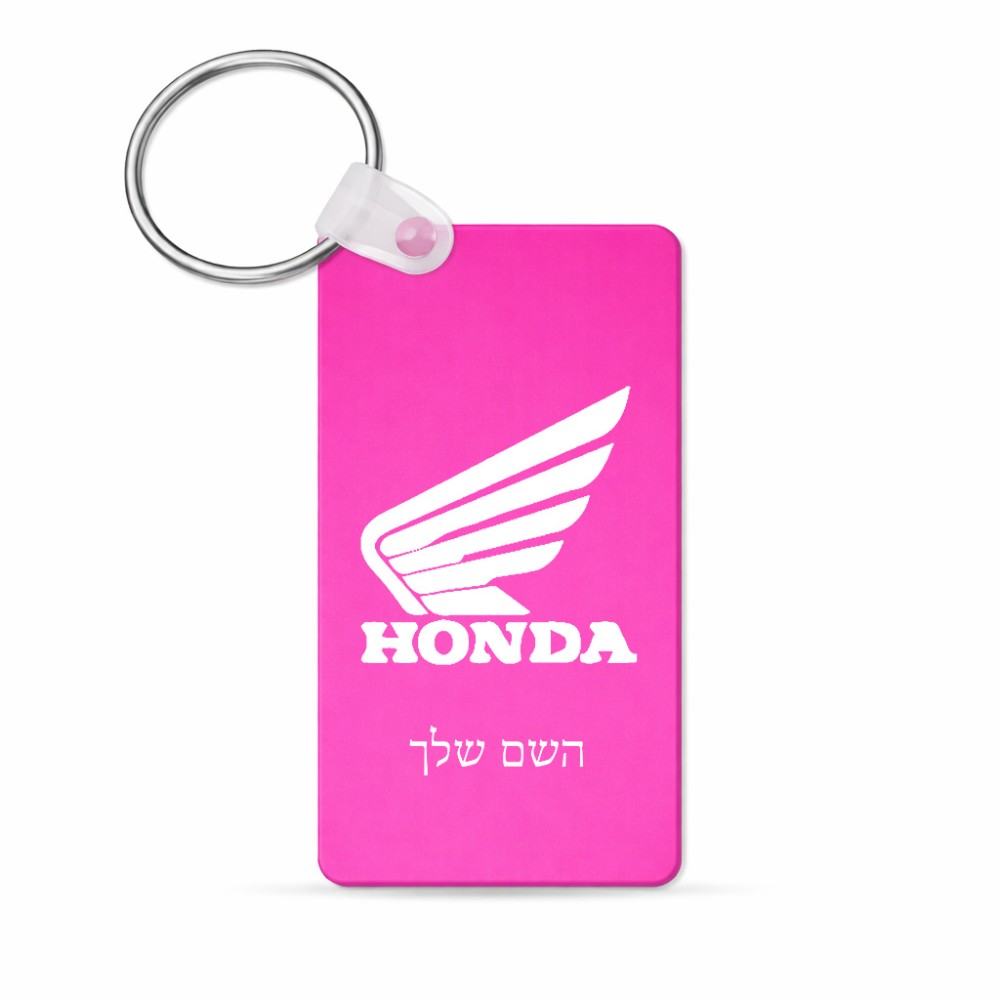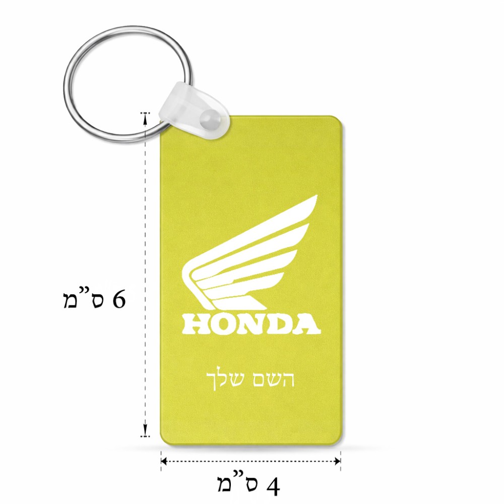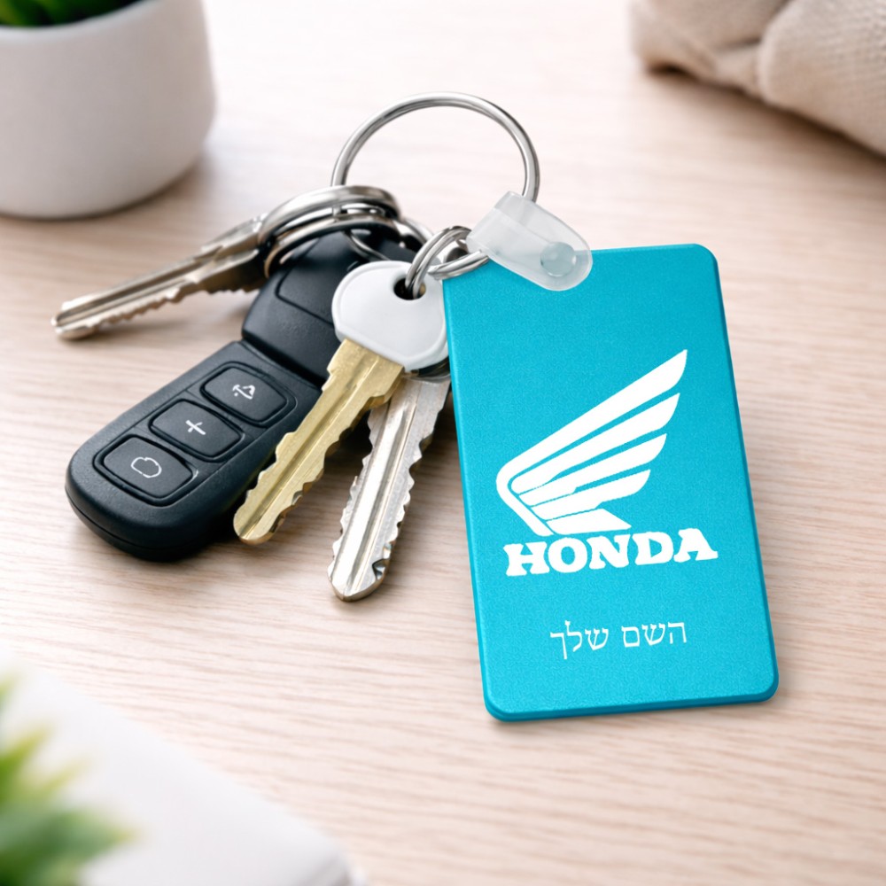 מחזיק מפתחות בצורת מלבן בעיצוב אישי עם השם שלך בעיצוב הונדה גודל המחזיק 6 × 4 ס"מ. את השם המבוקש ניתן לציין בהזמנה, אם לא צויין אנחנו ניצור קשר לבירור.