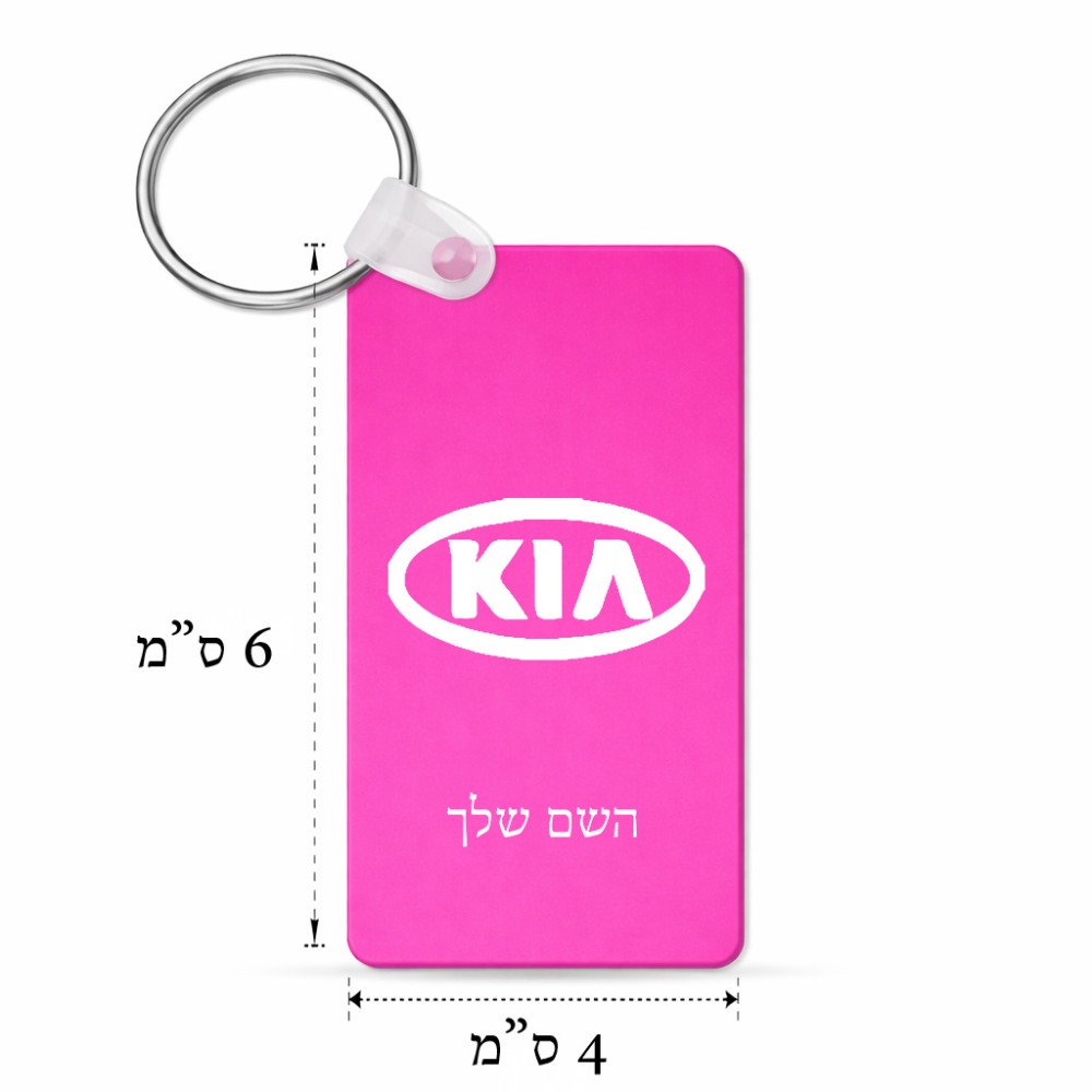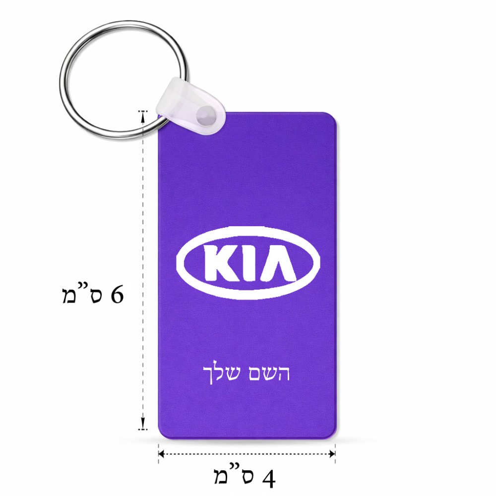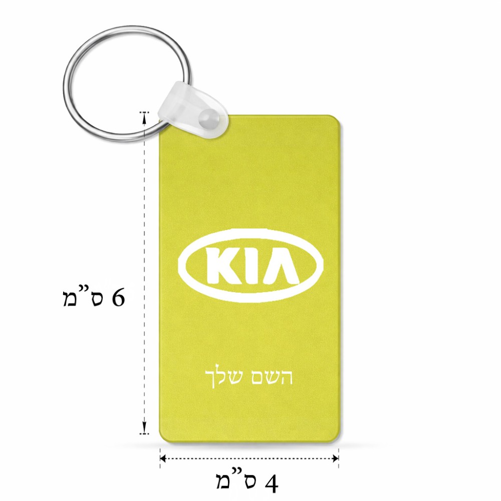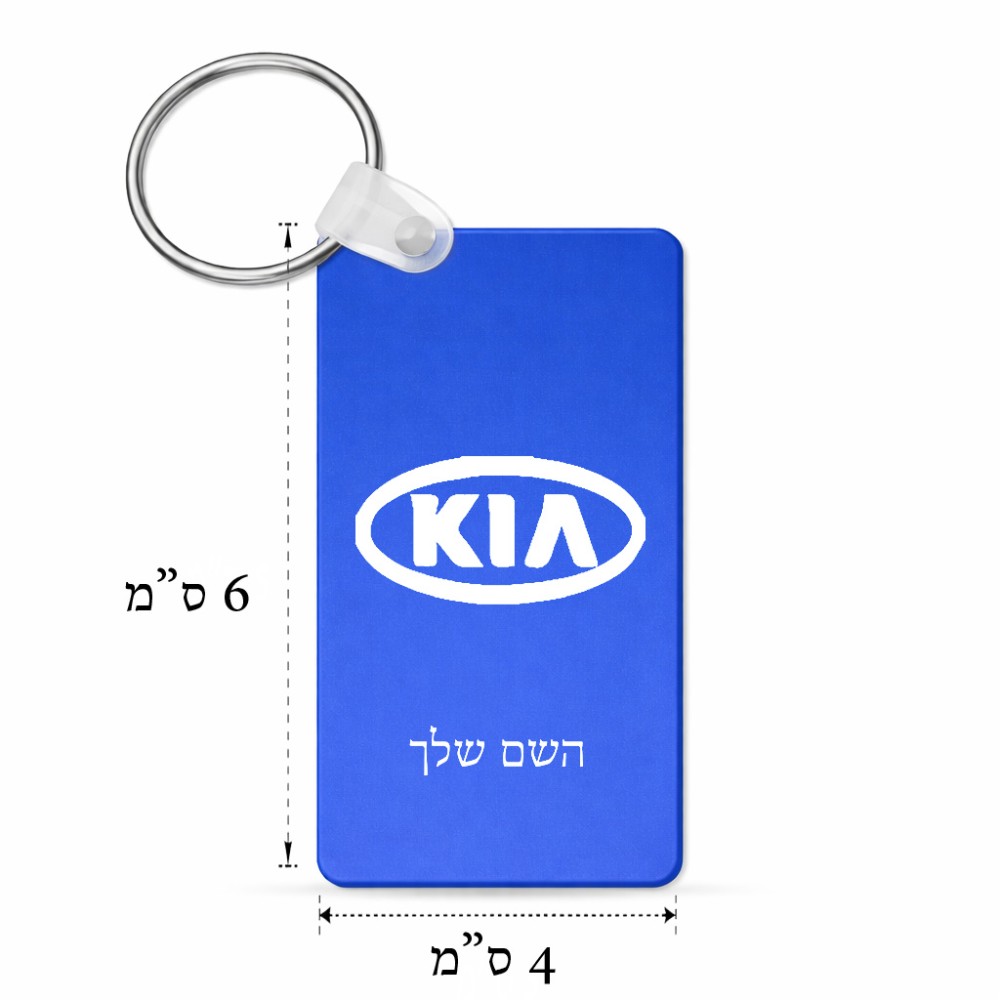 מחזיק מפתחות בצורת מלבן בעיצוב אישי עם השם שלך בעיצוב קיה גודל המחזיק 6 × 4 ס"מ. את השם המבוקש ניתן לציין בהזמנה, אם לא צויין אנחנו ניצור קשר לבירור.