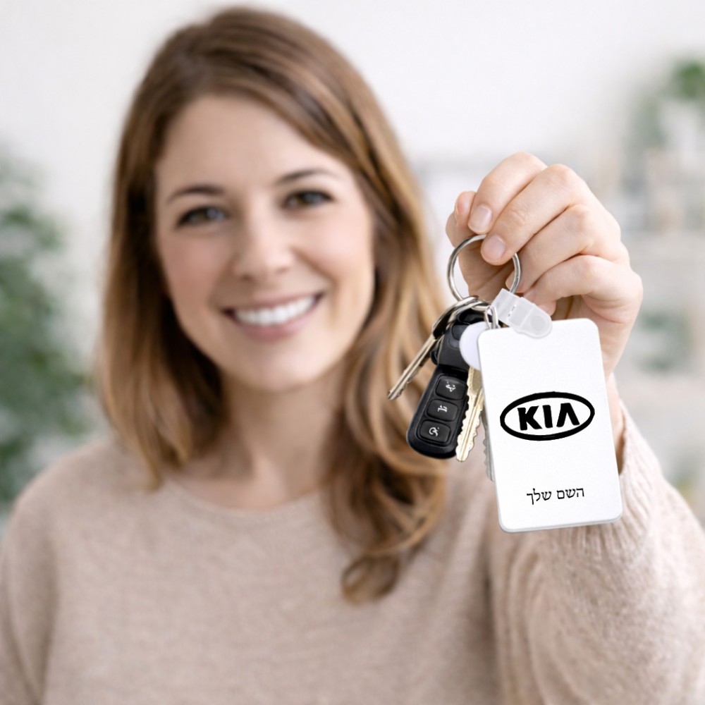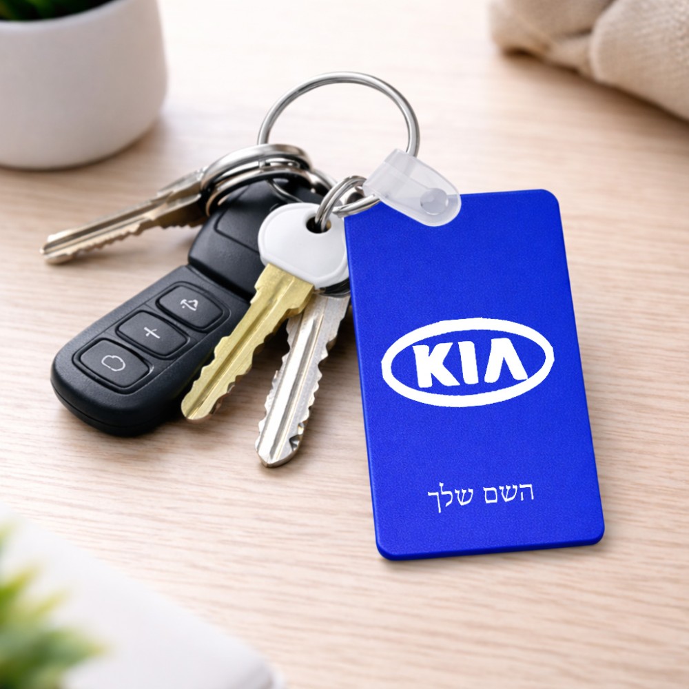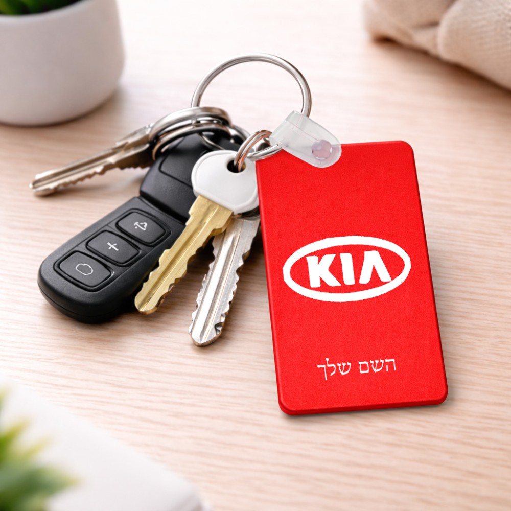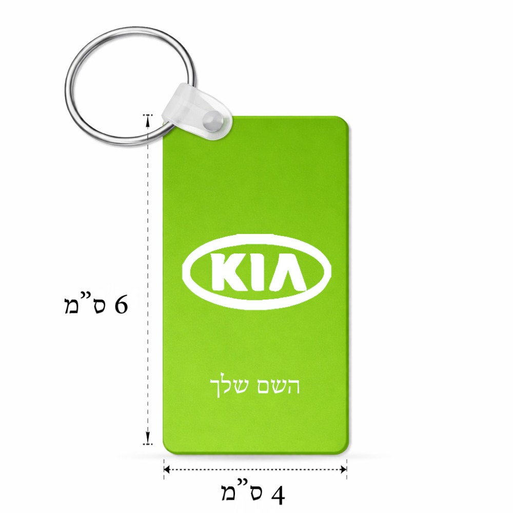 מחזיק מפתחות בצורת מלבן בעיצוב אישי עם השם שלך בעיצוב קיה גודל המחזיק 6 × 4 ס"מ. את השם המבוקש ניתן לציין בהזמנה, אם לא צויין אנחנו ניצור קשר לבירור.