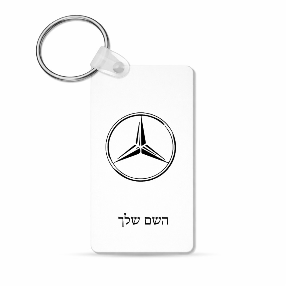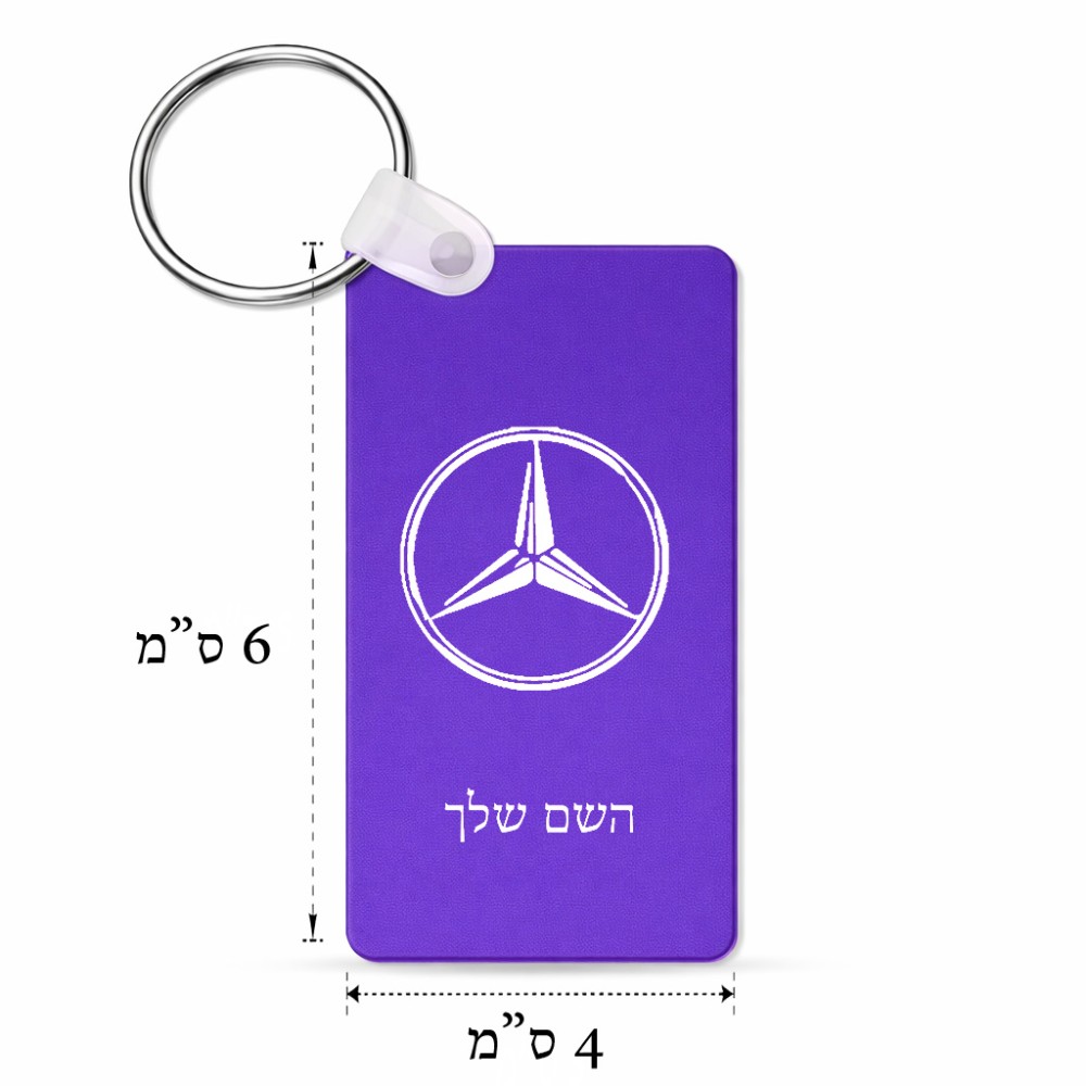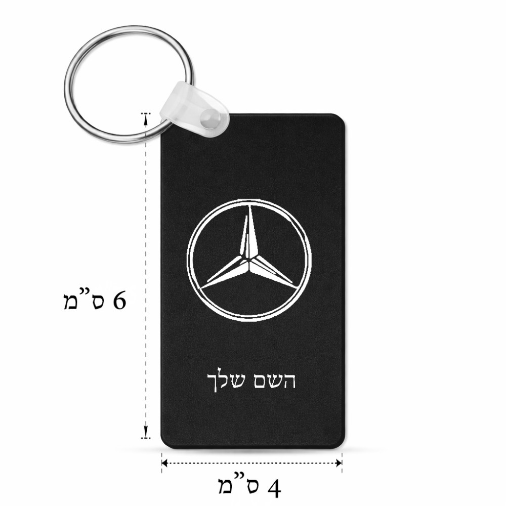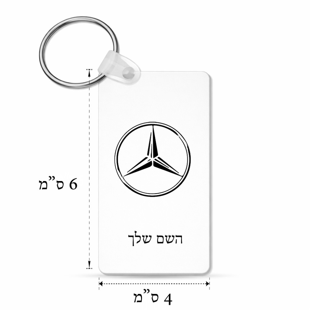 מחזיק מפתחות בצורת מלבן בעיצוב אישי עם השם שלך בעיצוב מרצדס-בנץ גודל המחזיק 6 × 4 ס"מ. את השם המבוקש ניתן לציין בהזמנה, אם לא צויין אנחנו ניצור קשר לבירור.