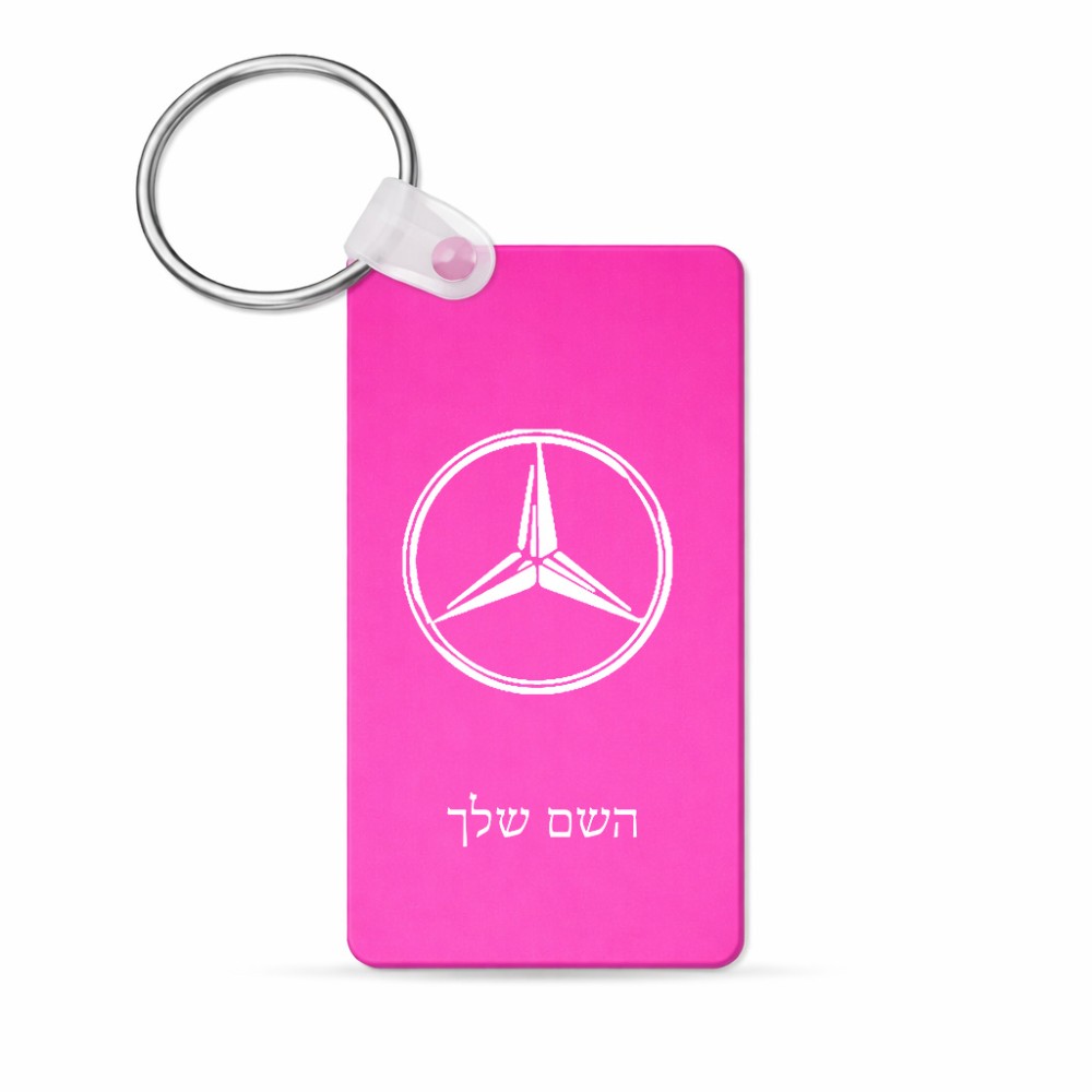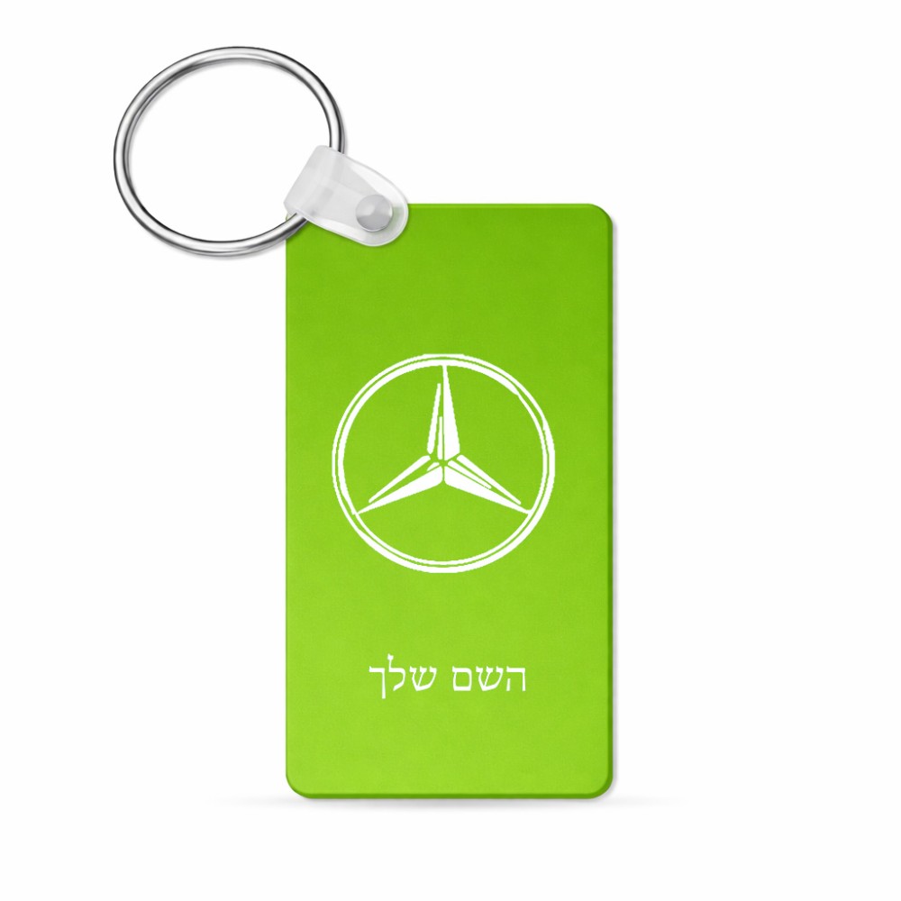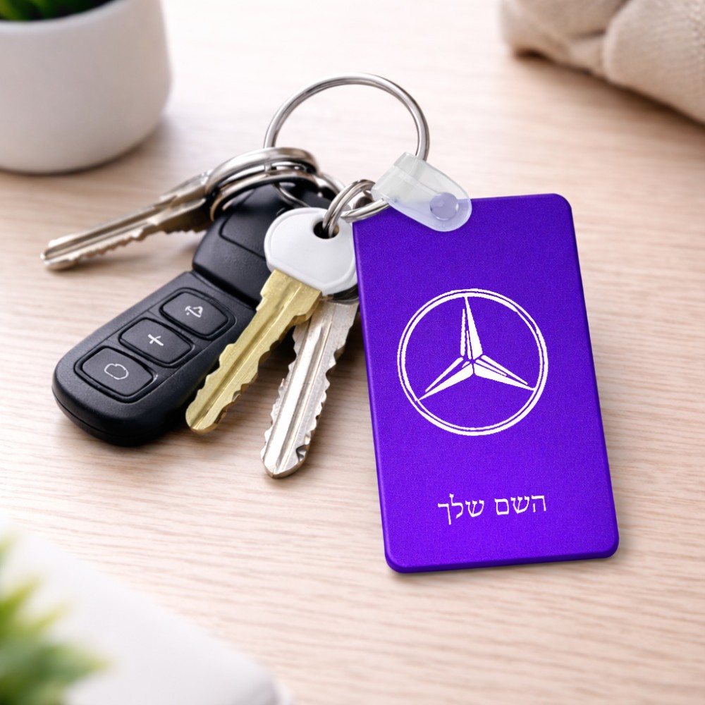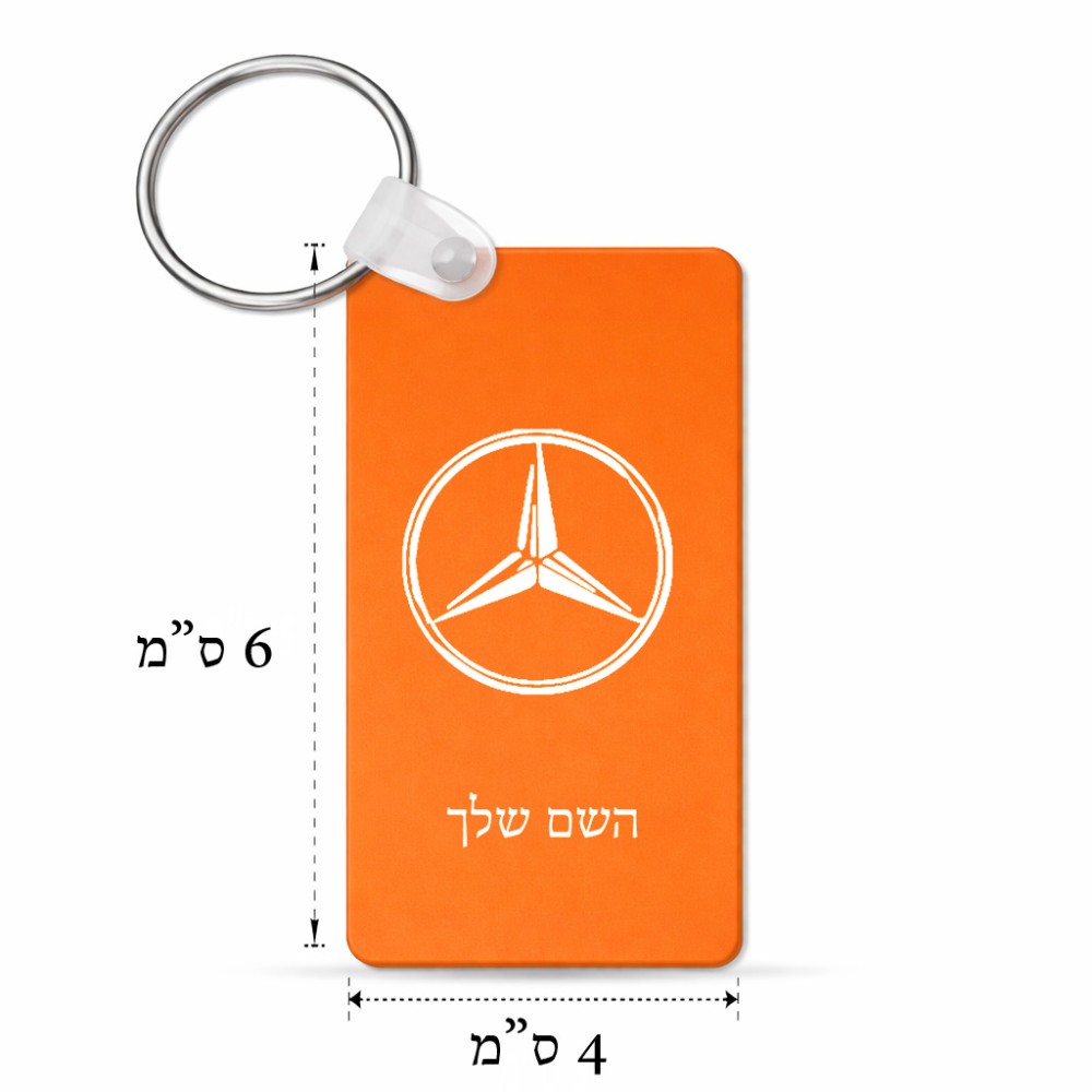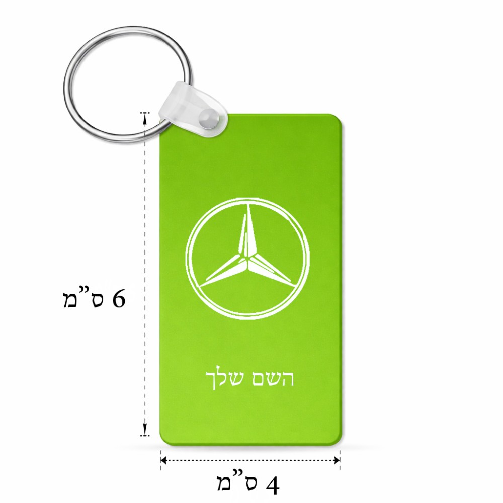 מחזיק מפתחות בצורת מלבן בעיצוב אישי עם השם שלך בעיצוב מרצדס-בנץ גודל המחזיק 6 × 4 ס"מ. את השם המבוקש ניתן לציין בהזמנה, אם לא צויין אנחנו ניצור קשר לבירור.