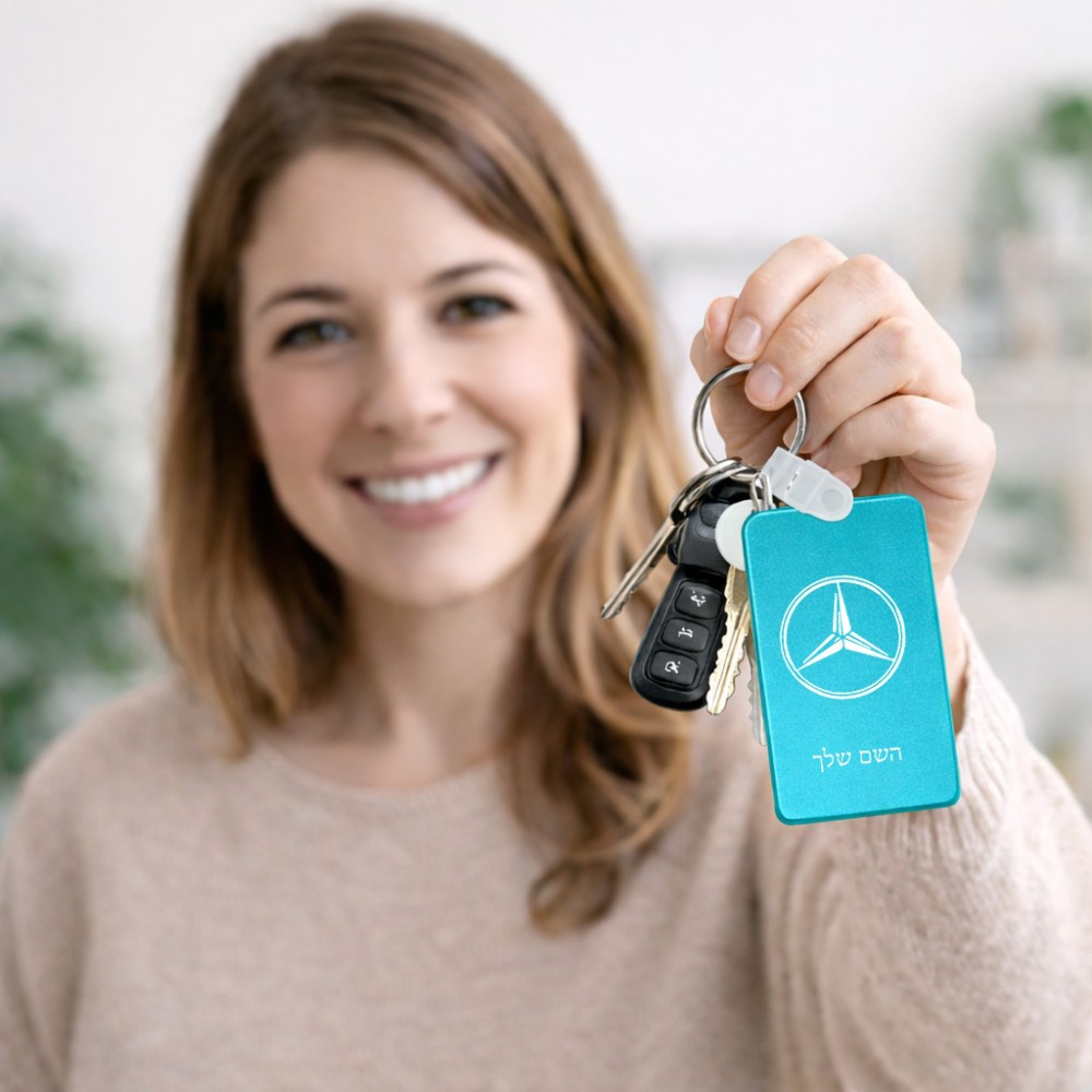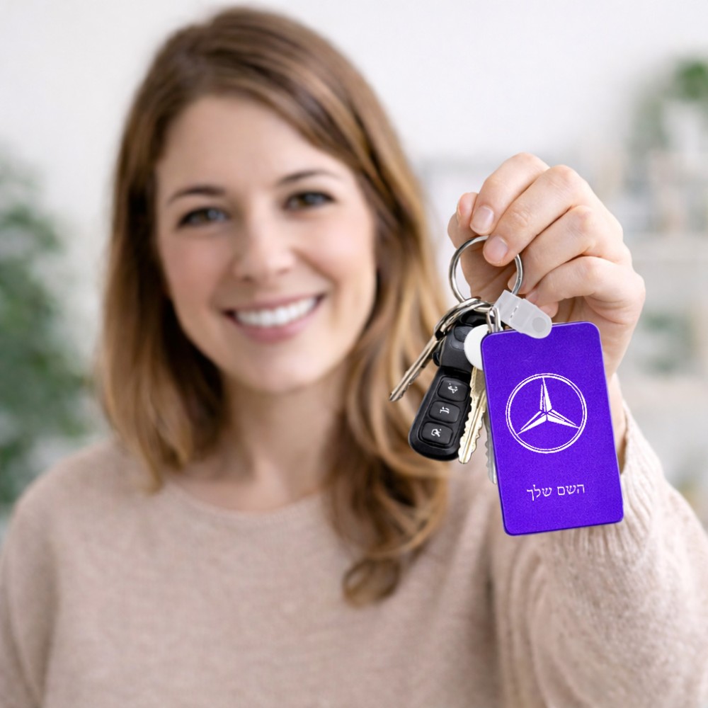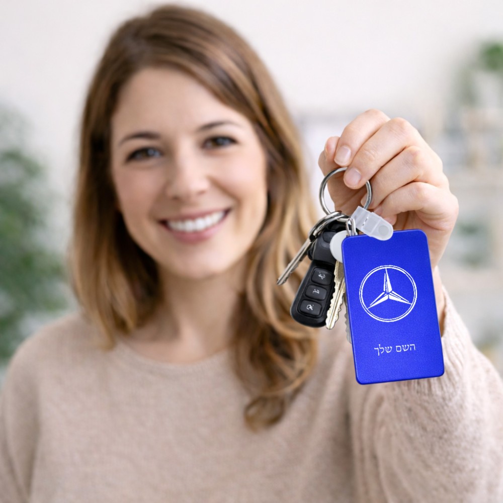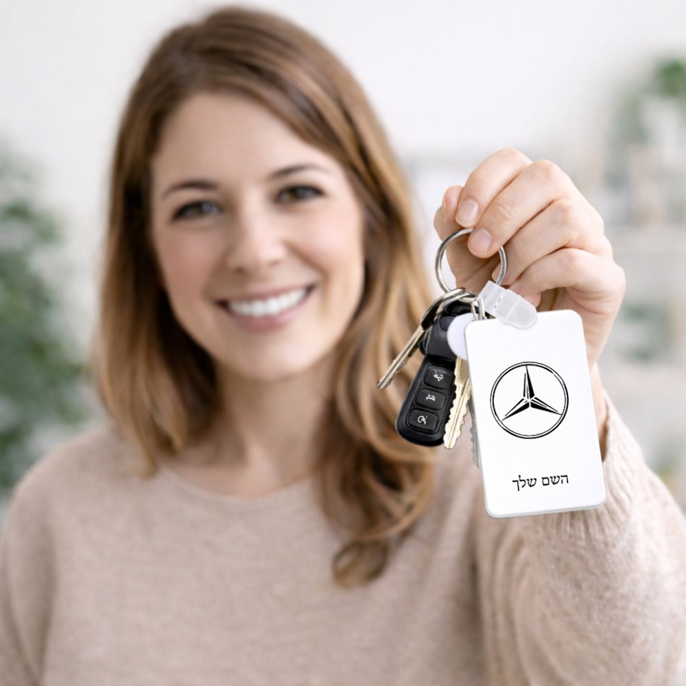מחזיק מפתחות בצורת מלבן בעיצוב אישי עם השם שלך בעיצוב מרצדס-בנץ גודל המחזיק 6 × 4 ס"מ. את השם המבוקש ניתן לציין בהזמנה, אם לא צויין אנחנו ניצור קשר לבירור.