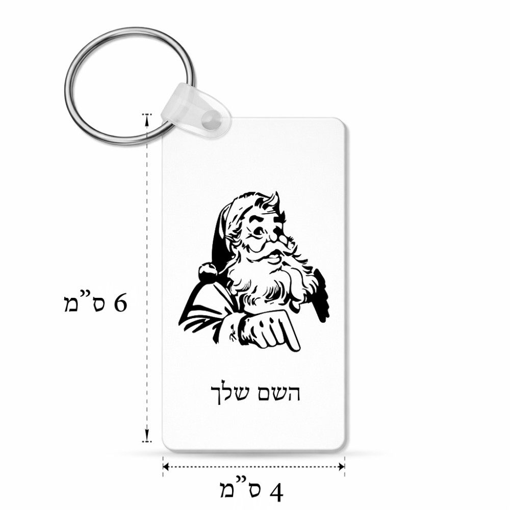 מחזיק מפתחות בצורת מלבן בעיצוב אישי עם השם שלך בעיצוב סנטה קלאוס גודל המחזיק 6 × 4 ס"מ. את השם המבוקש ניתן לציין בהזמנה, אם לא צויין אנחנו ניצור קשר לבירור.
