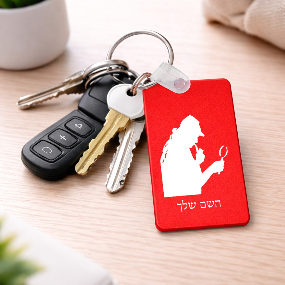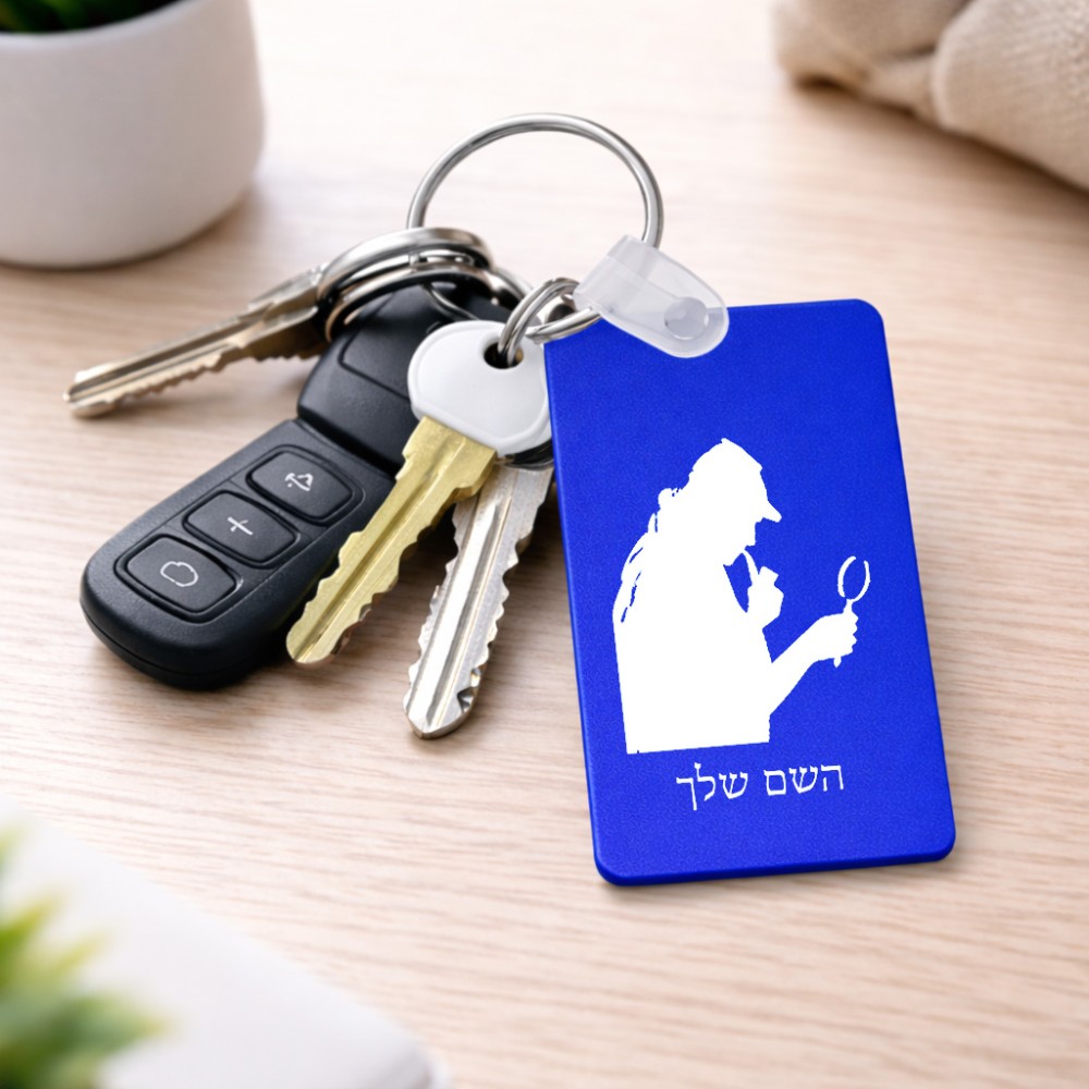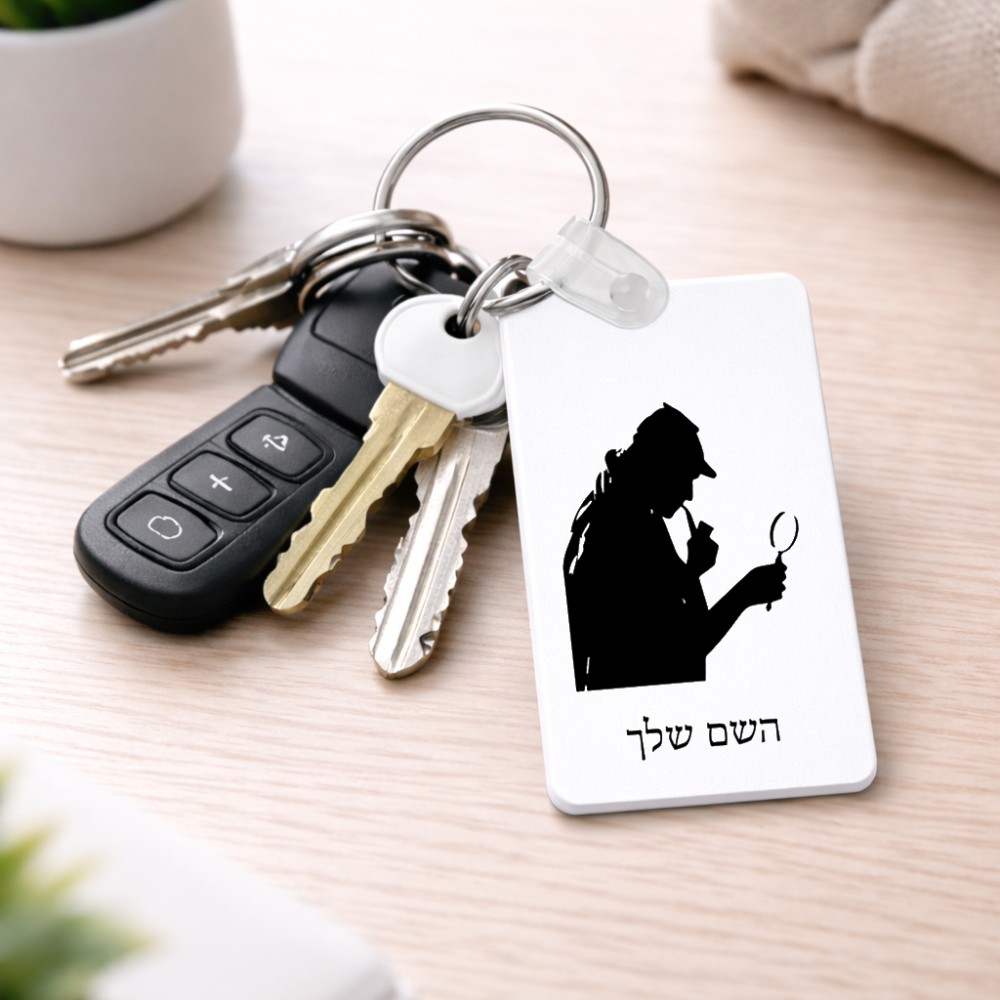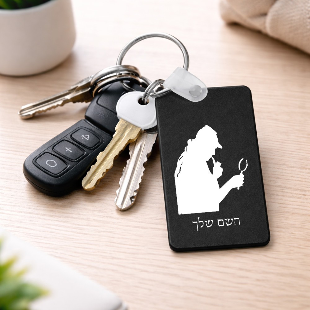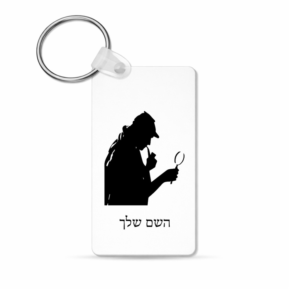 מחזיק מפתחות בצורת מלבן בעיצוב אישי עם השם שלך בעיצוב בתים של שרלוק גודל המחזיק 6 × 4 ס"מ. את השם המבוקש ניתן לציין בהזמנה, אם לא צויין אנחנו ניצור קשר לבירור.