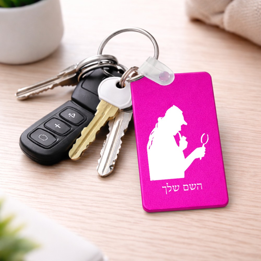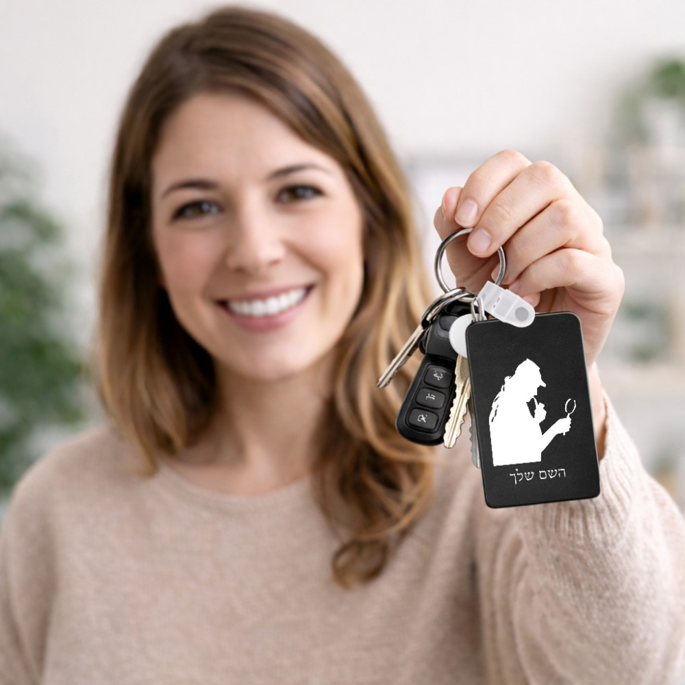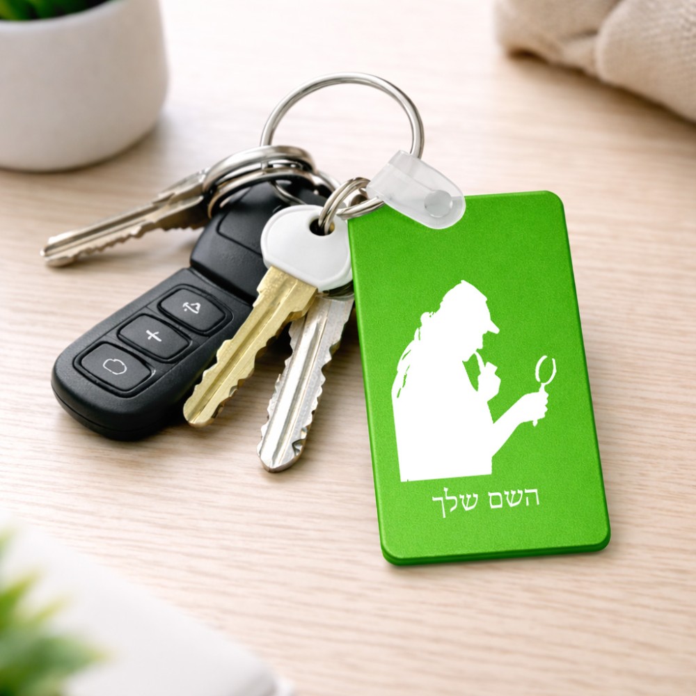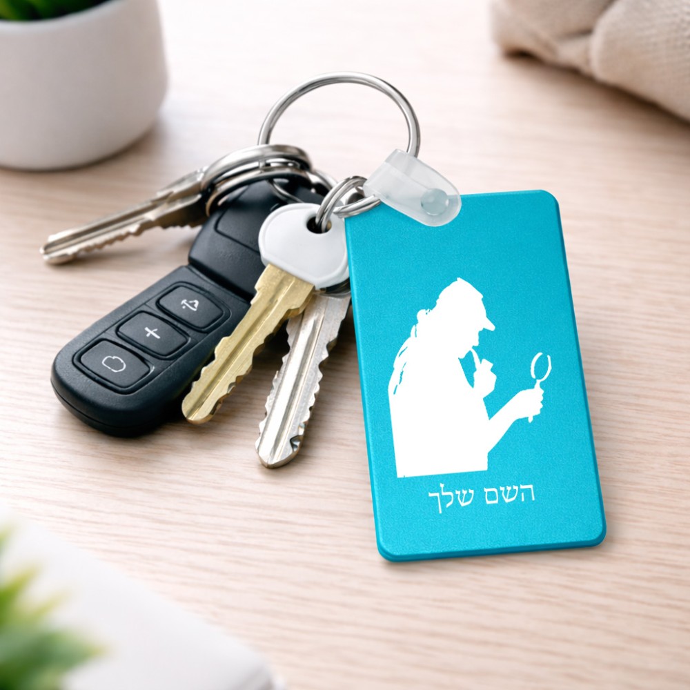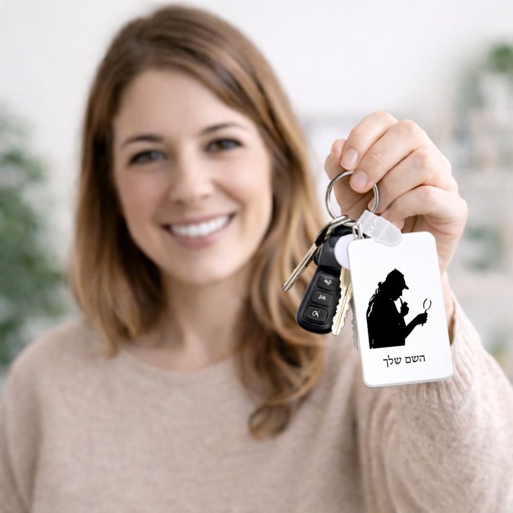 מחזיק מפתחות בצורת מלבן בעיצוב אישי עם השם שלך בעיצוב בתים של שרלוק גודל המחזיק 6 × 4 ס"מ. את השם המבוקש ניתן לציין בהזמנה, אם לא צויין אנחנו ניצור קשר לבירור.