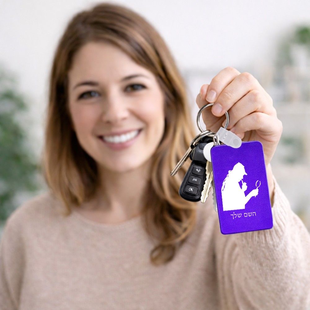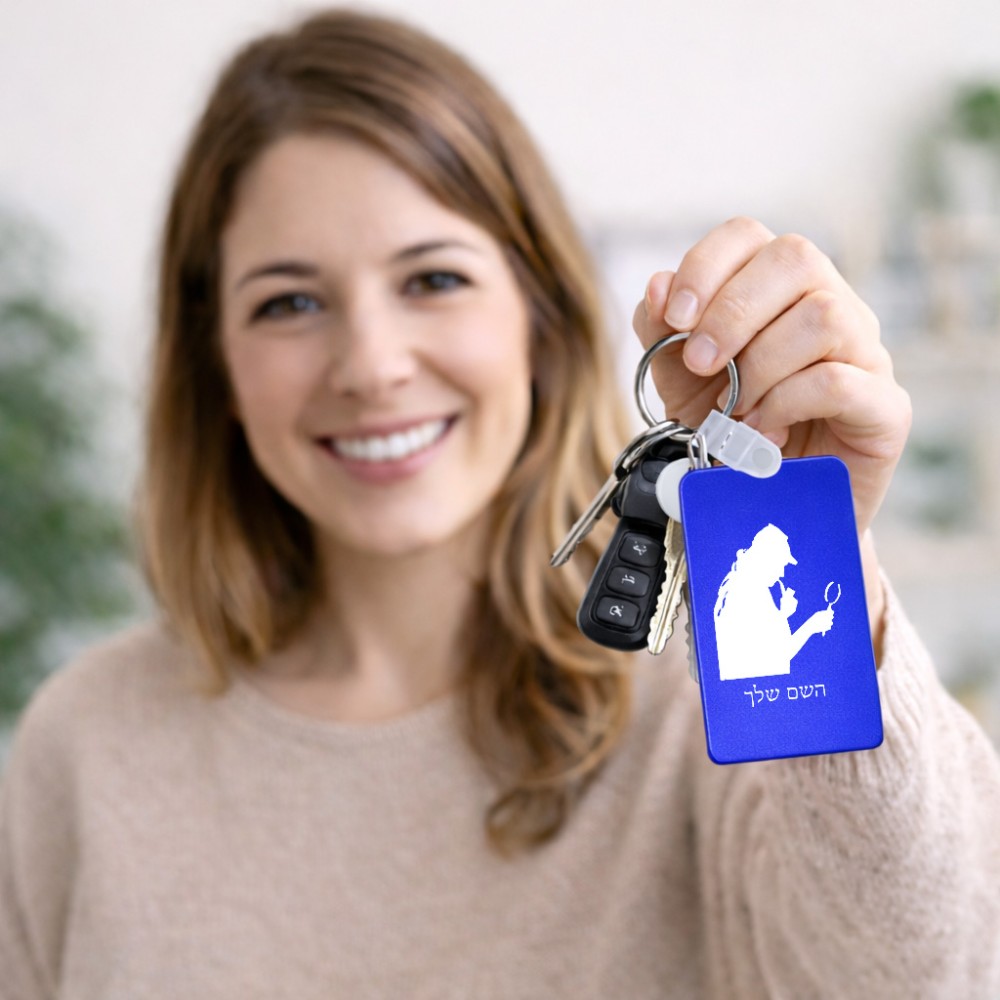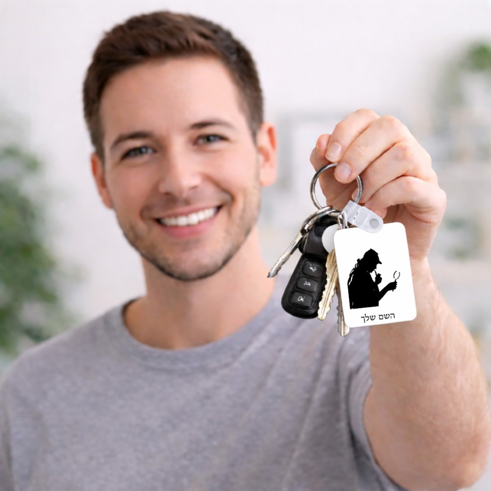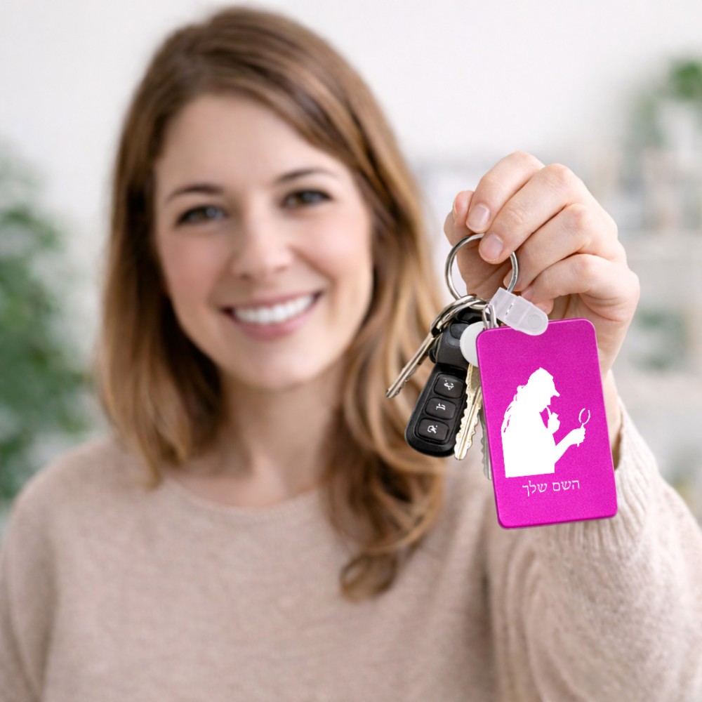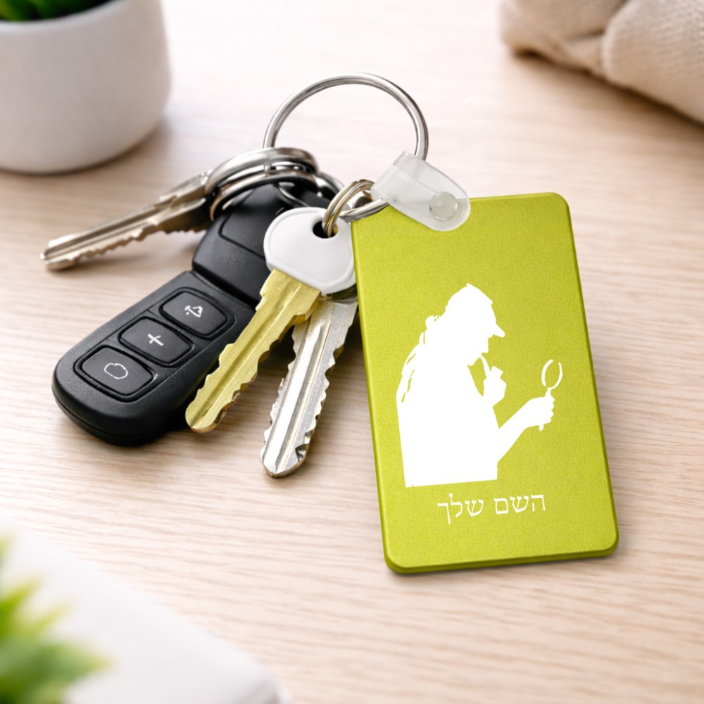 מחזיק מפתחות בצורת מלבן בעיצוב אישי עם השם שלך בעיצוב בתים של שרלוק גודל המחזיק 6 × 4 ס"מ. את השם המבוקש ניתן לציין בהזמנה, אם לא צויין אנחנו ניצור קשר לבירור.