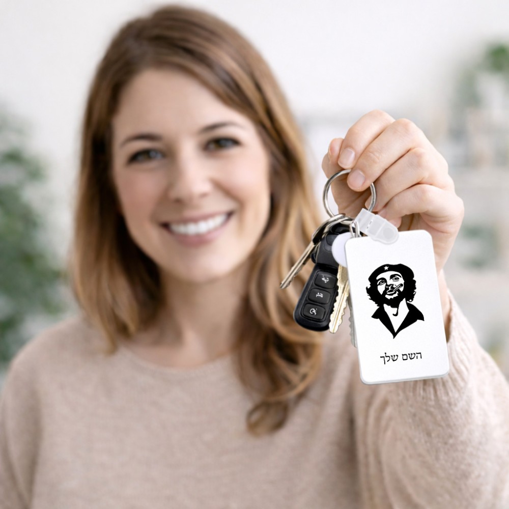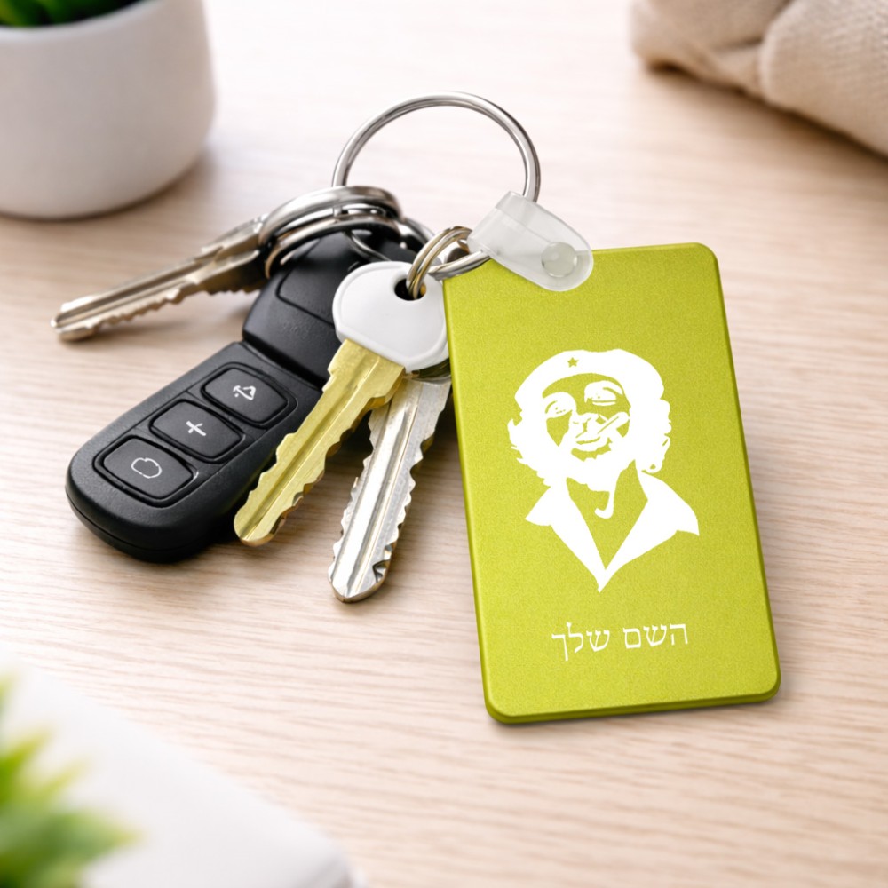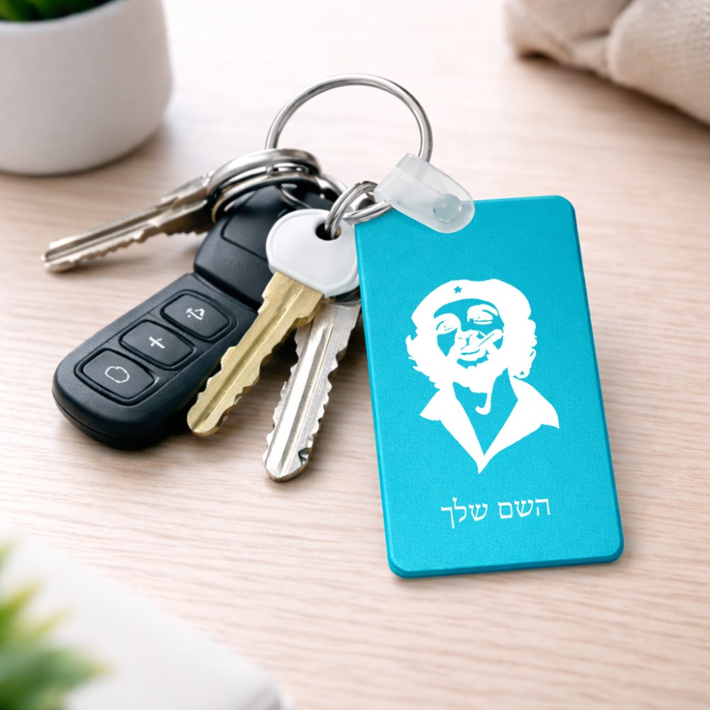 מחזיק מפתחות בצורת מלבן בעיצוב אישי עם השם שלך בעיצוב צ'ה גווארה גודל המחזיק 6 × 4 ס"מ. את השם המבוקש ניתן לציין בהזמנה, אם לא צויין אנחנו ניצור קשר לבירור.