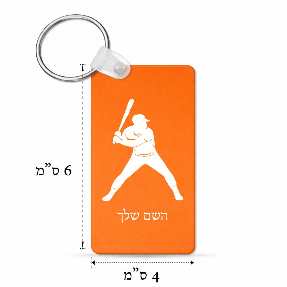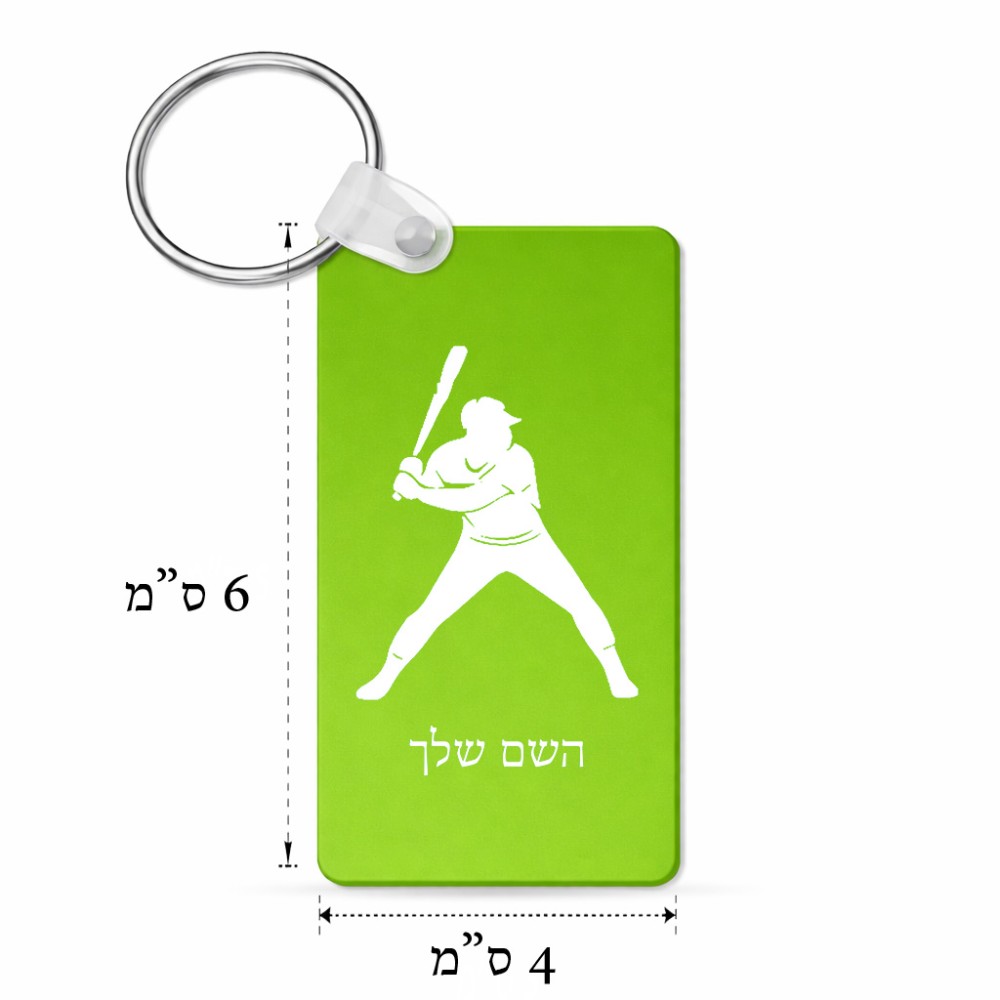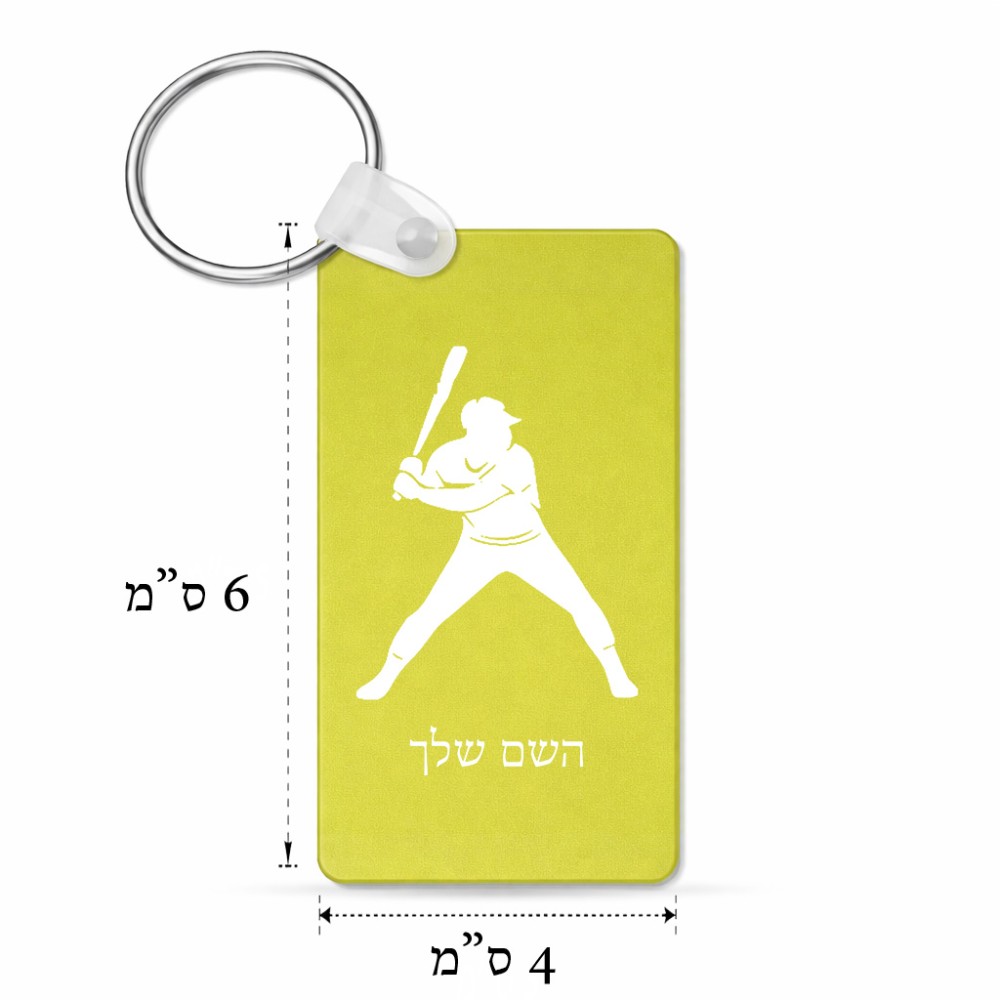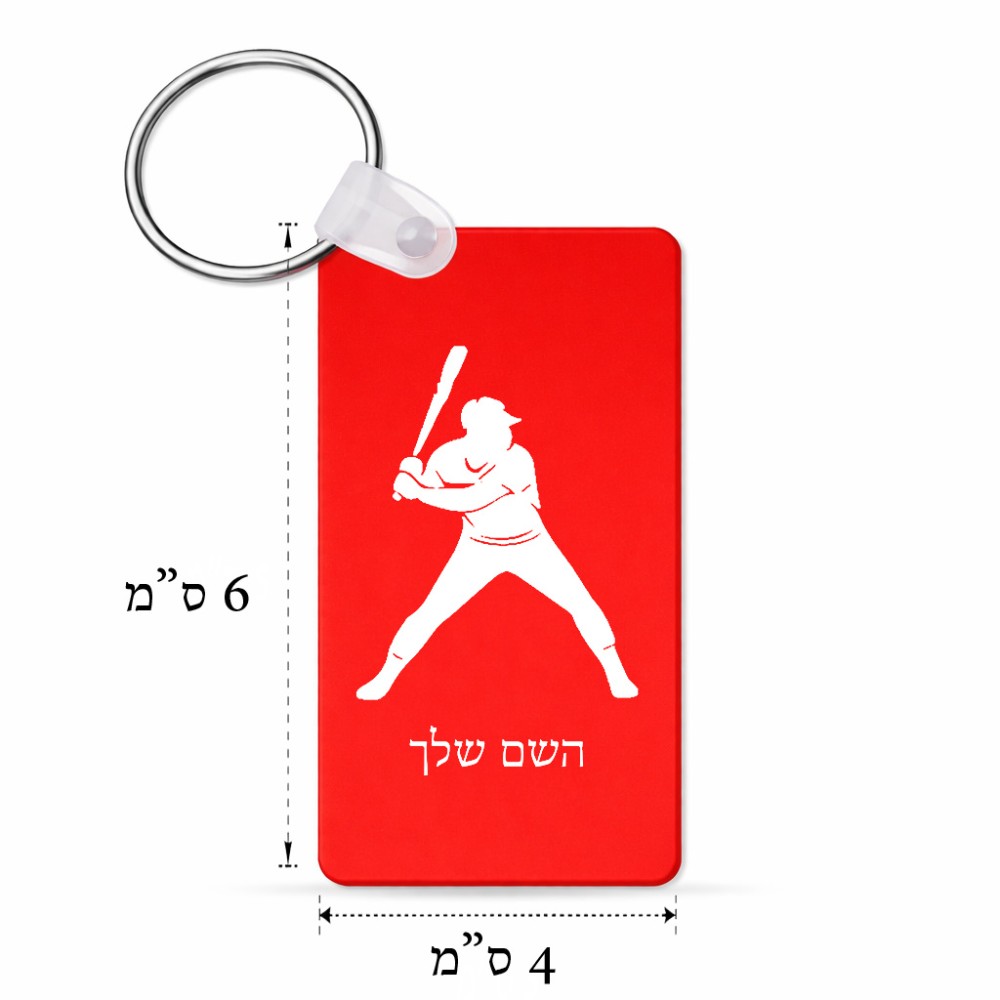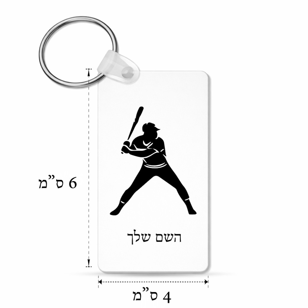 מחזיק מפתחות בצורת מלבן בעיצוב אישי עם השם שלך בעיצוב שחקן בייסבול גודל המחזיק 6 × 4 ס"מ. את השם המבוקש ניתן לציין בהזמנה, אם לא צויין אנחנו ניצור קשר לבירור.